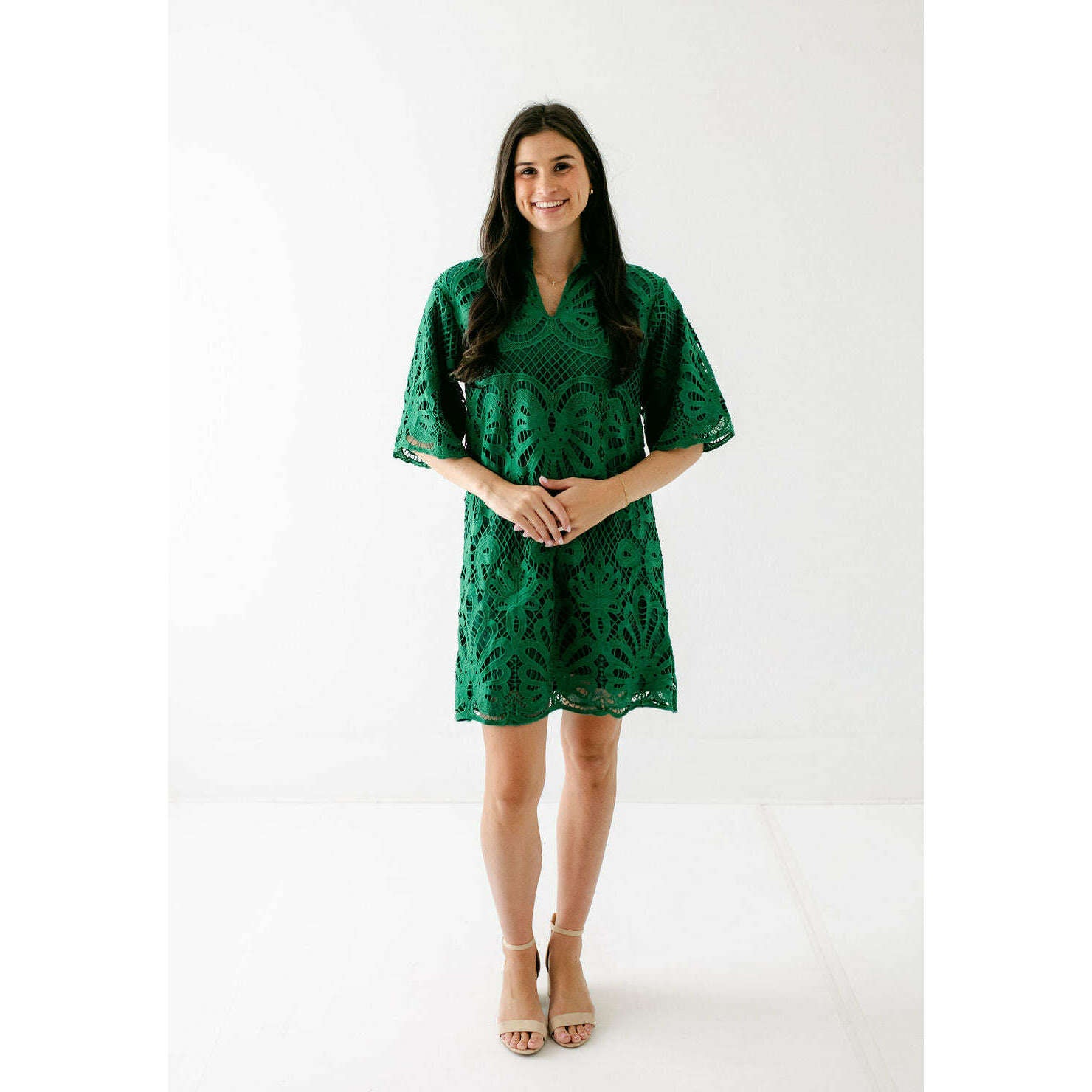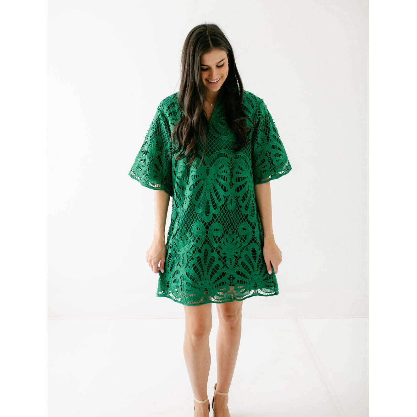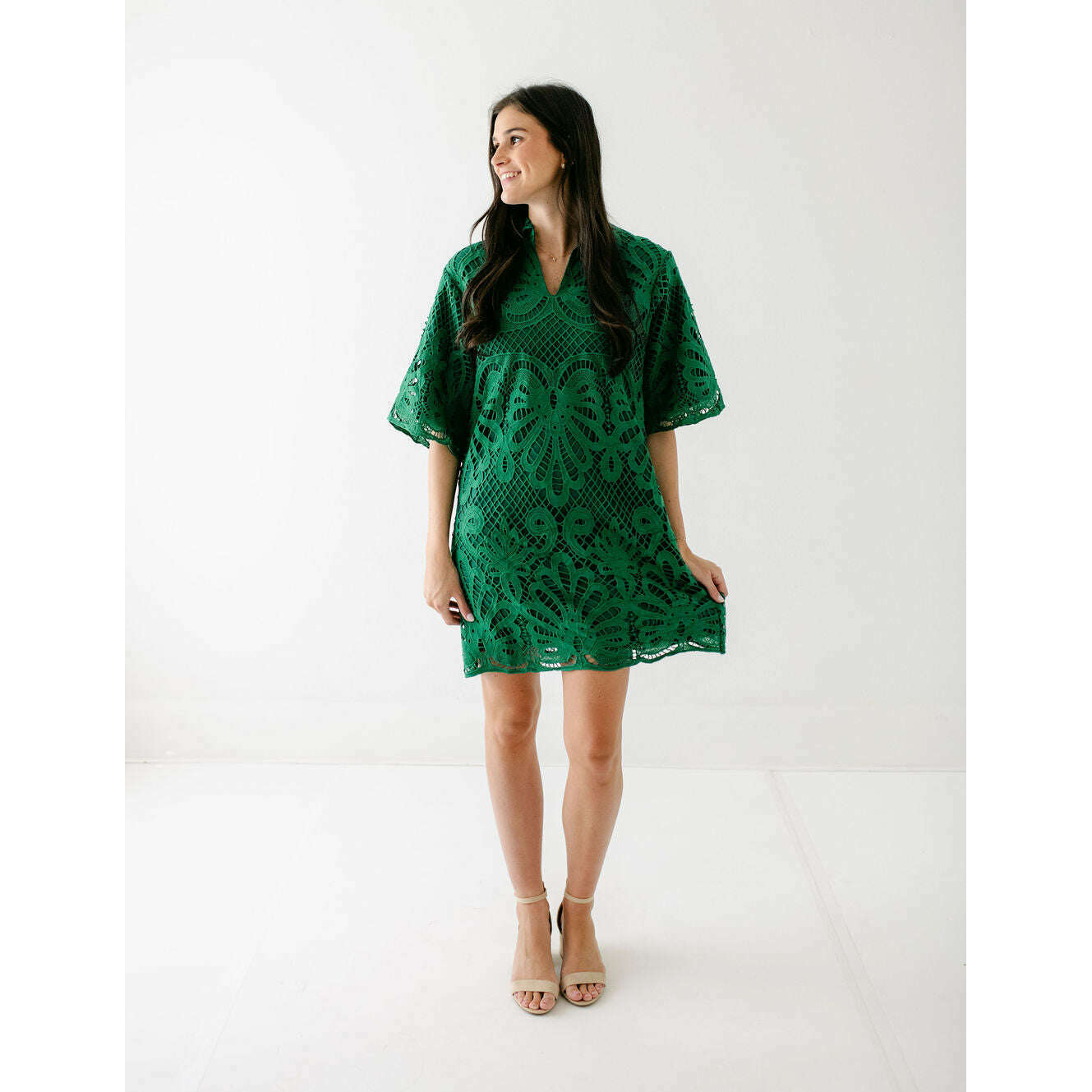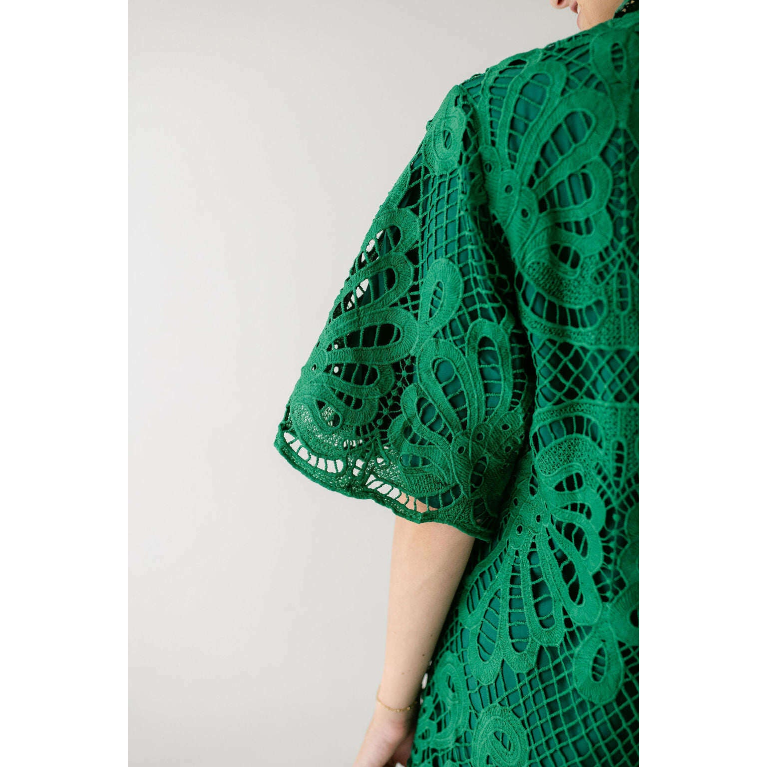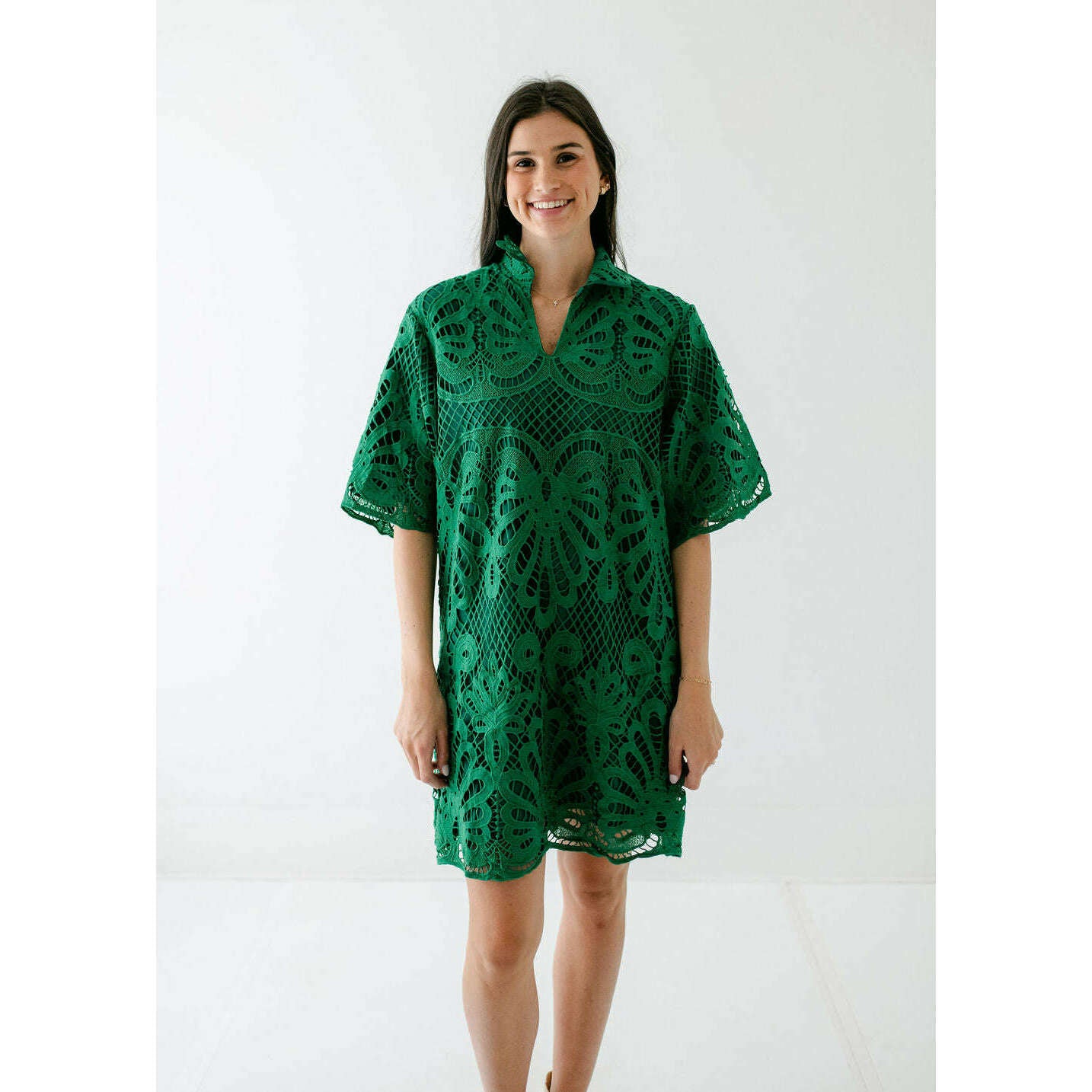 Jade Melody Tam High Neck Tunic Dress in Green Lace
