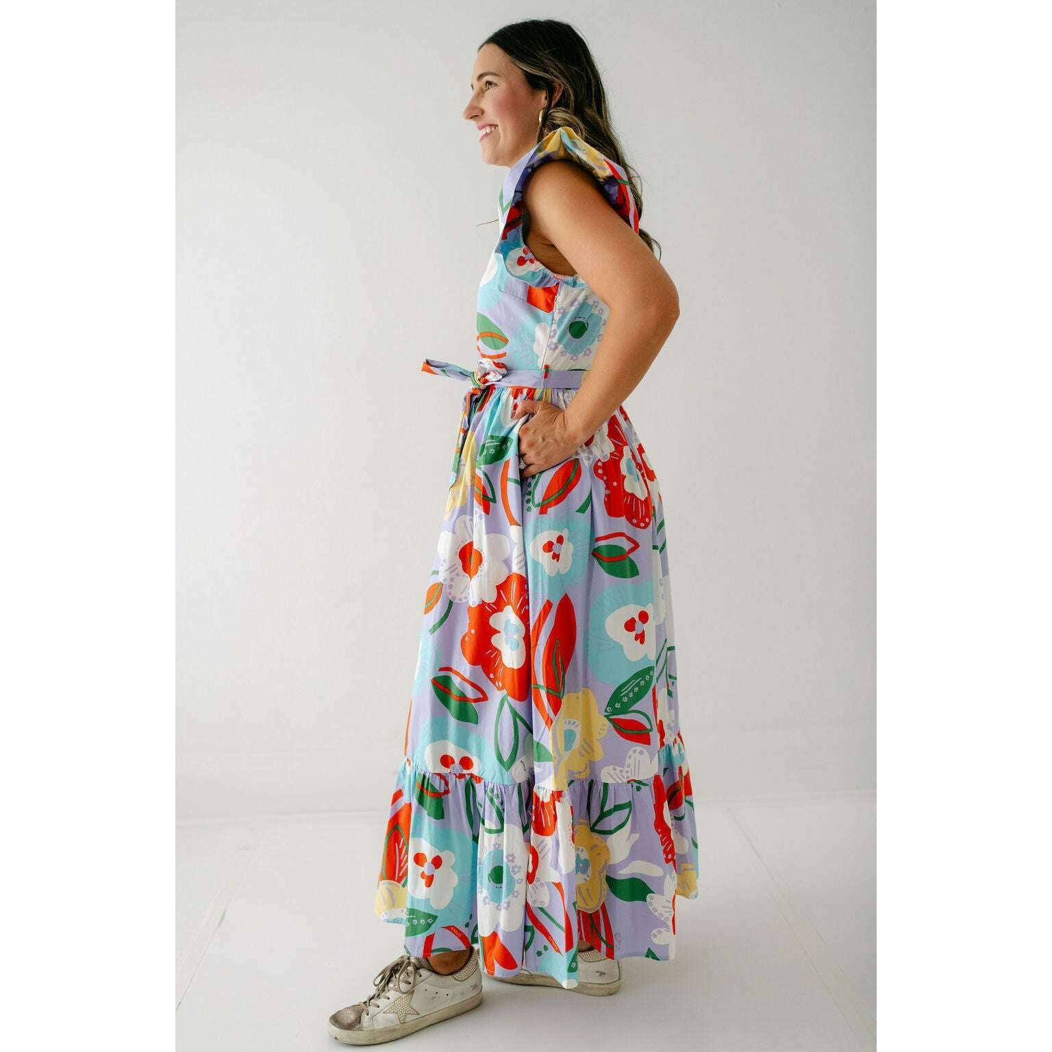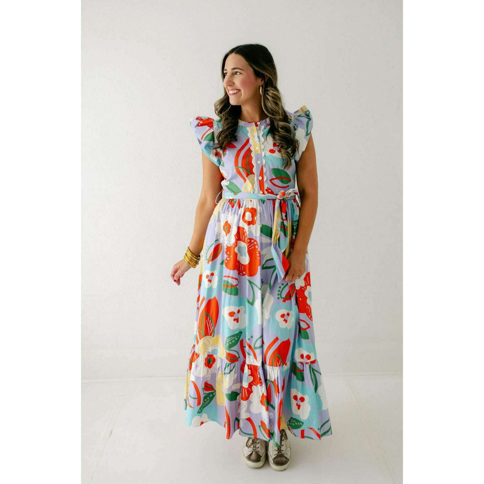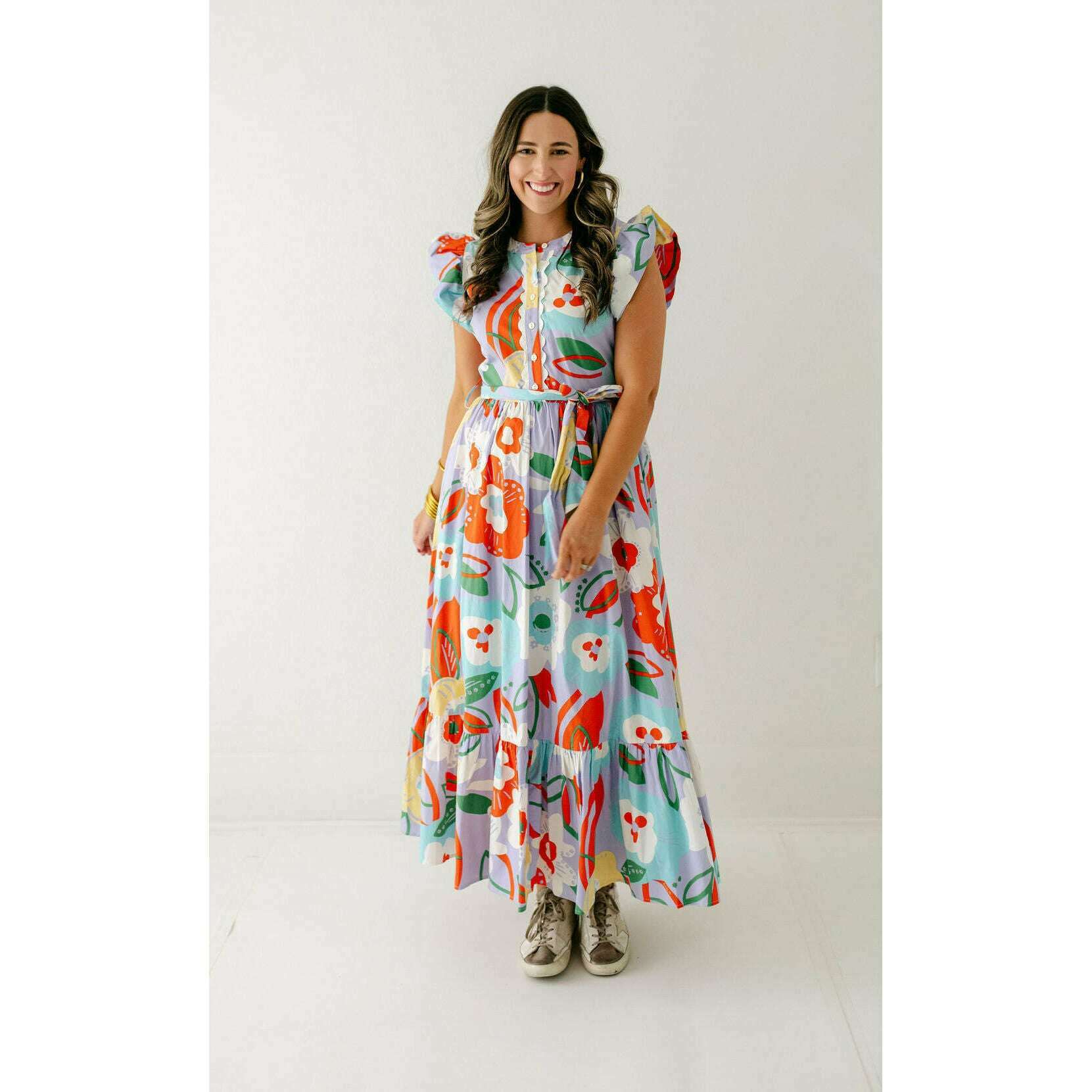 Transition seamlessly into fall with the Karlie Artist Floral Tier Ric Rac Maxi Dress. Its delicate floral pattern and tiered silhouette bring a touch of feminine warmth, while the ric rac trim adds a playful edge. Pair it with boots and a cozy jacket for an effortlessly stylish autumn look that keeps you comfortable and confident as the season changes.