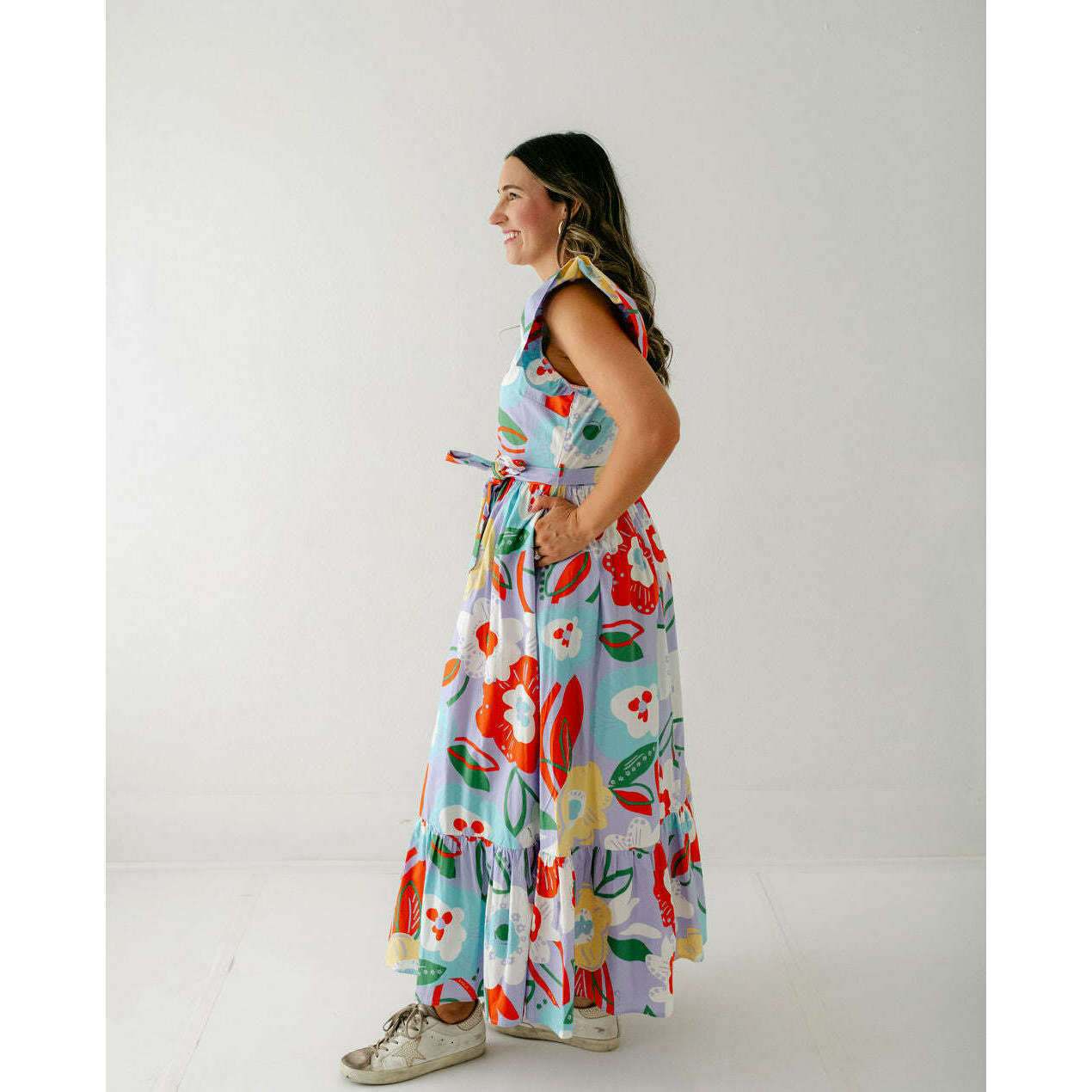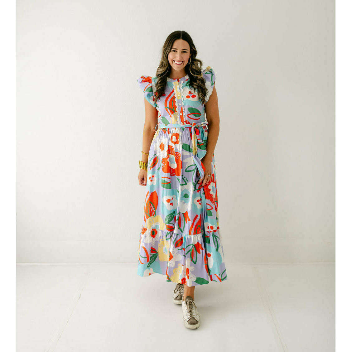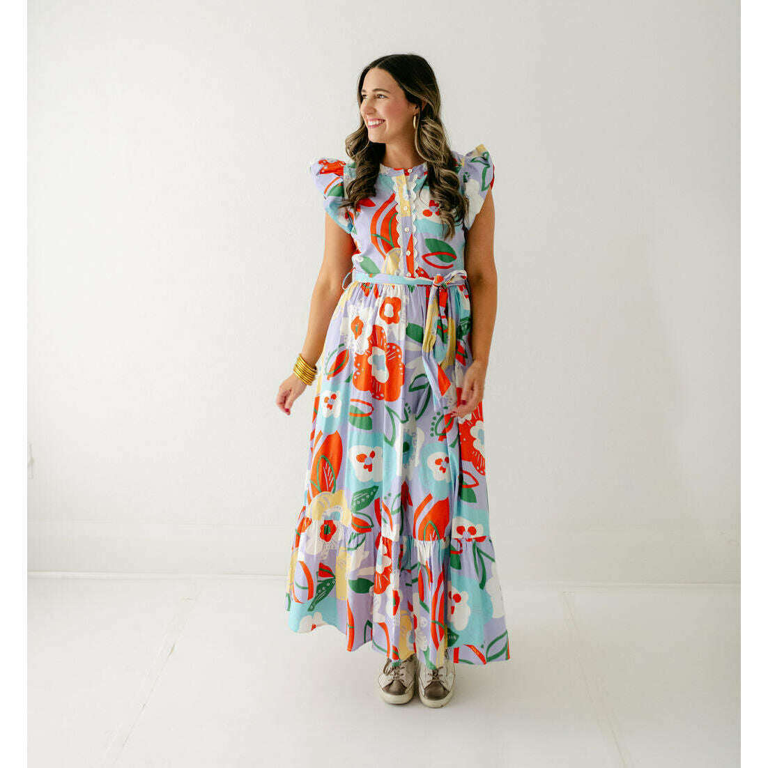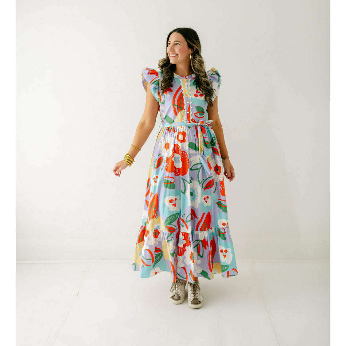 Transition seamlessly into fall with the Karlie Artist Floral Tier Ric Rac Maxi Dress. Its delicate floral pattern and tiered silhouette bring a touch of feminine warmth, while the ric rac trim adds a playful edge. Pair it with boots and a cozy jacket for an effortlessly stylish autumn look that keeps you comfortable and confident as the season changes.