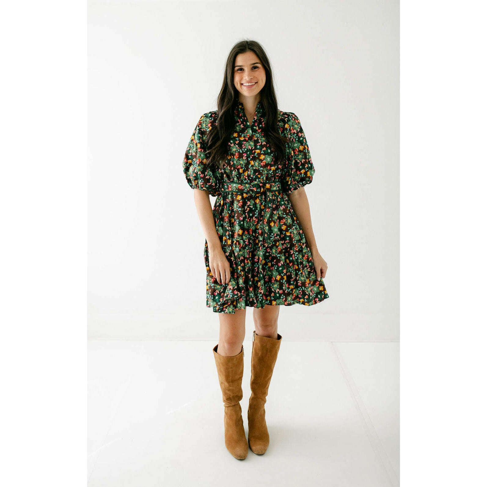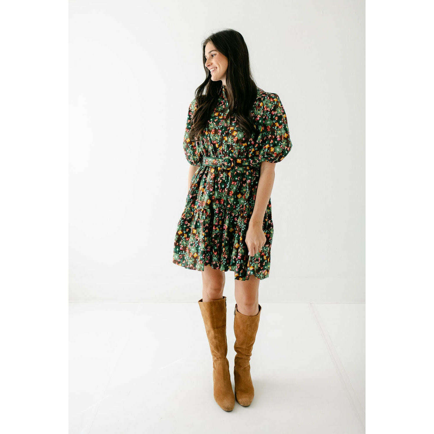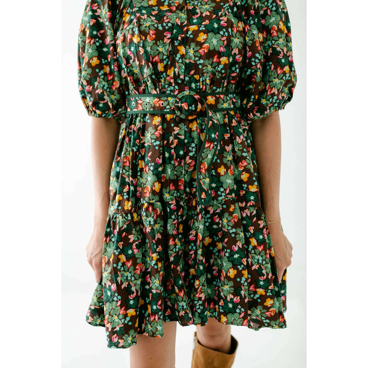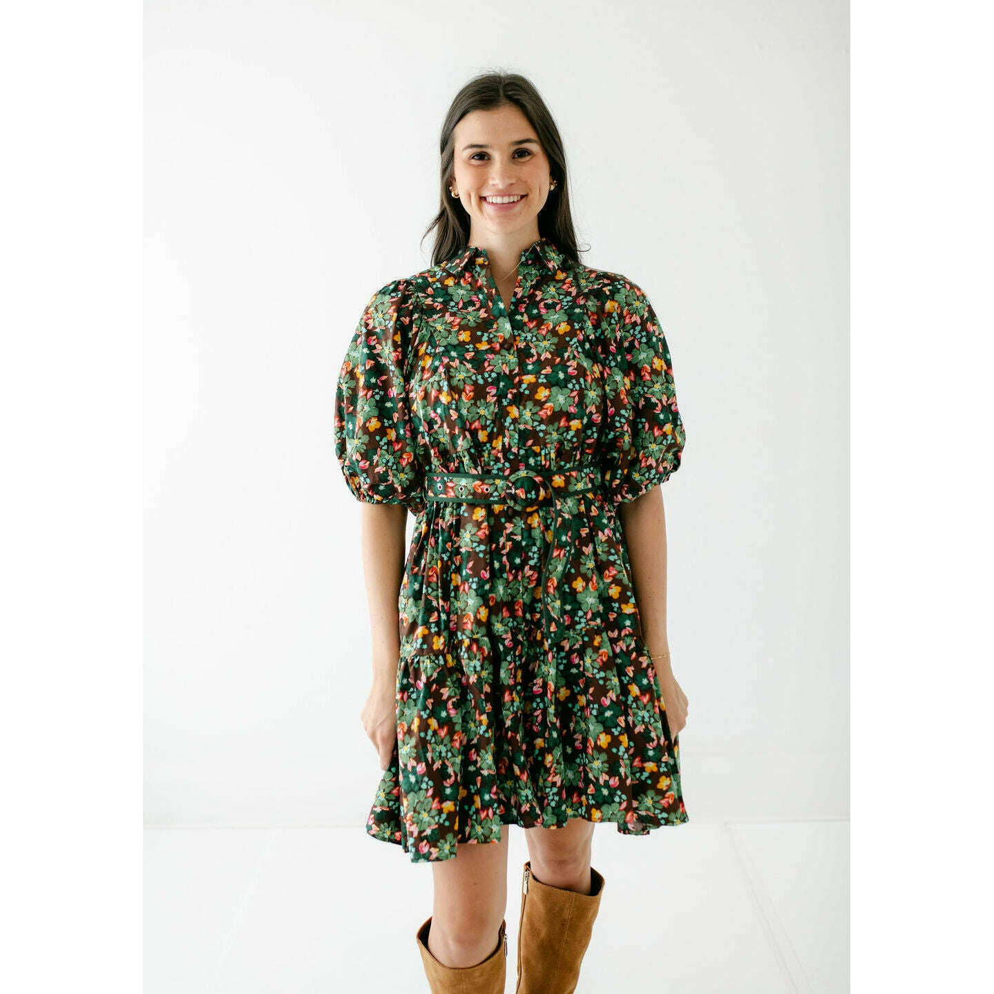 Karlie Brown Floral Belt Shirt Dress