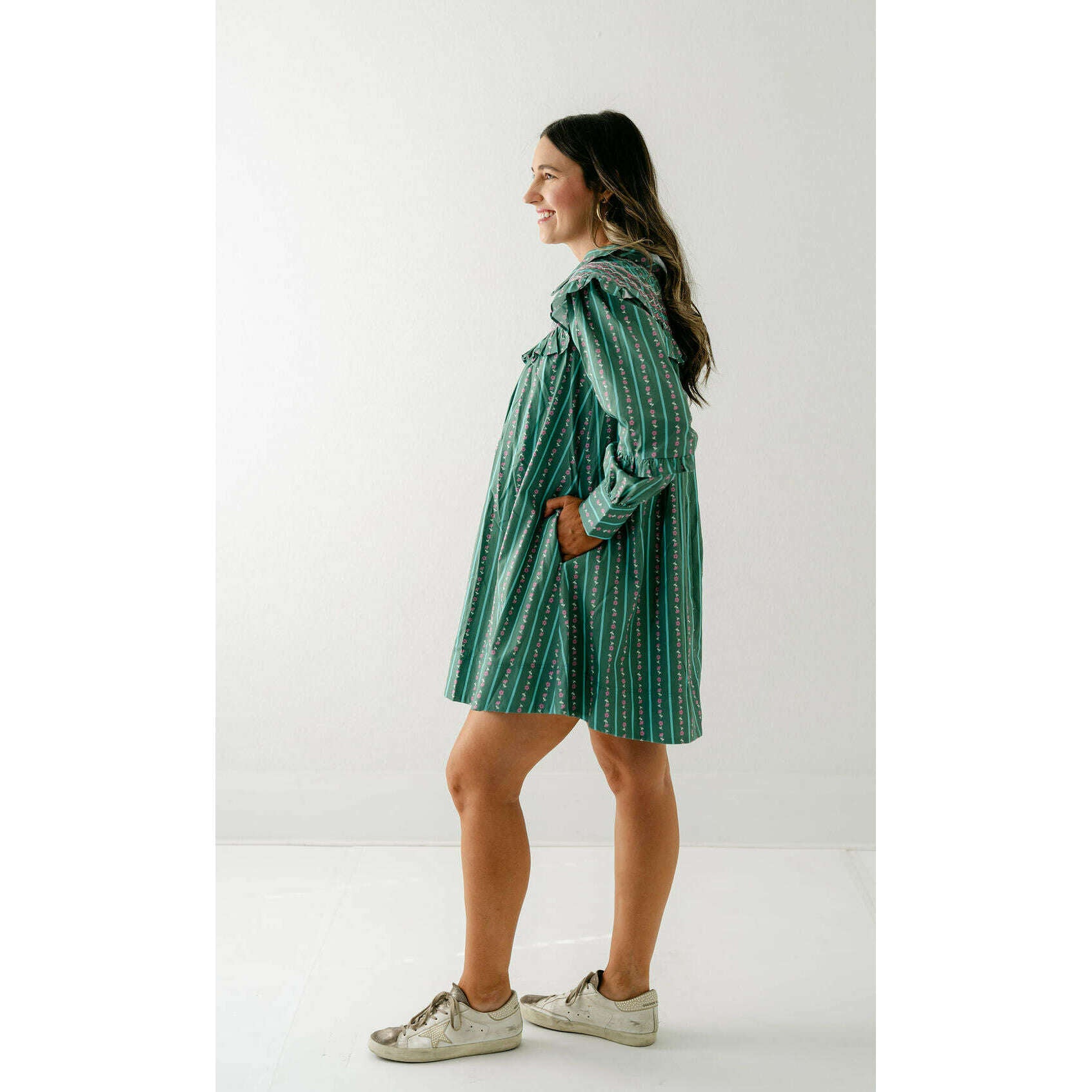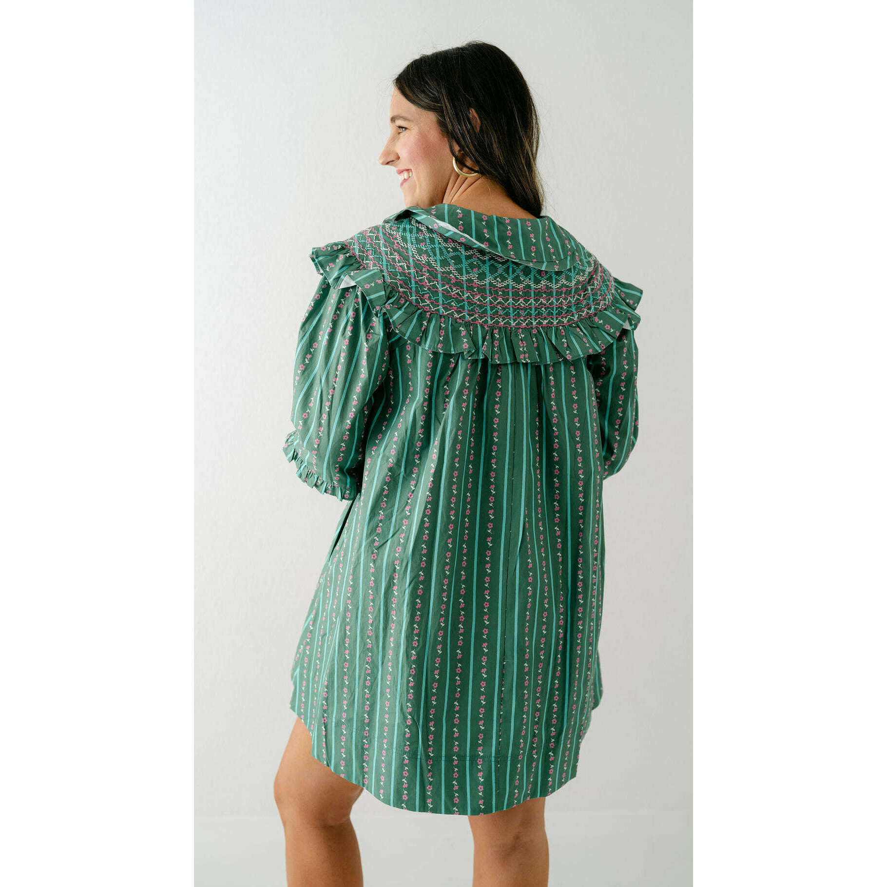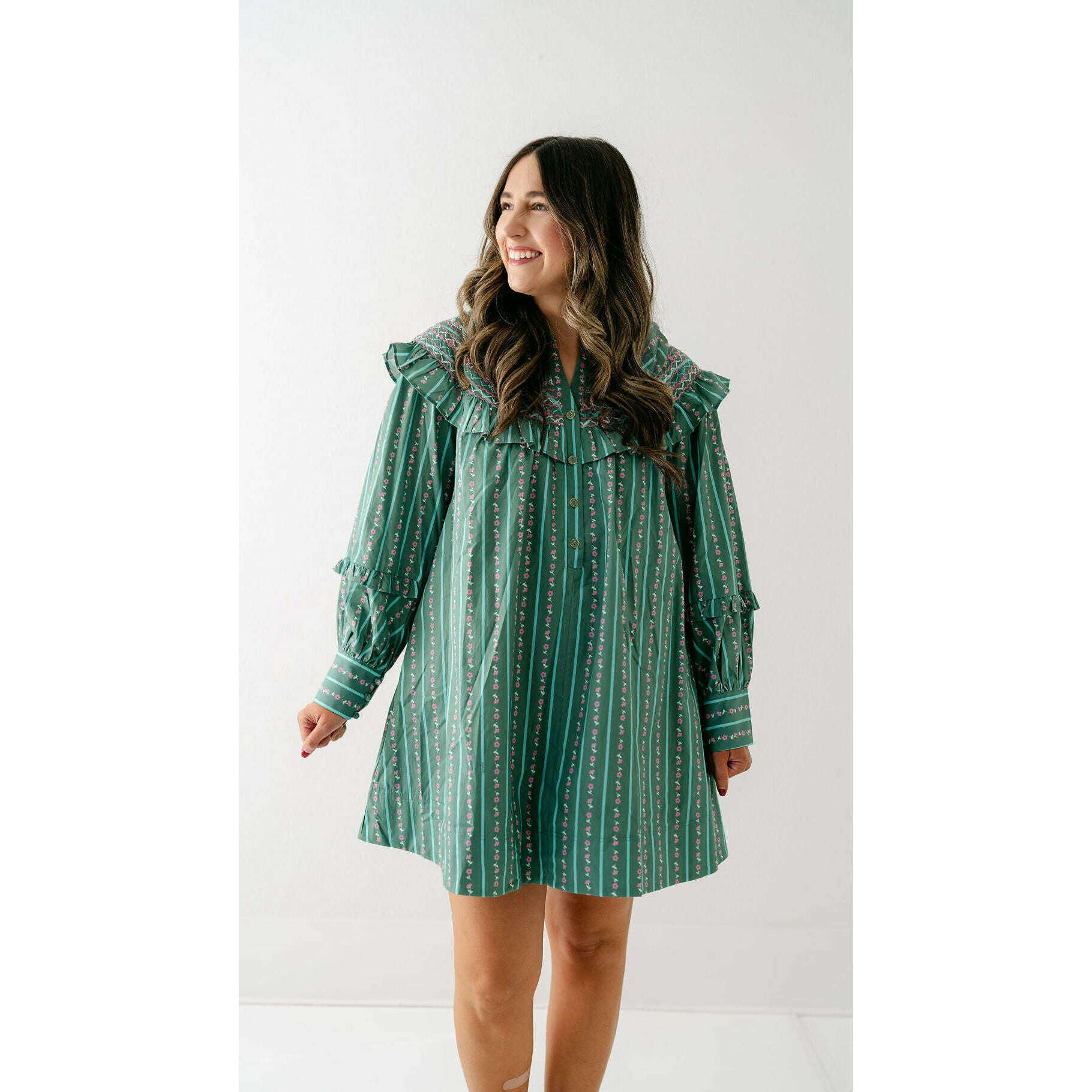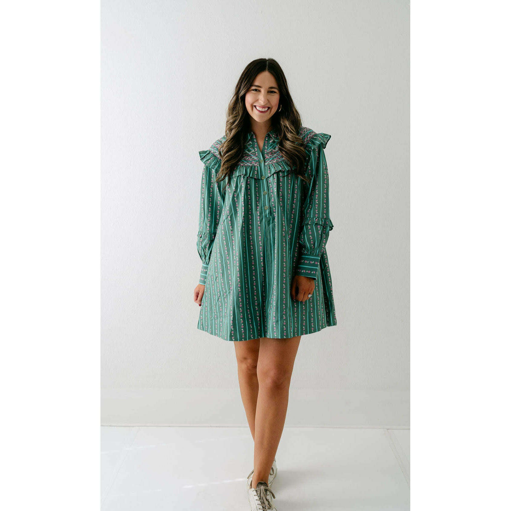 Karlie Floral Stripe Embroidered Peter Pan Dress
