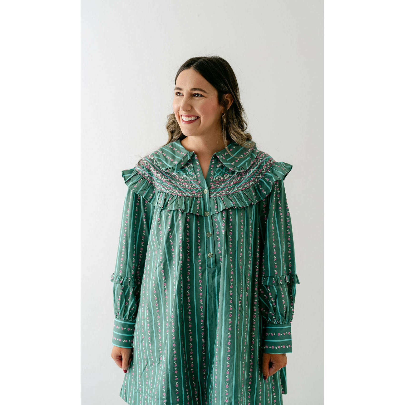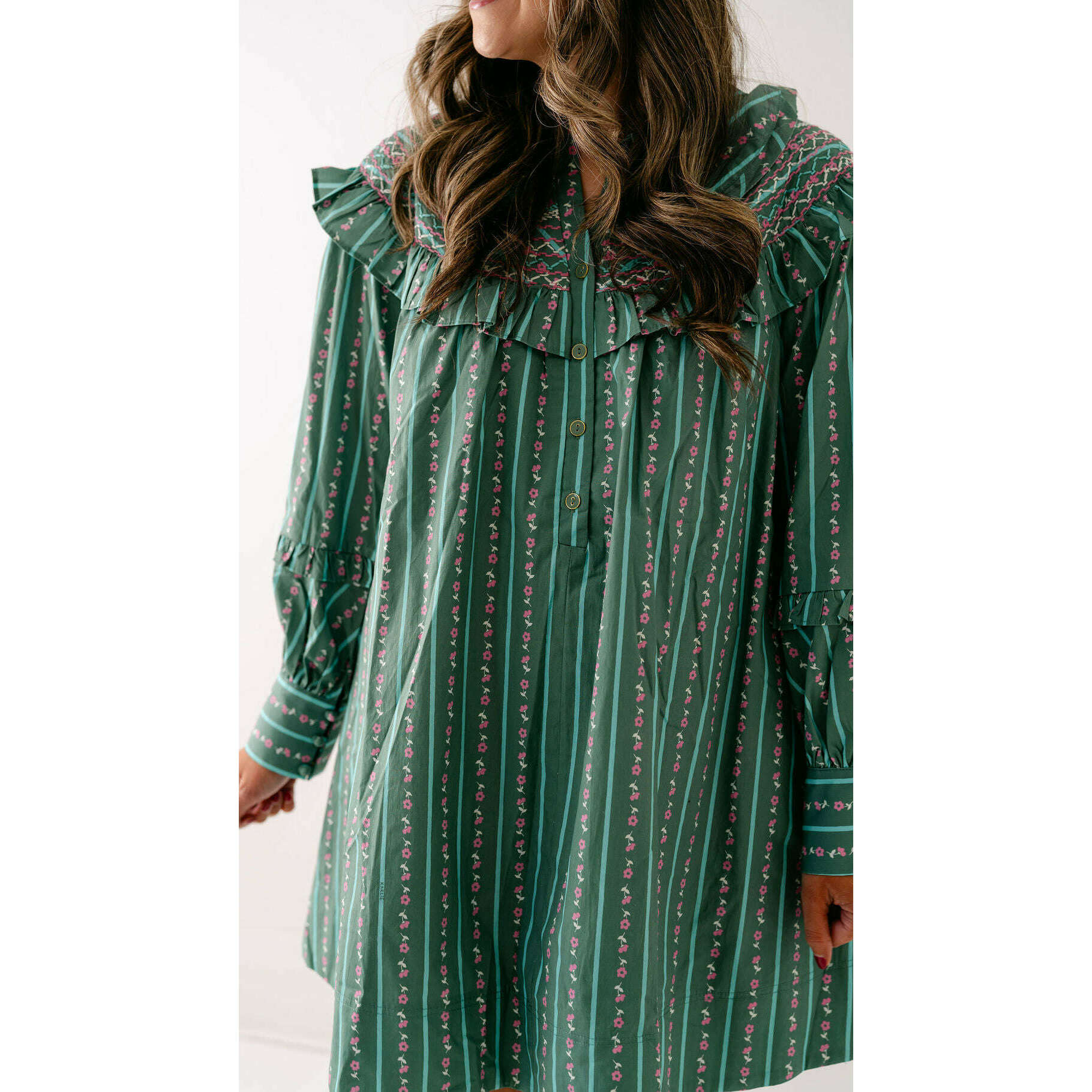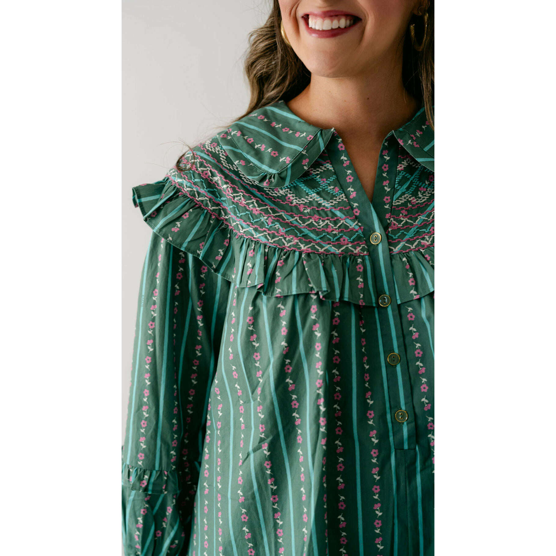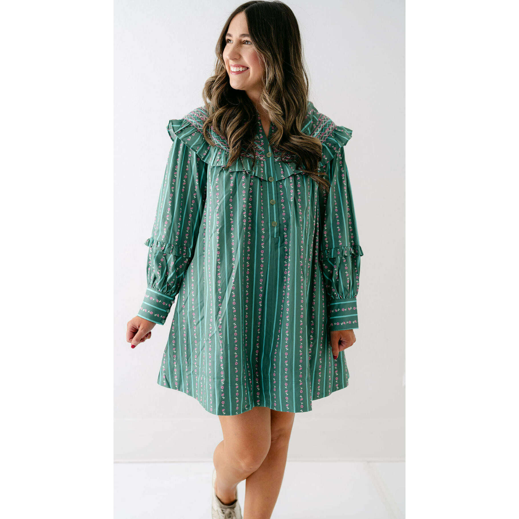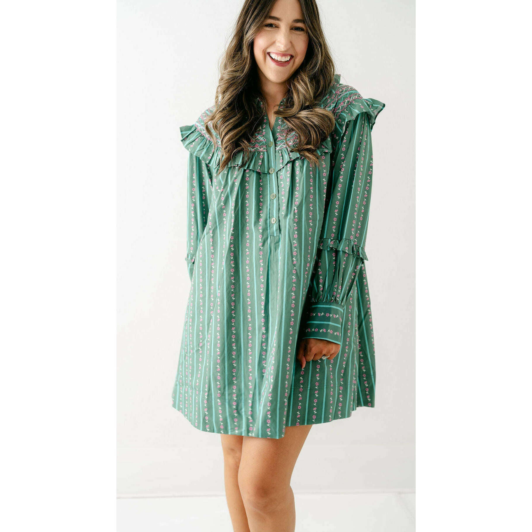 Karlie Floral Stripe Embroidered Peter Pan Dress