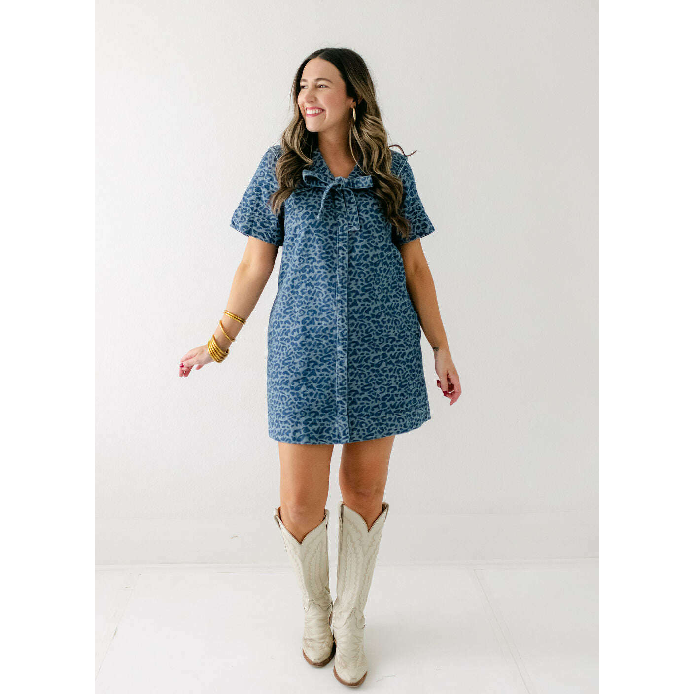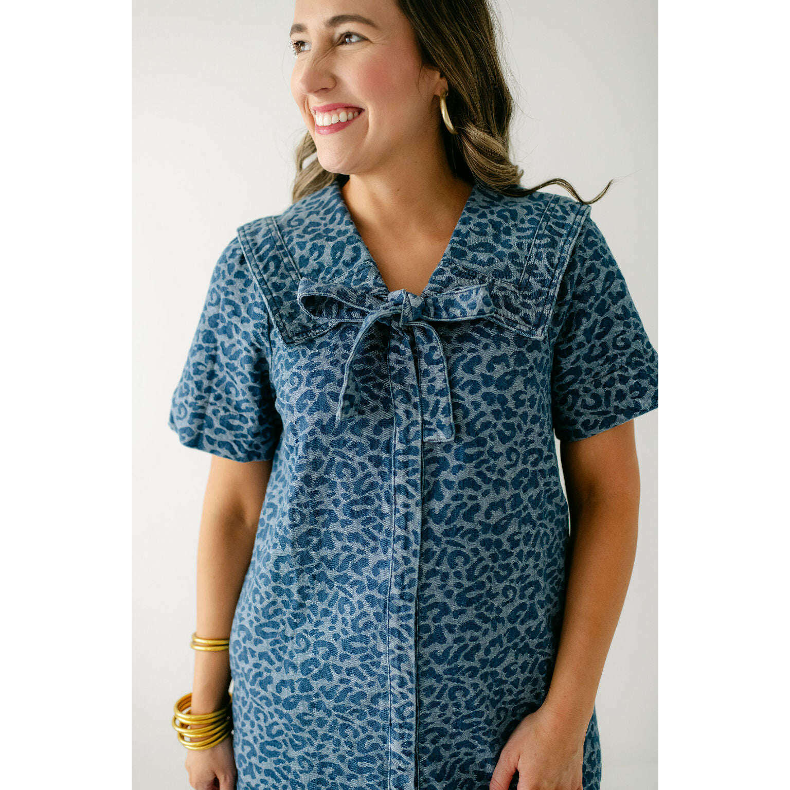 The Abby Cheetah Denim Collar Dress is a must-have for fall, featuring a subtle cheetah print that adds just the right amount of playful charm. Its denim collar brings a classic, stylish detail, making this dress both cute and versatile. Perfect for transitioning through the season, it’s an easy way to elevate your wardrobe with a trendy, cozy look.