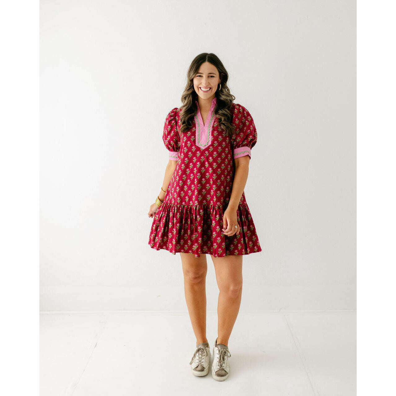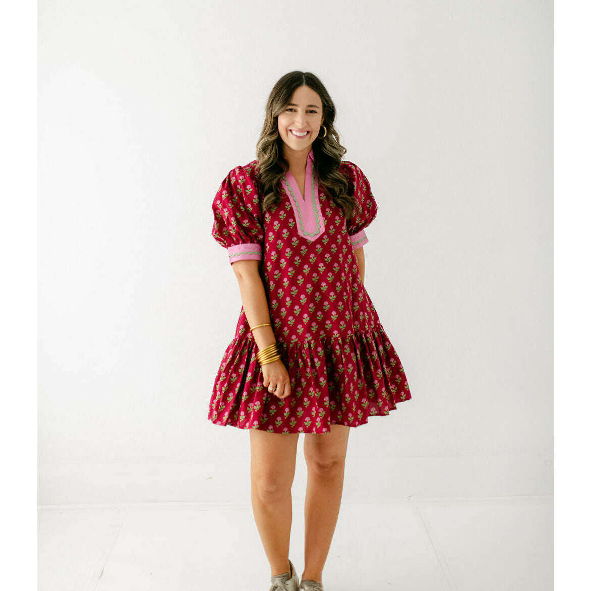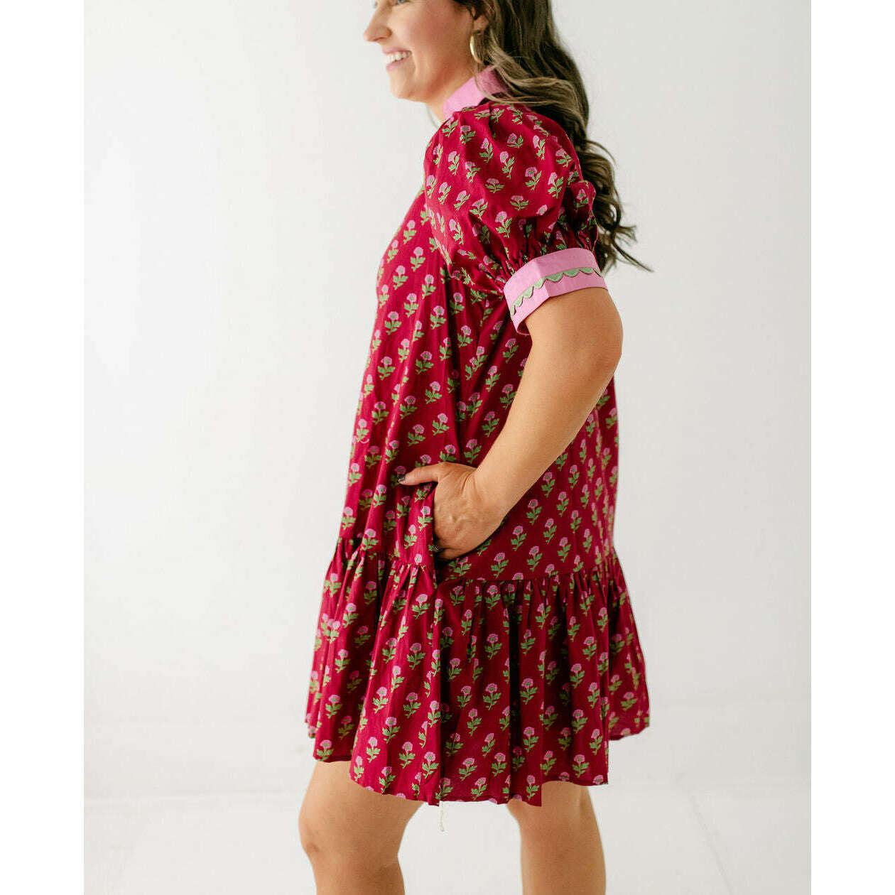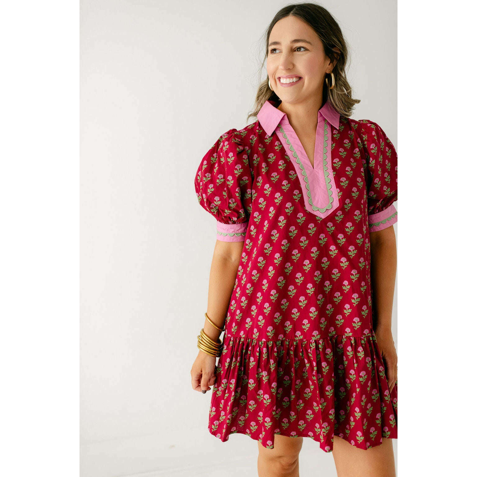 The Scarlet Floral Block Print Mini Dress in Wine features a charming floral pattern and delicate scalloped detailing, making it an irresistible choice for fall. Its rich wine color and playful design bring warmth and style to your wardrobe. Perfect for seasonal outings, this dress effortlessly combines comfort and flair to keep you looking cute and confident all day long.