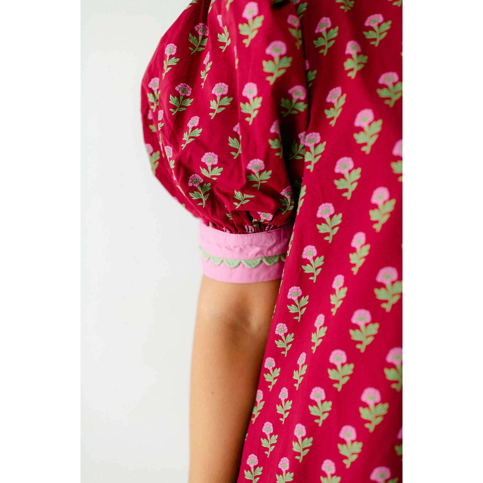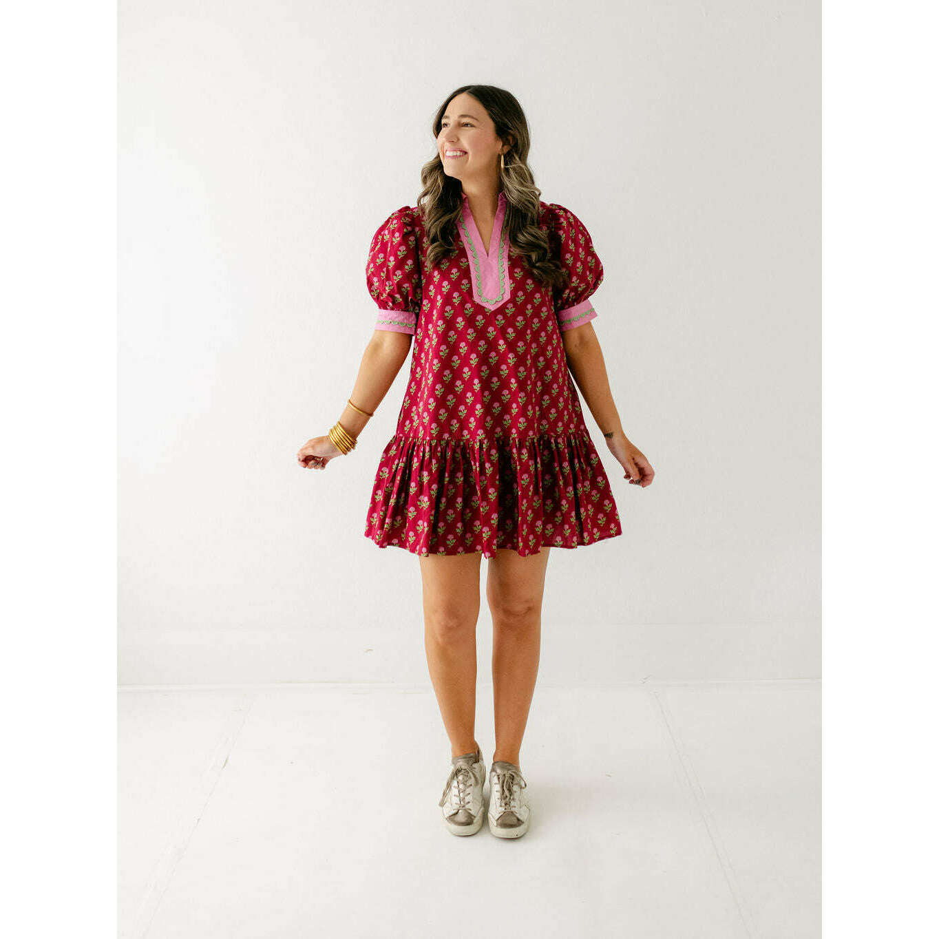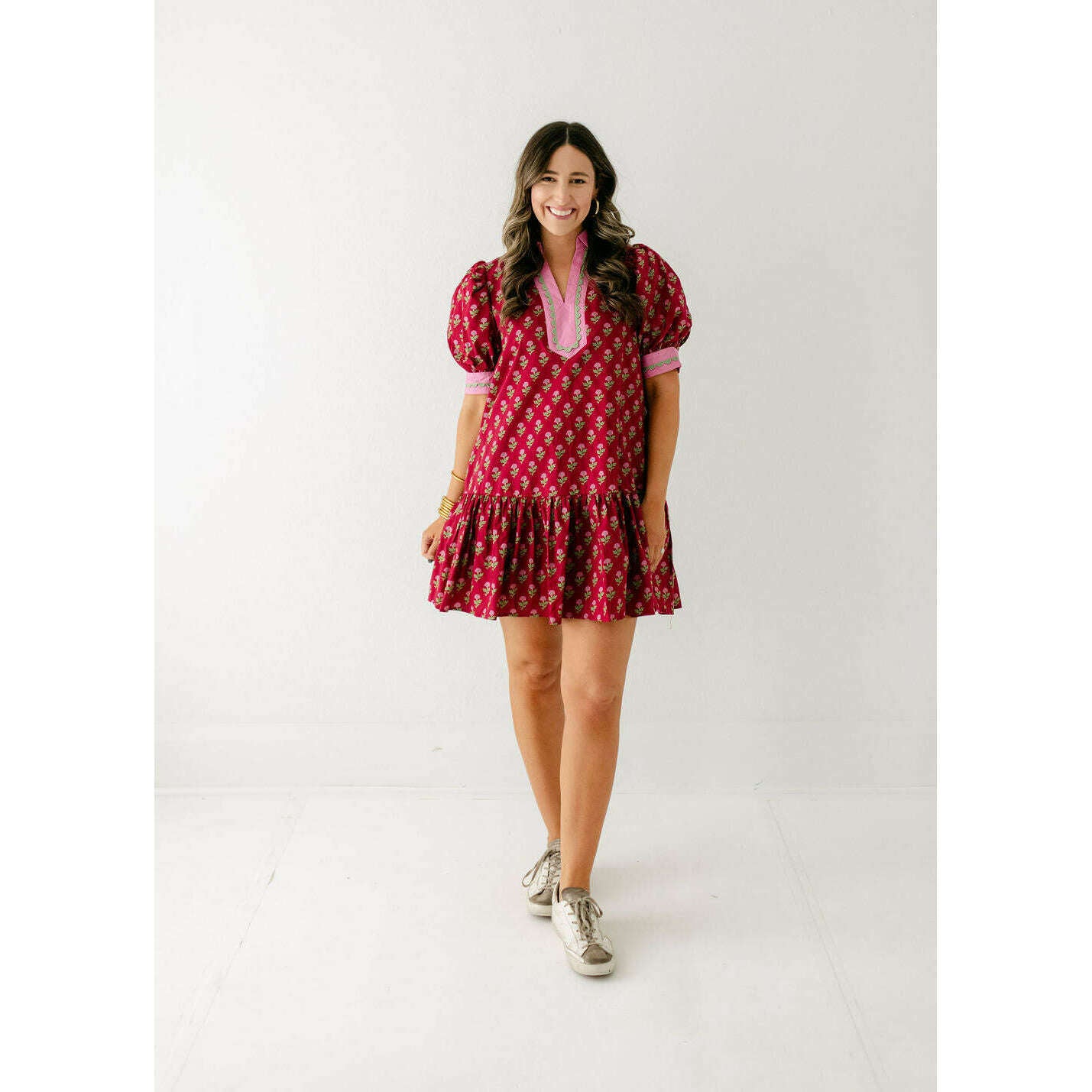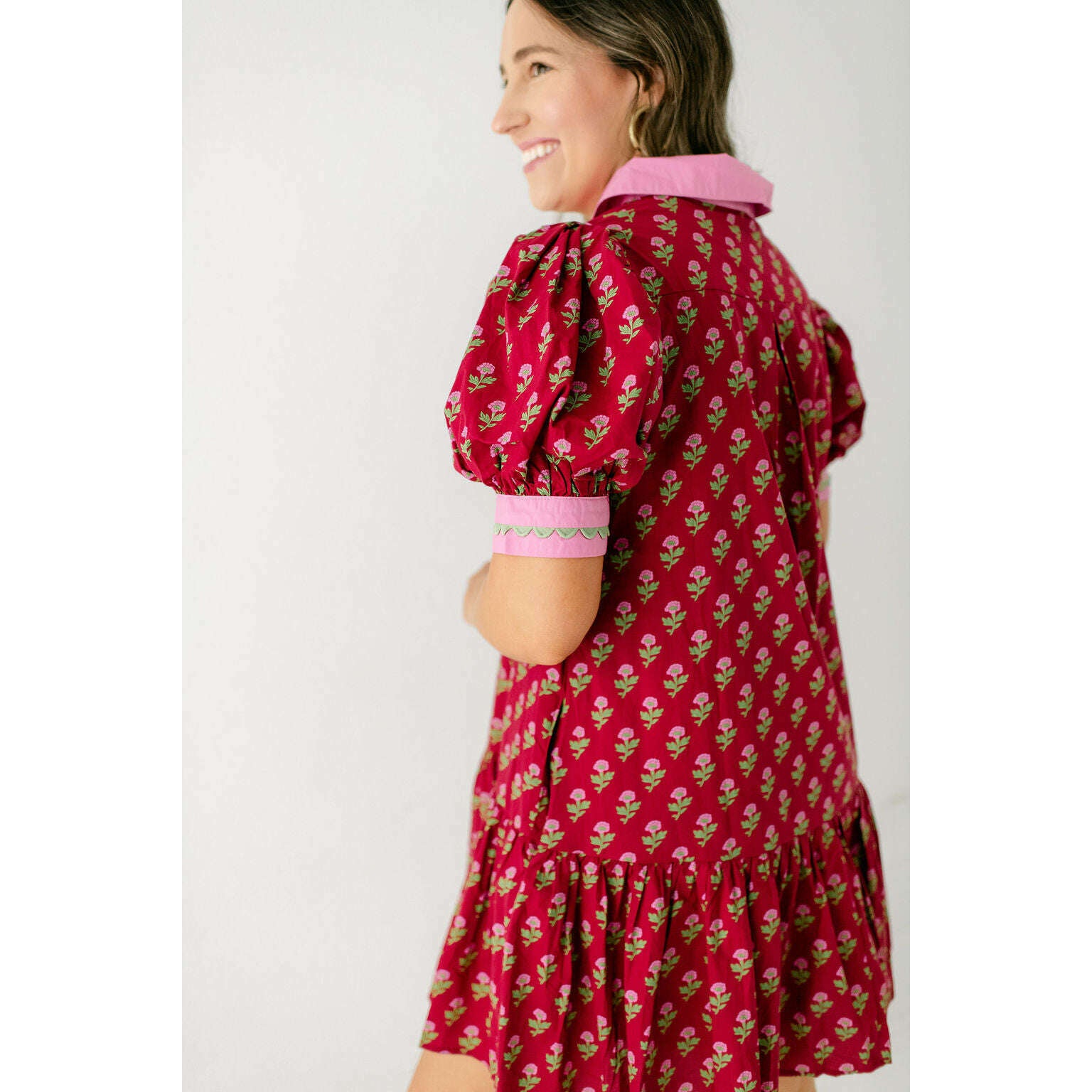 The Scarlet Floral Block Print Mini Dress in Wine features a charming floral pattern and delicate scalloped detailing, making it an irresistible choice for fall. Its rich wine color and playful design bring warmth and style to your wardrobe. Perfect for seasonal outings, this dress effortlessly combines comfort and flair to keep you looking cute and confident all day long.