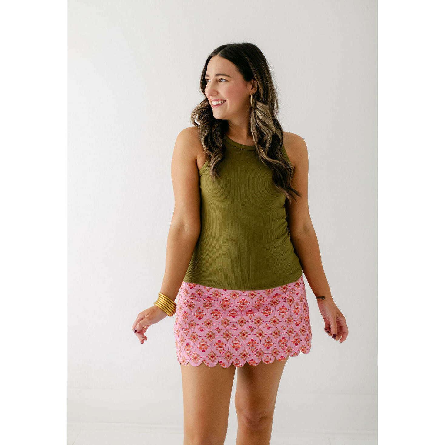 The Karlie Olive Ribbed Tank is a must-have piece that combines comfort and style effortlessly. Its flattering ribbed texture adds subtle detail, making it perfect for pairing with the Karlie London Floral Scallop Kourt skort for a complete, chic outfit. Elevate your look with this versatile tank that’s as cute as it is comfortable.