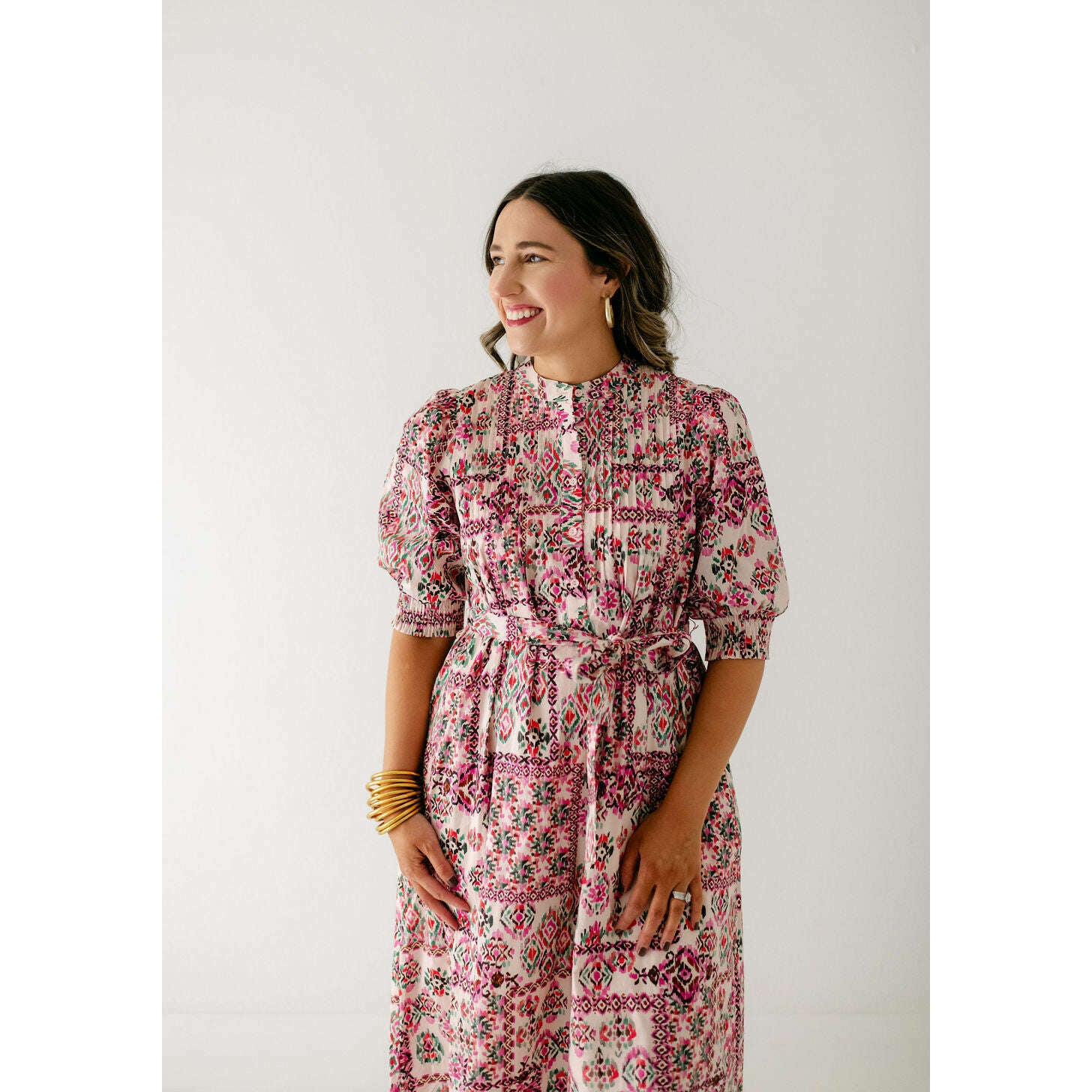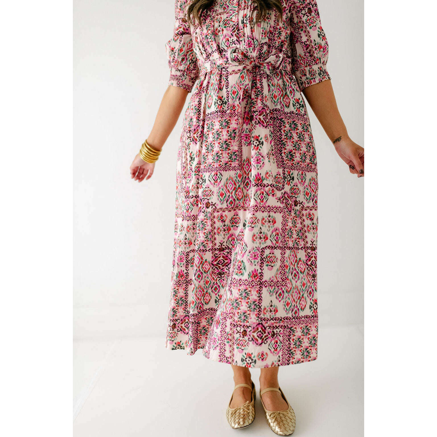 Joy*Joy Pin Tuck Maxi Dress in Woven Tapestry