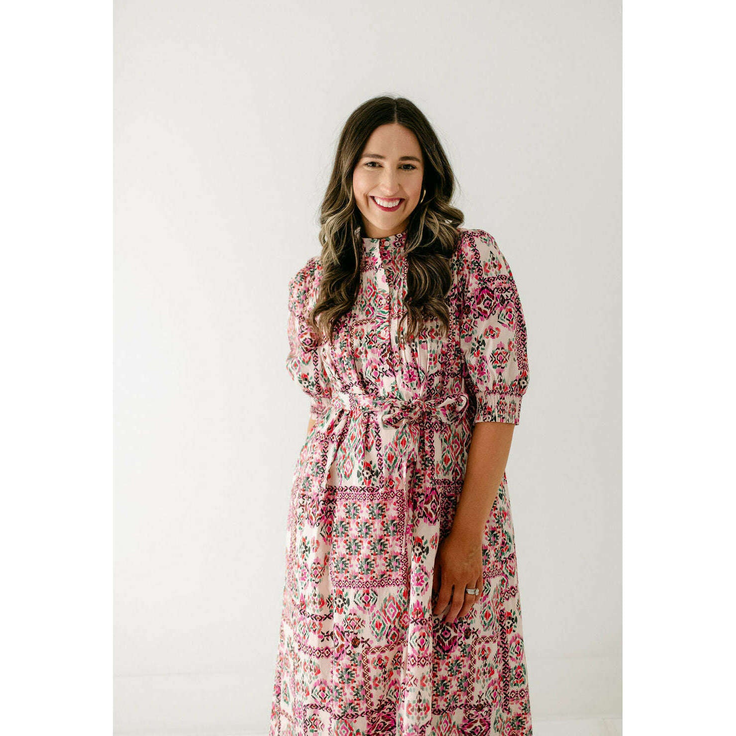 Embrace autumn in the Joy*Joy Pin Tuck Maxi Dress, crafted from rich woven tapestry fabric. Its vibrant, playful colors bring warmth and charm to any fall occasion, while the delicate pin tuck detailing enhances its elegant silhouette. Perfect for layering or wearing solo, this dress effortlessly blends comfort with standout style for the season.