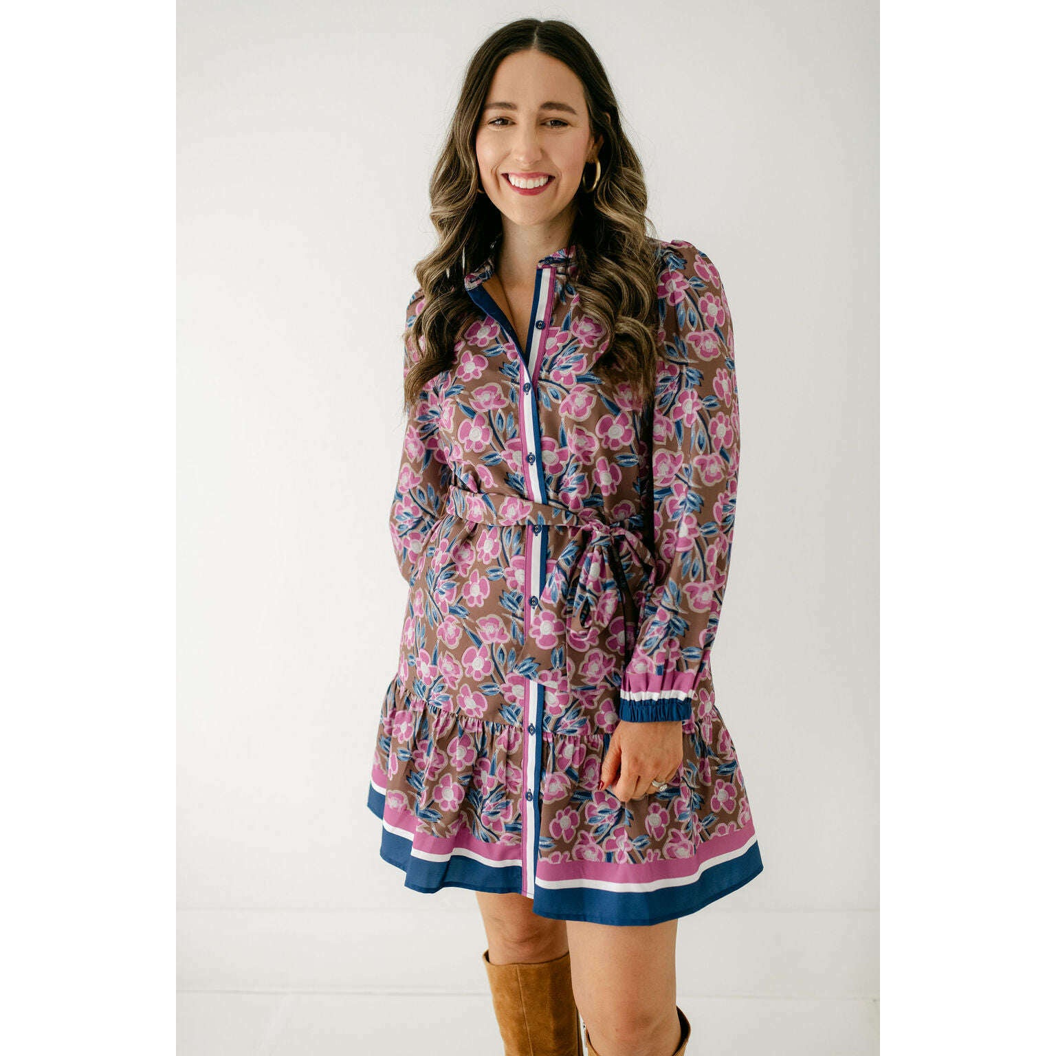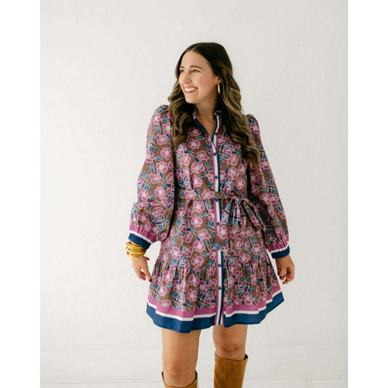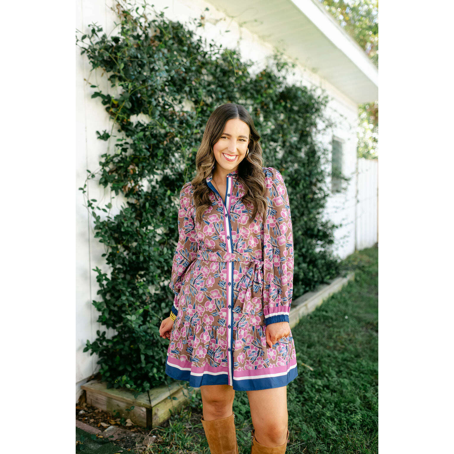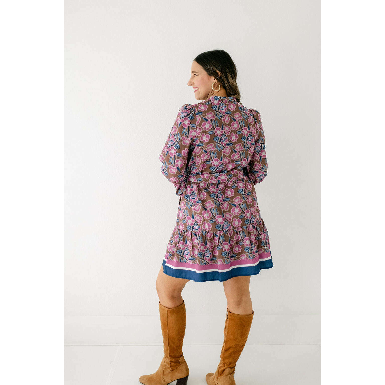 Experience elegance and playfulness in our Joy*Joy Rosewood Ruffle Hem Dress! Adorned with a unique print and charming brown detailing, this dress is perfect for adding some fun and fashion to your fall wardrobe. You'll love the way you look and feel in this must-have dress.