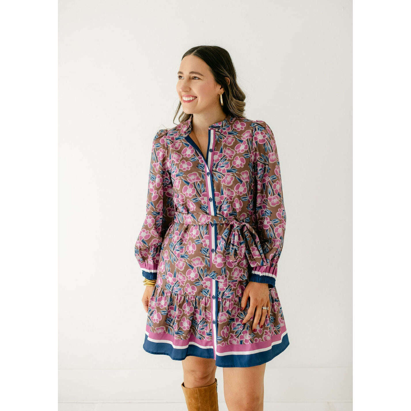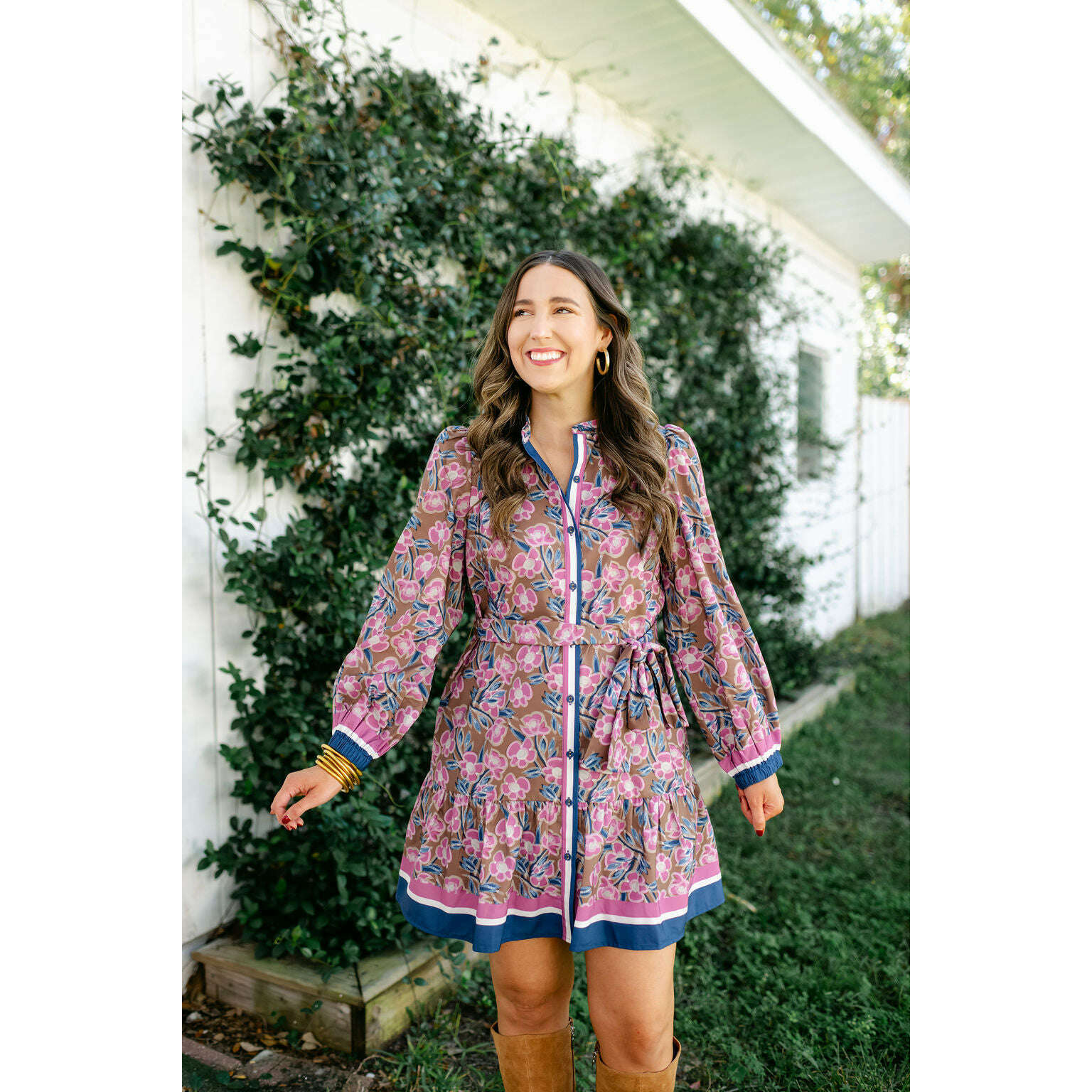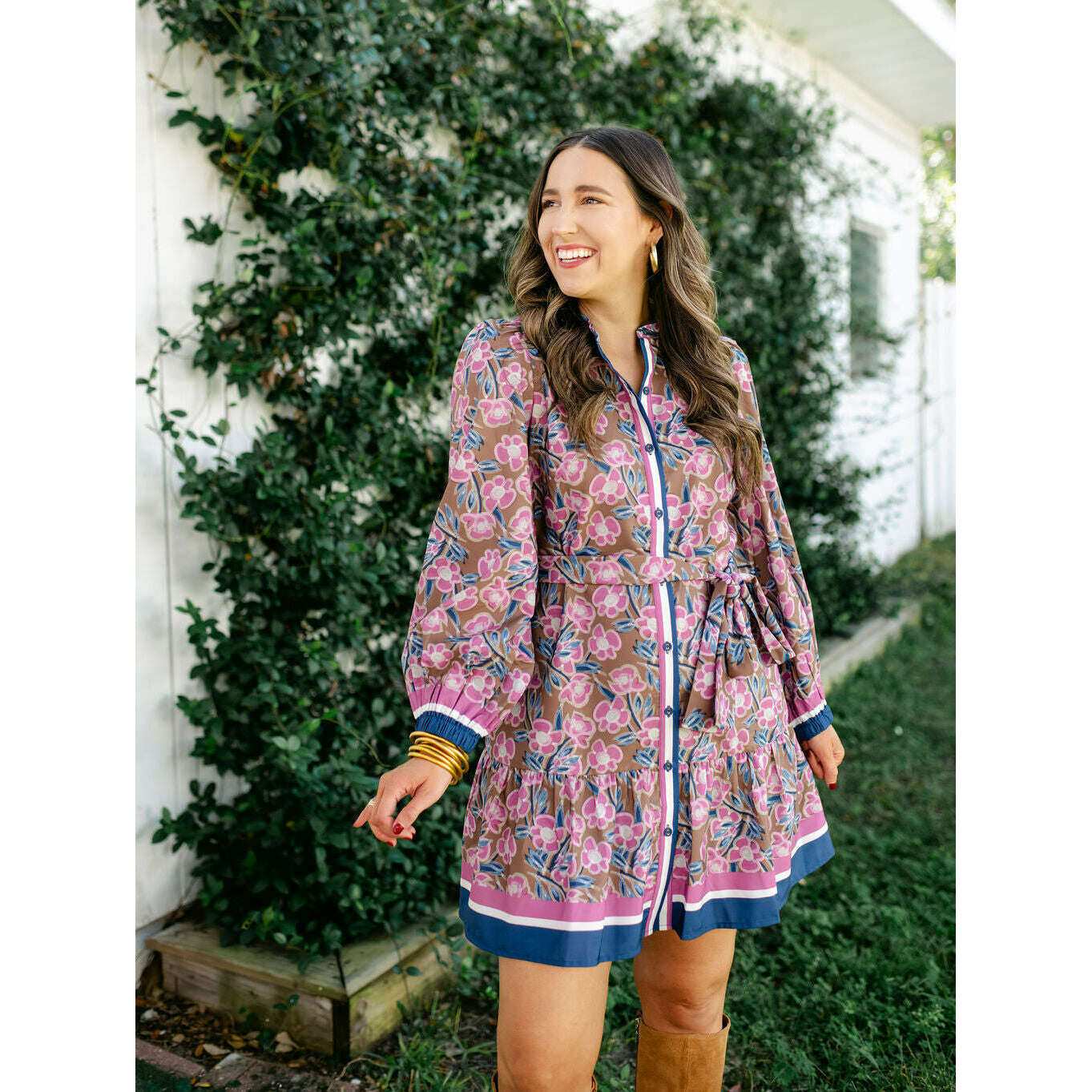 Experience elegance and playfulness in our Joy*Joy Rosewood Ruffle Hem Dress! Adorned with a unique print and charming brown detailing, this dress is perfect for adding some fun and fashion to your fall wardrobe. You'll love the way you look and feel in this must-have dress.
