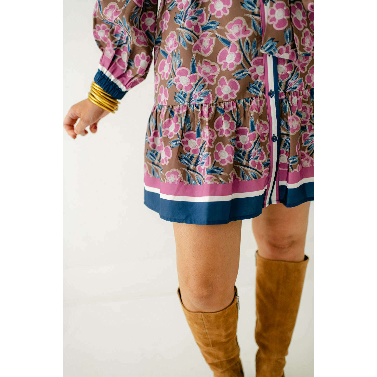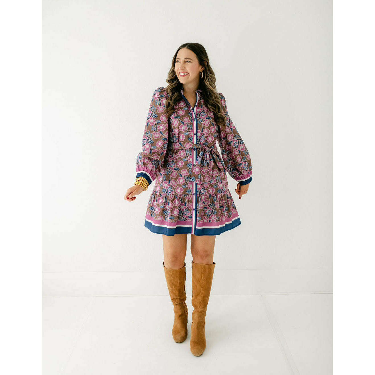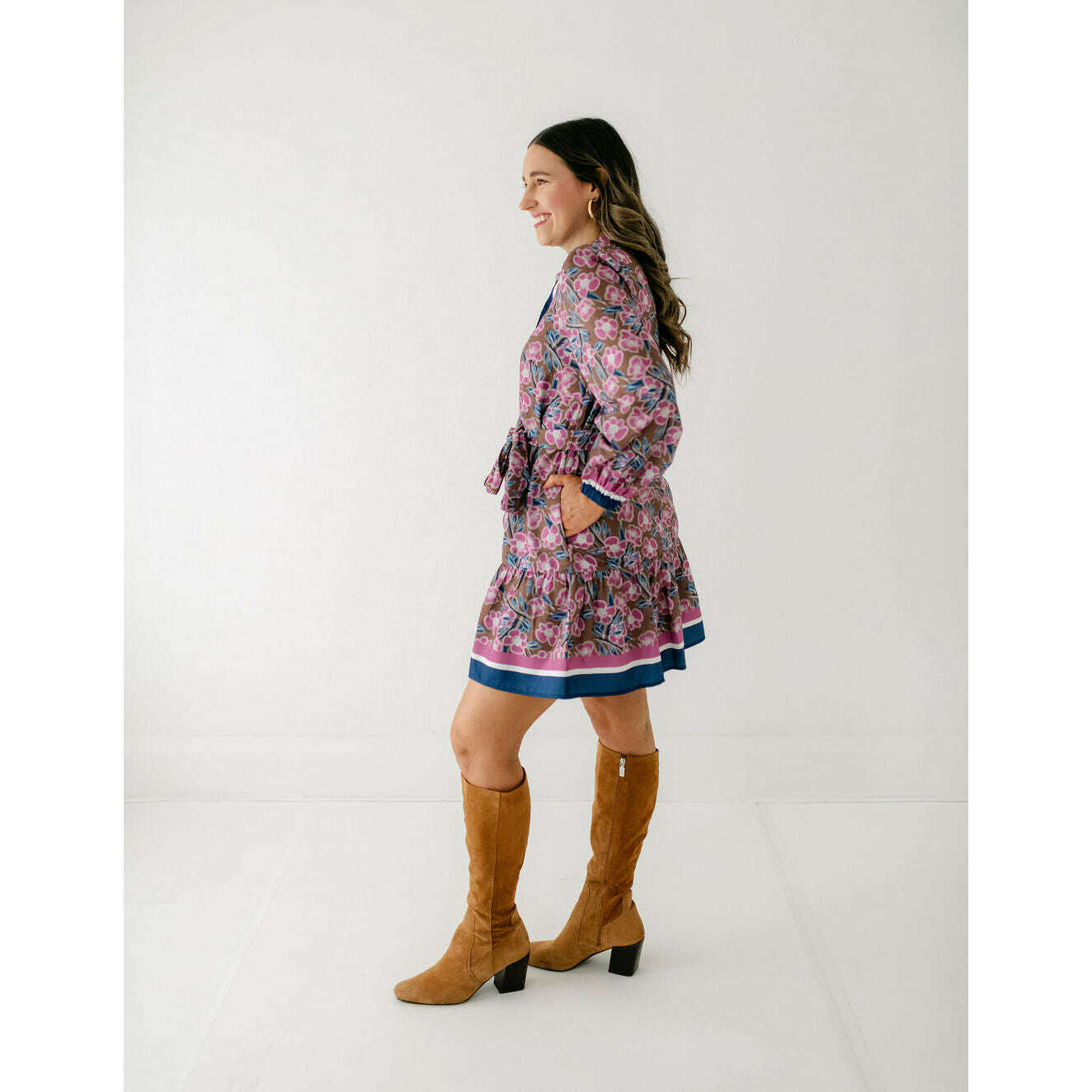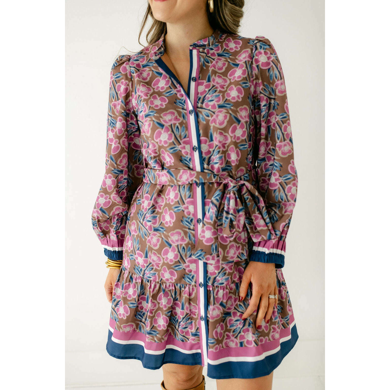 Experience elegance and playfulness in our Joy*Joy Rosewood Ruffle Hem Dress! Adorned with a unique print and charming brown detailing, this dress is perfect for adding some fun and fashion to your fall wardrobe. You'll love the way you look and feel in this must-have dress.
