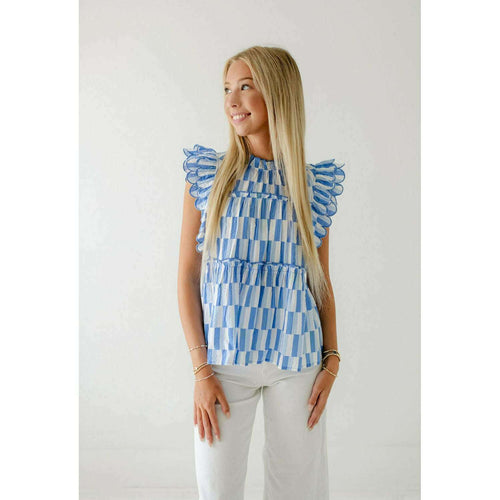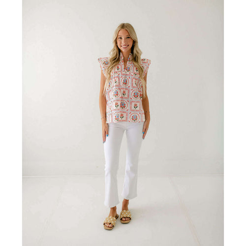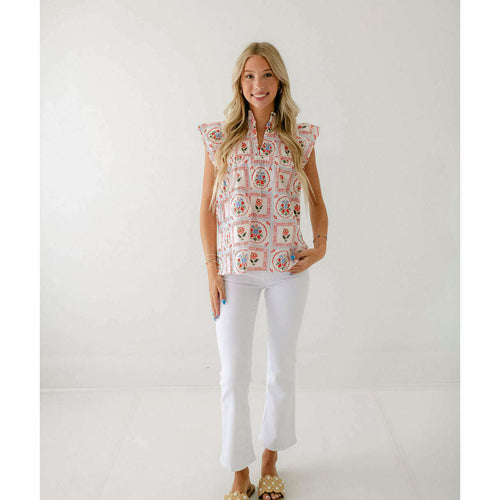 Karlie Brown Floral Frame V-Neck Ruffle Top