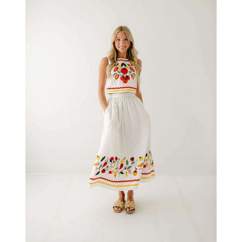 Karlie Brown Floral Frame Tiered Smocked Maxi Skirt