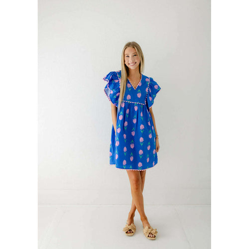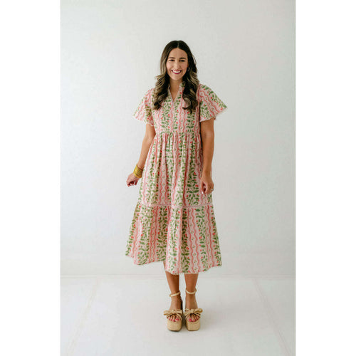 Karlie Floral Stripe Embroidered Peter Pan Dress