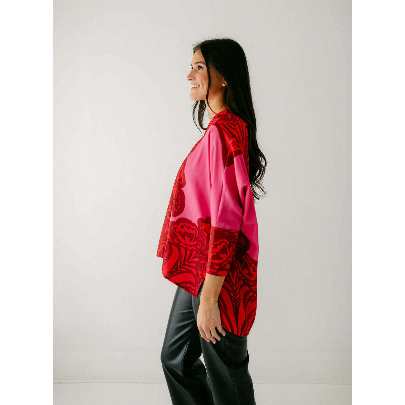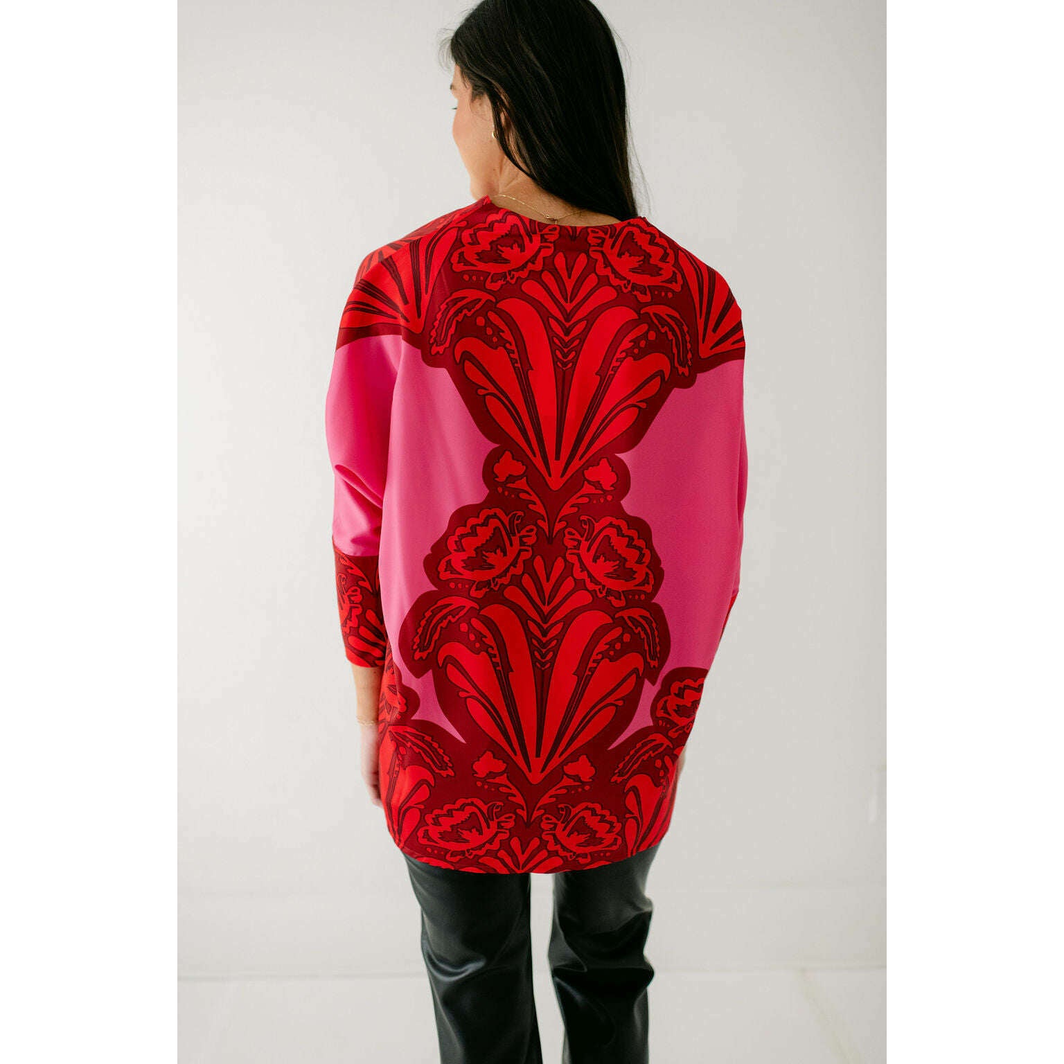 The Keaton Tunic is a modern, elevated twist on our classic tunic silhouette. Designed with a flowy fit, a shawl collar framing a flattering V-neckline, and versatile dolman sleeves with hidden zippers at the cuffs, it’s the perfect piece to pair with leather leggings for an effortless, comfortable look.