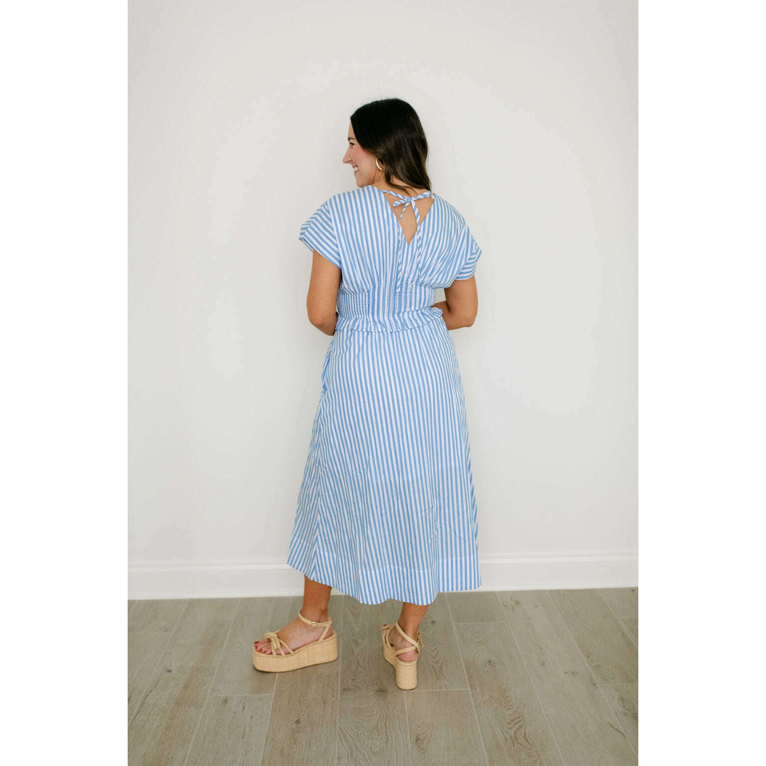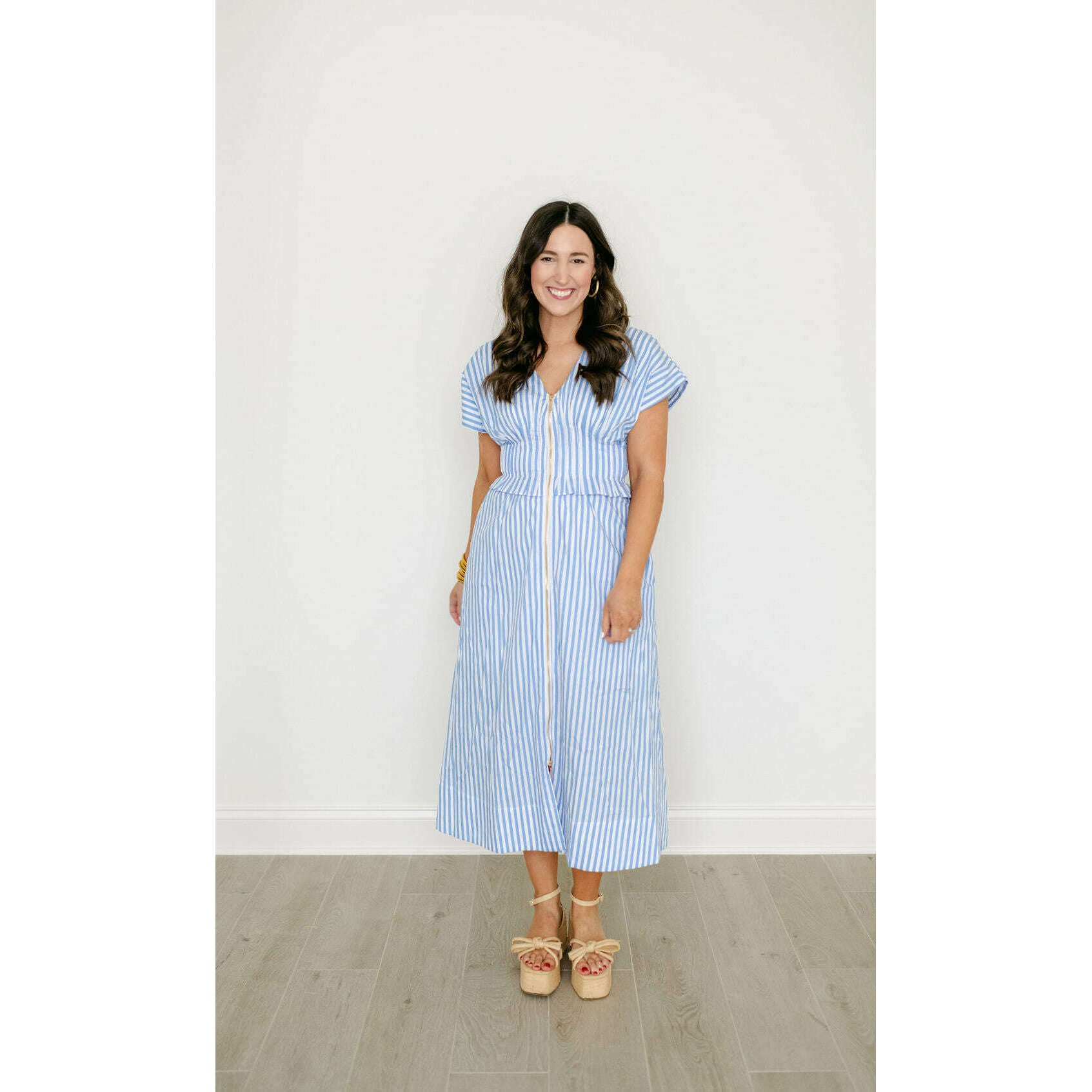 Entro Blue and White Stripe Zip Up Midi Dress