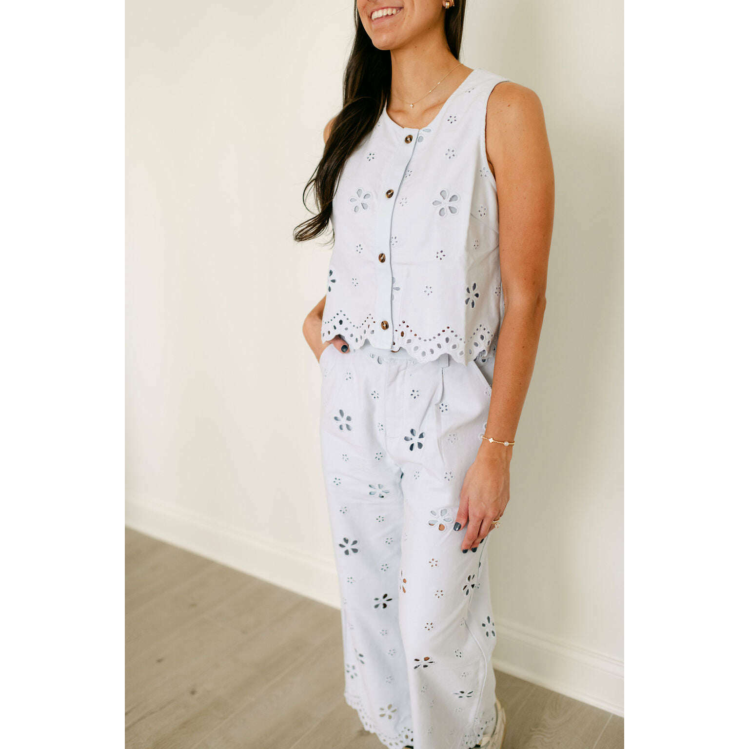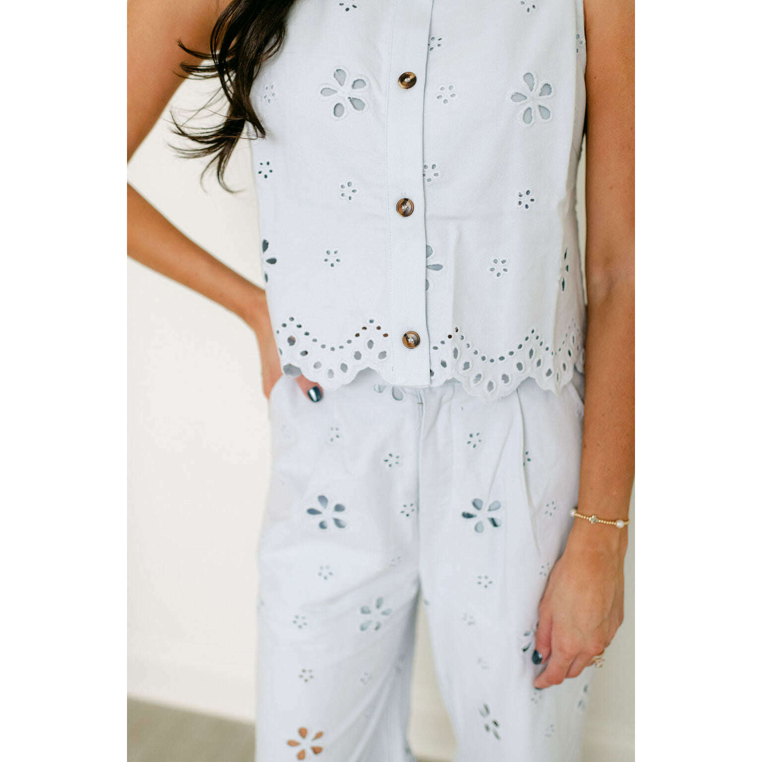 Entro Light Blue Eyelet Top