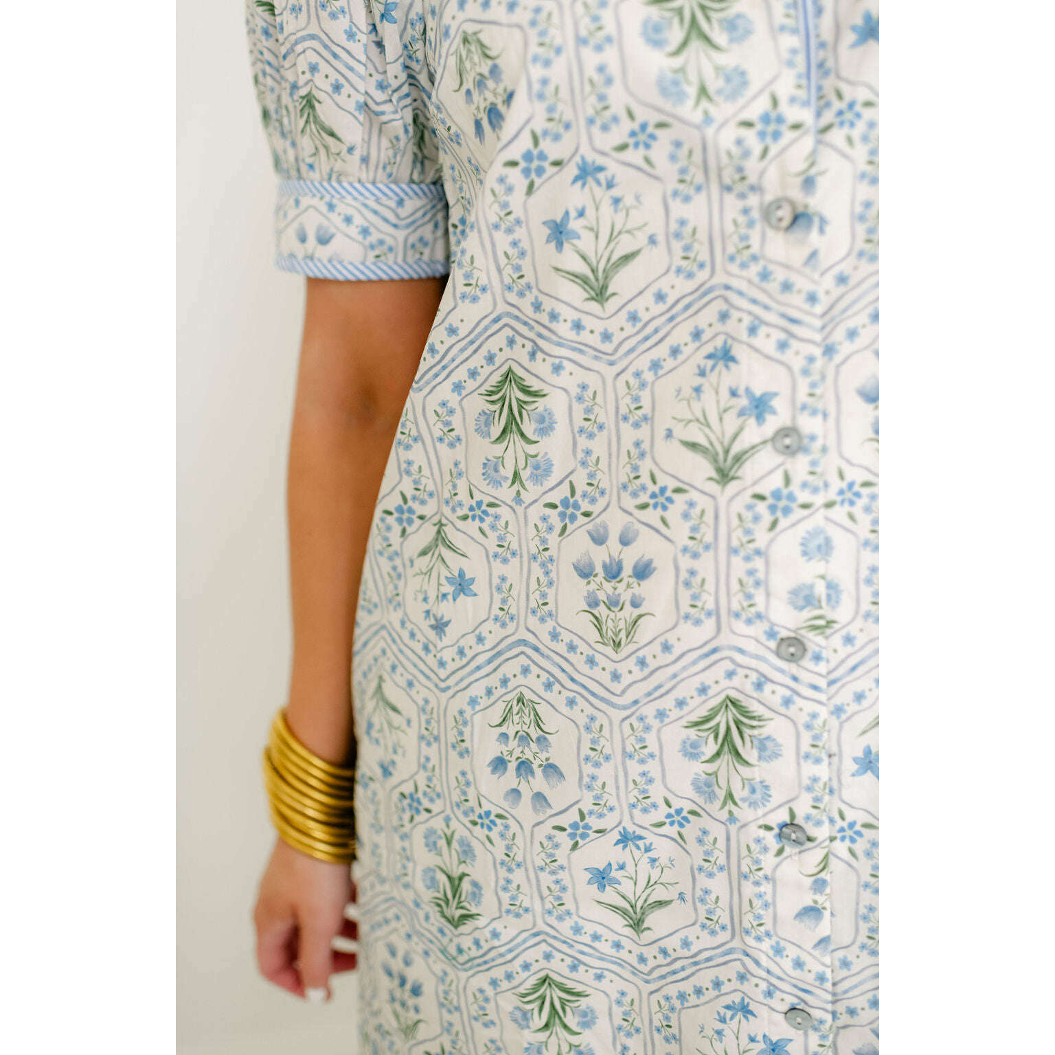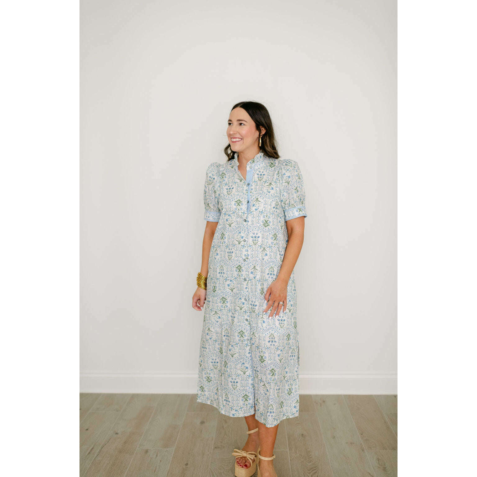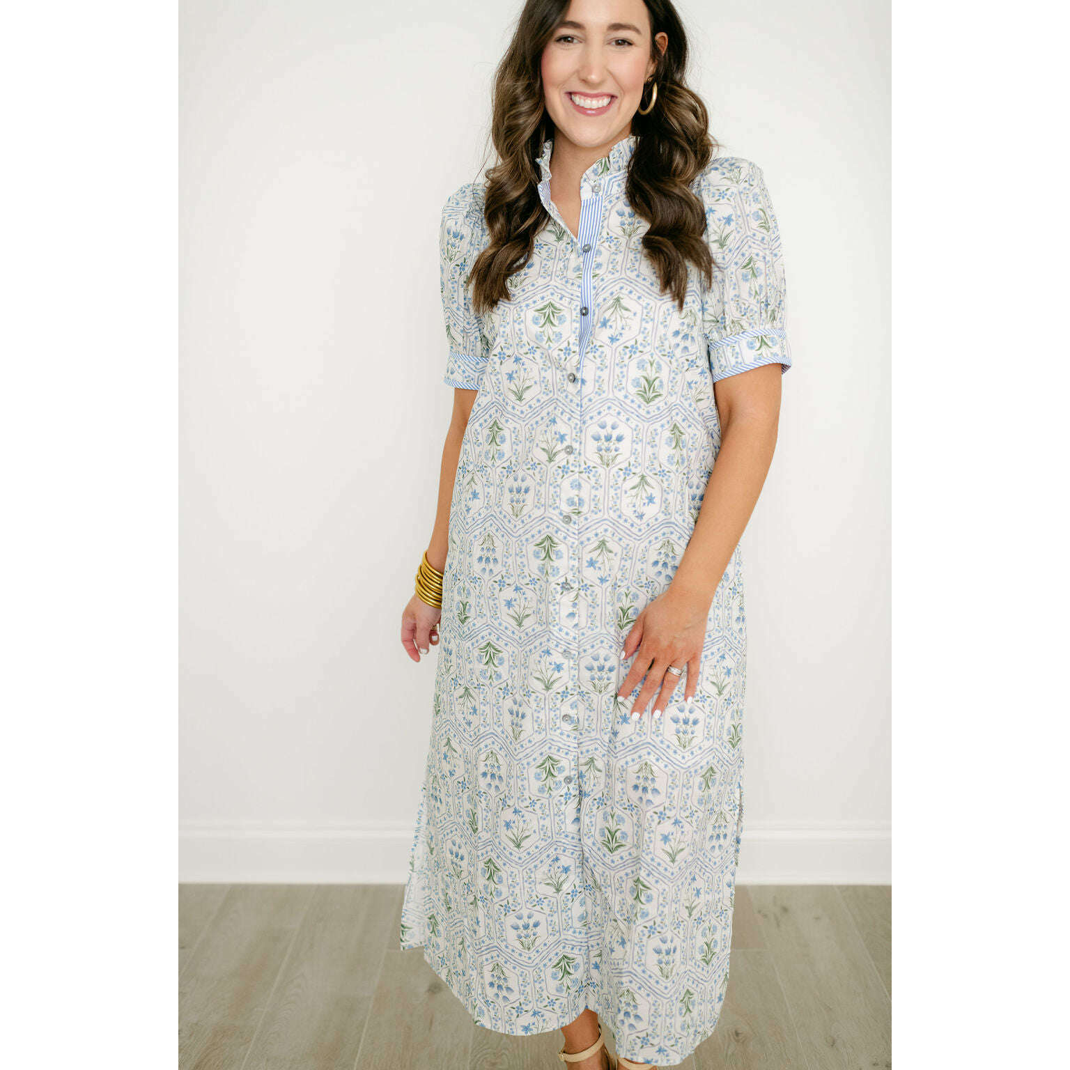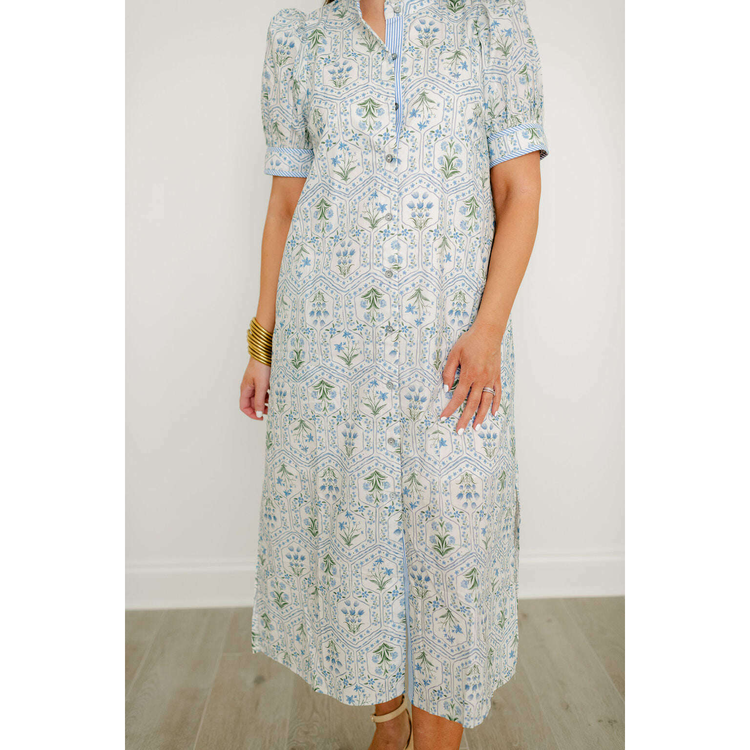 The Entro Light Blue Floral Block Print Midi Dress combines a charming floral design with delicate stripe detailing, making it the perfect spring essential. This beautifully fitted piece brings effortless style and elegance to any seasonal wardrobe.