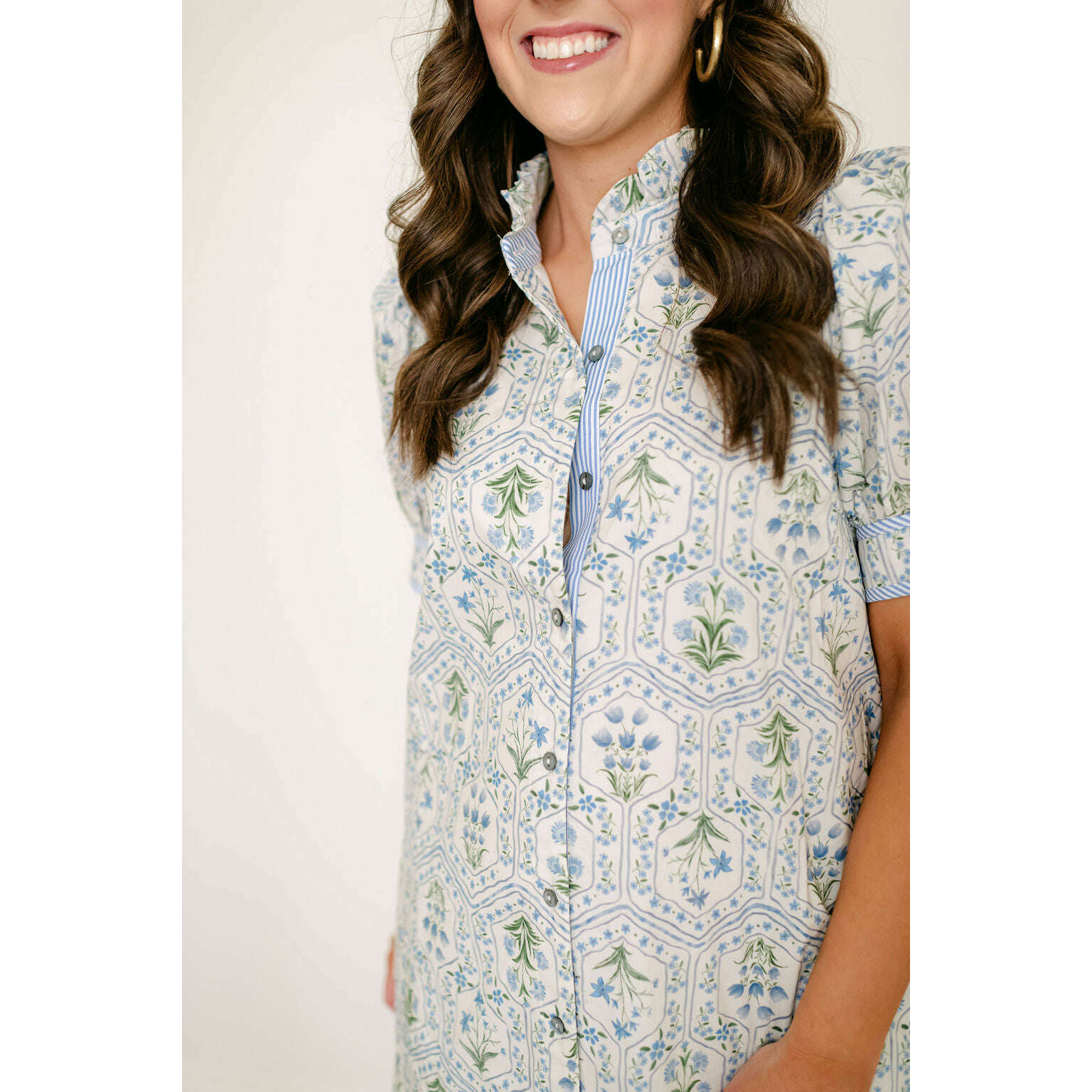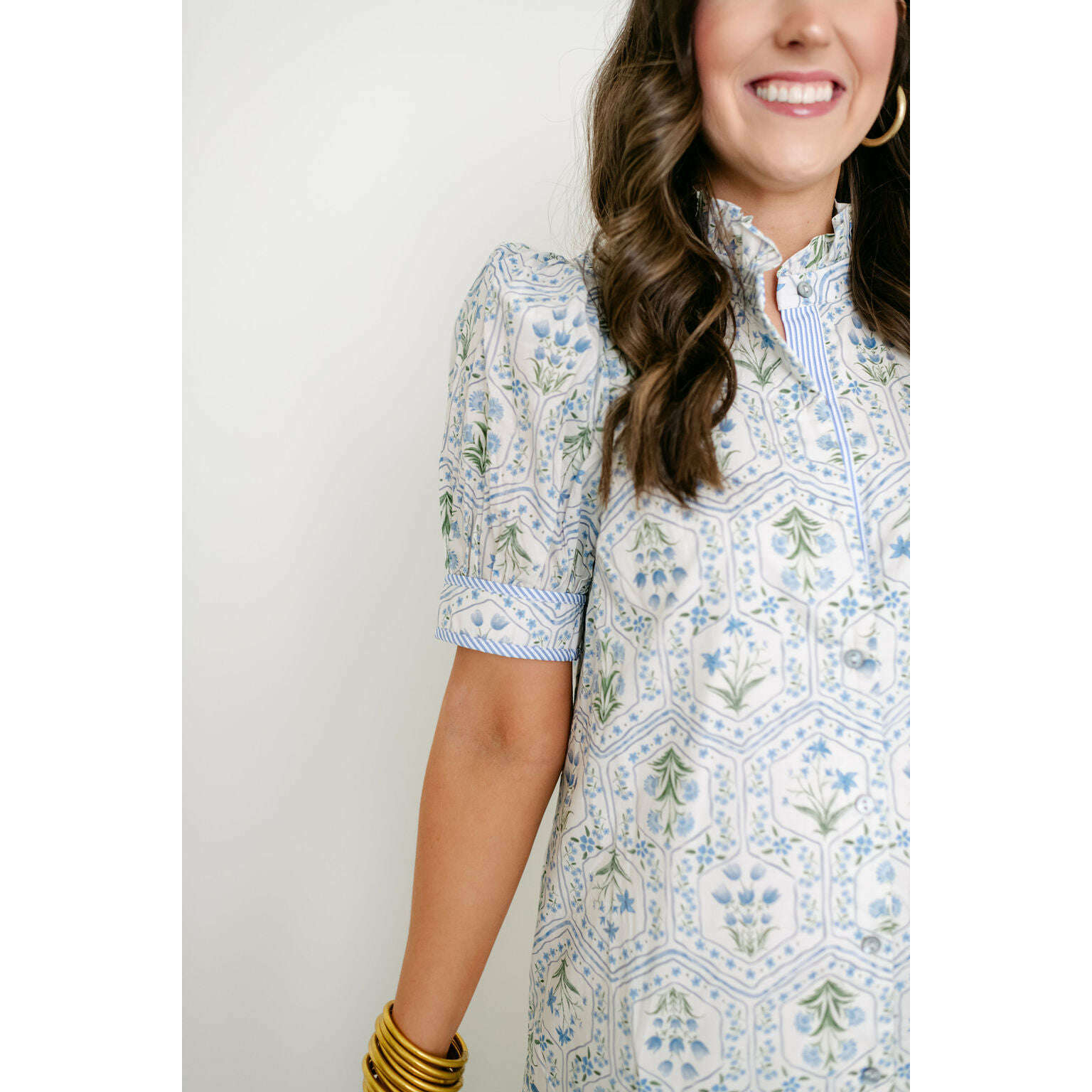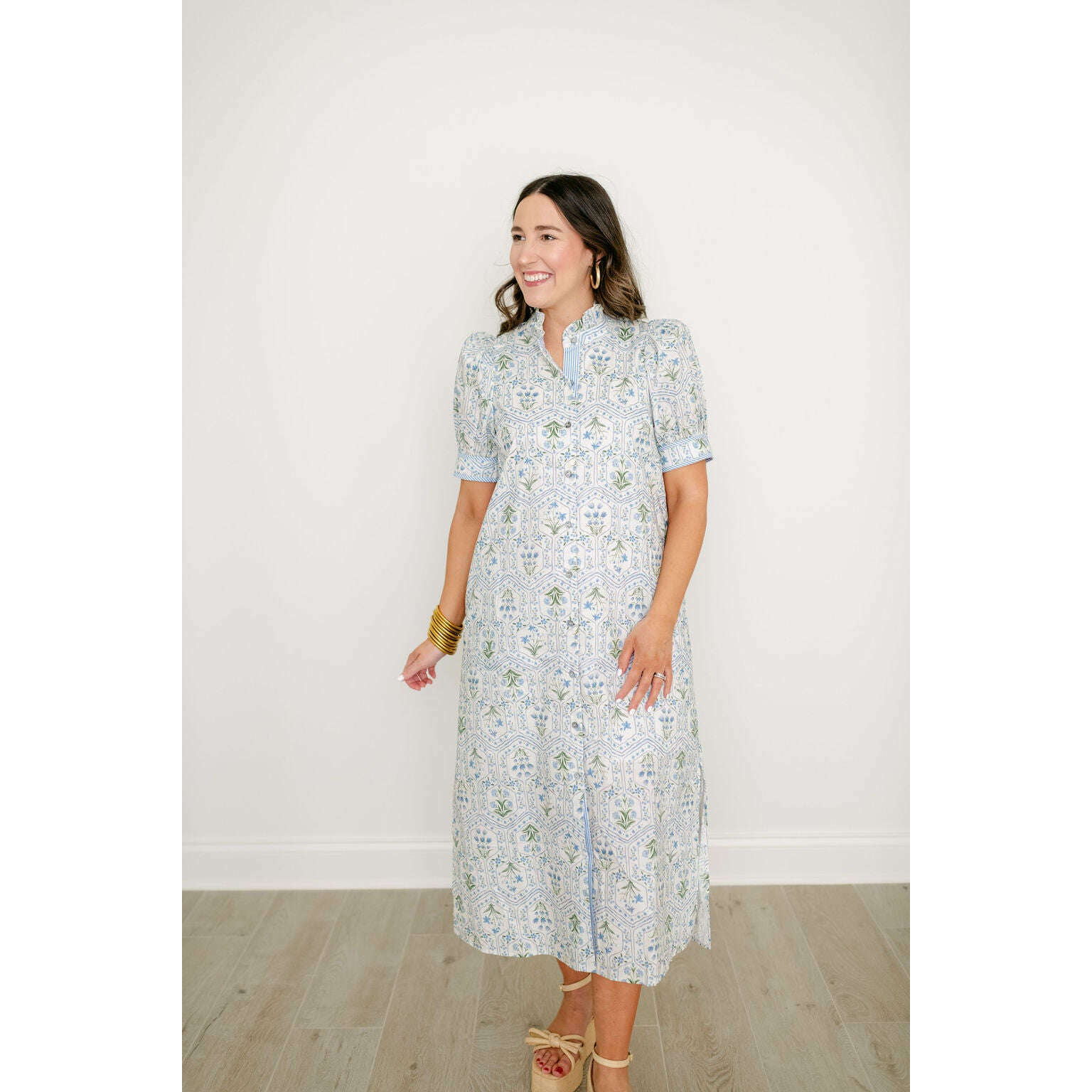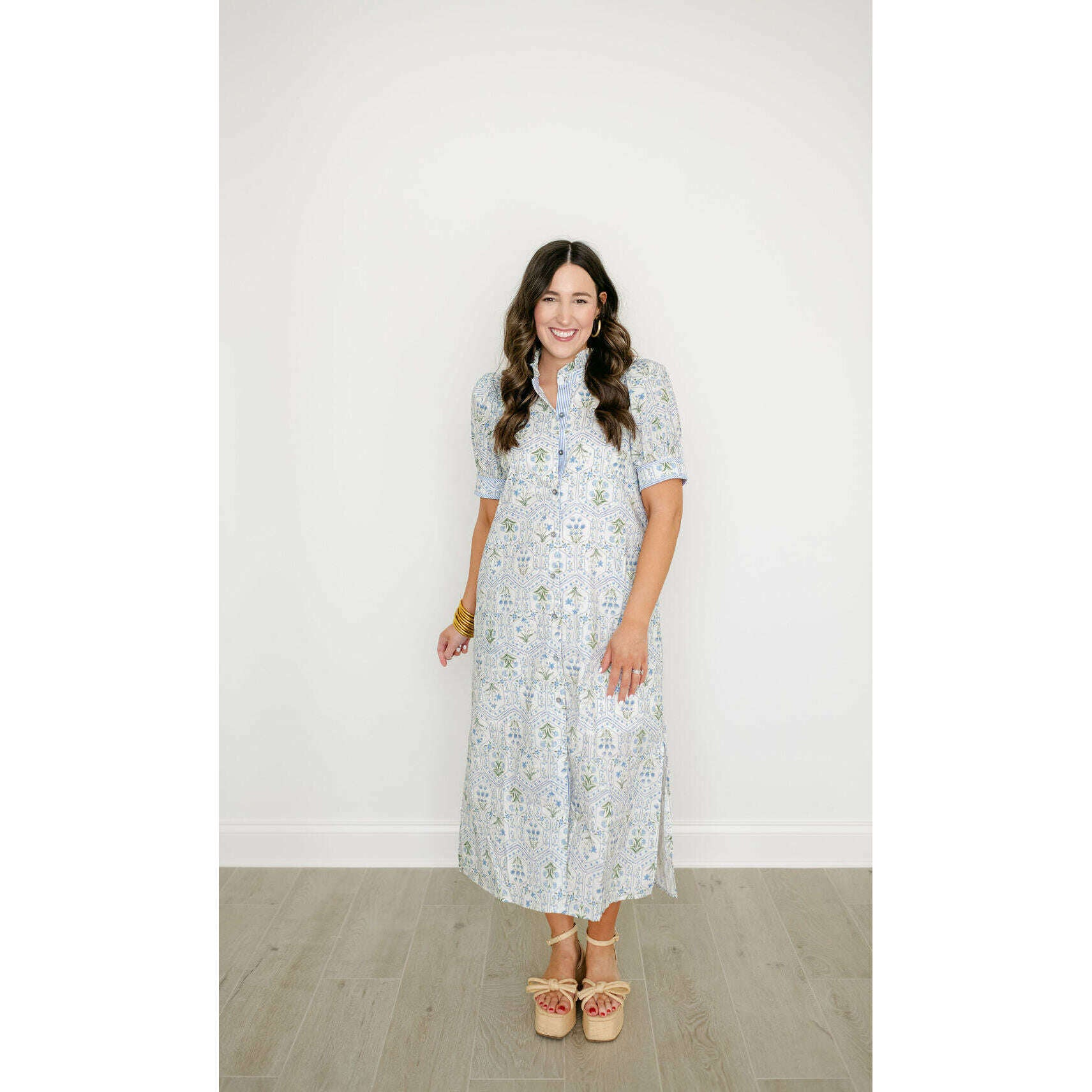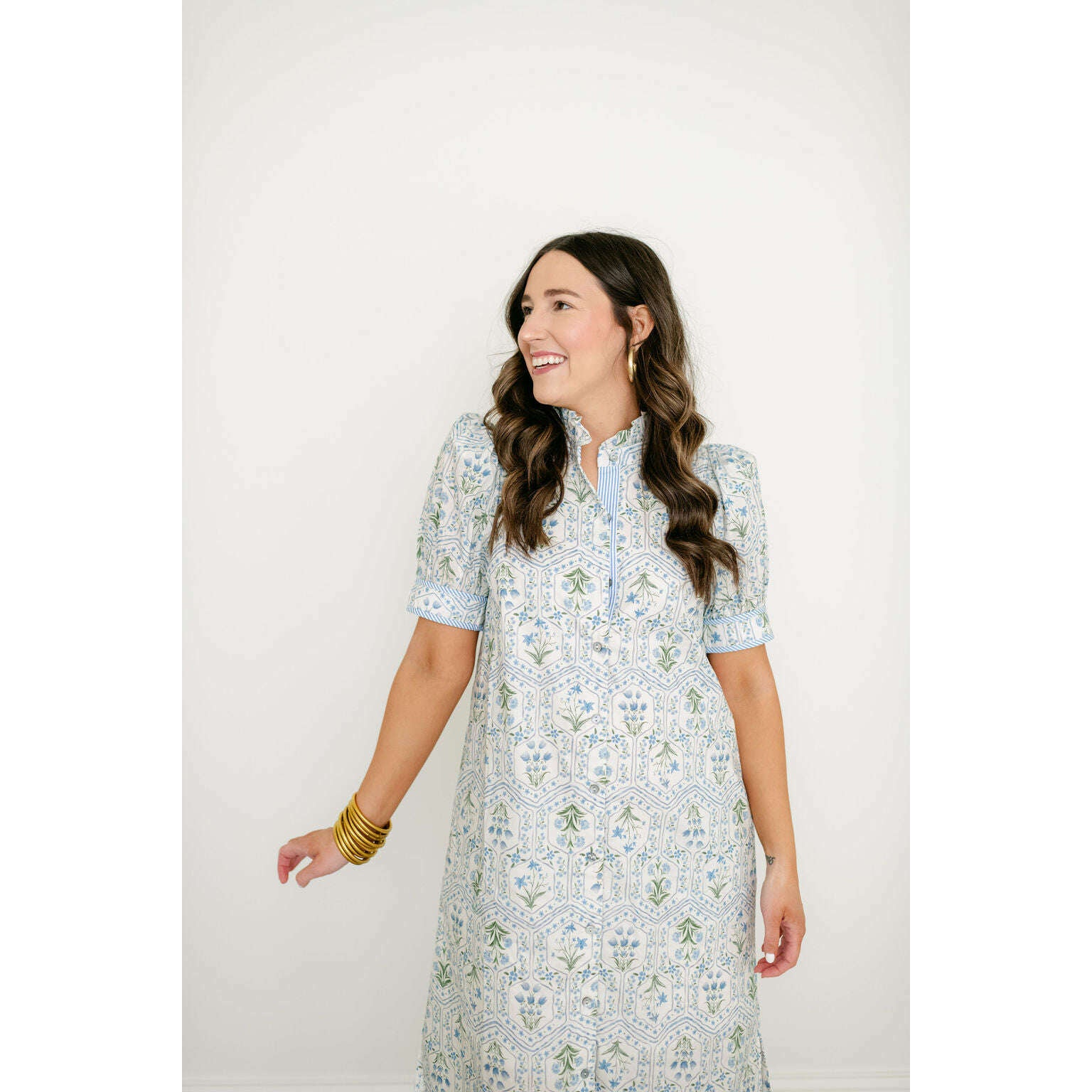 The Entro Light Blue Floral Block Print Midi Dress combines a charming floral design with delicate stripe detailing, making it the perfect spring essential. This beautifully fitted piece brings effortless style and elegance to any seasonal wardrobe.