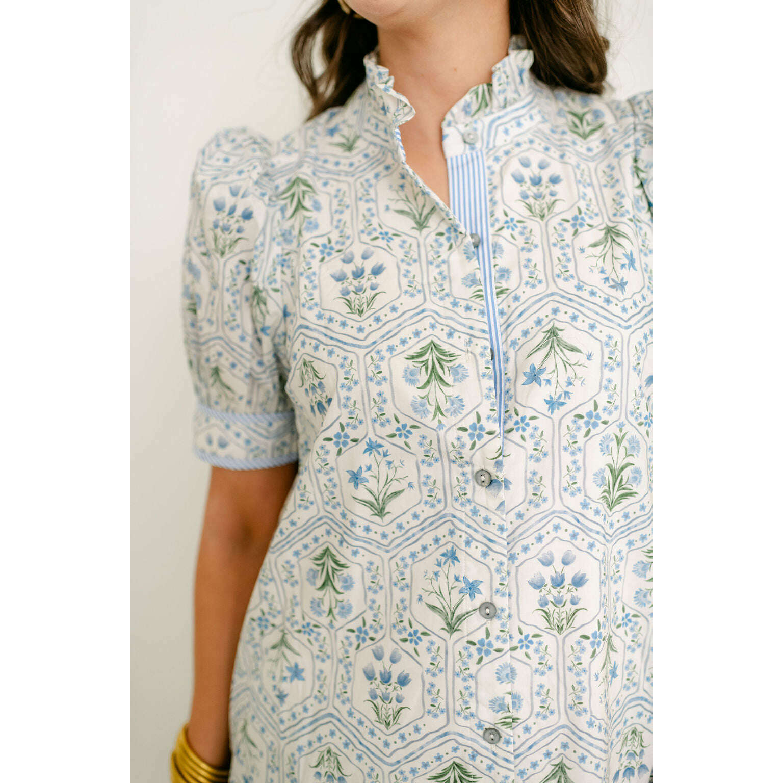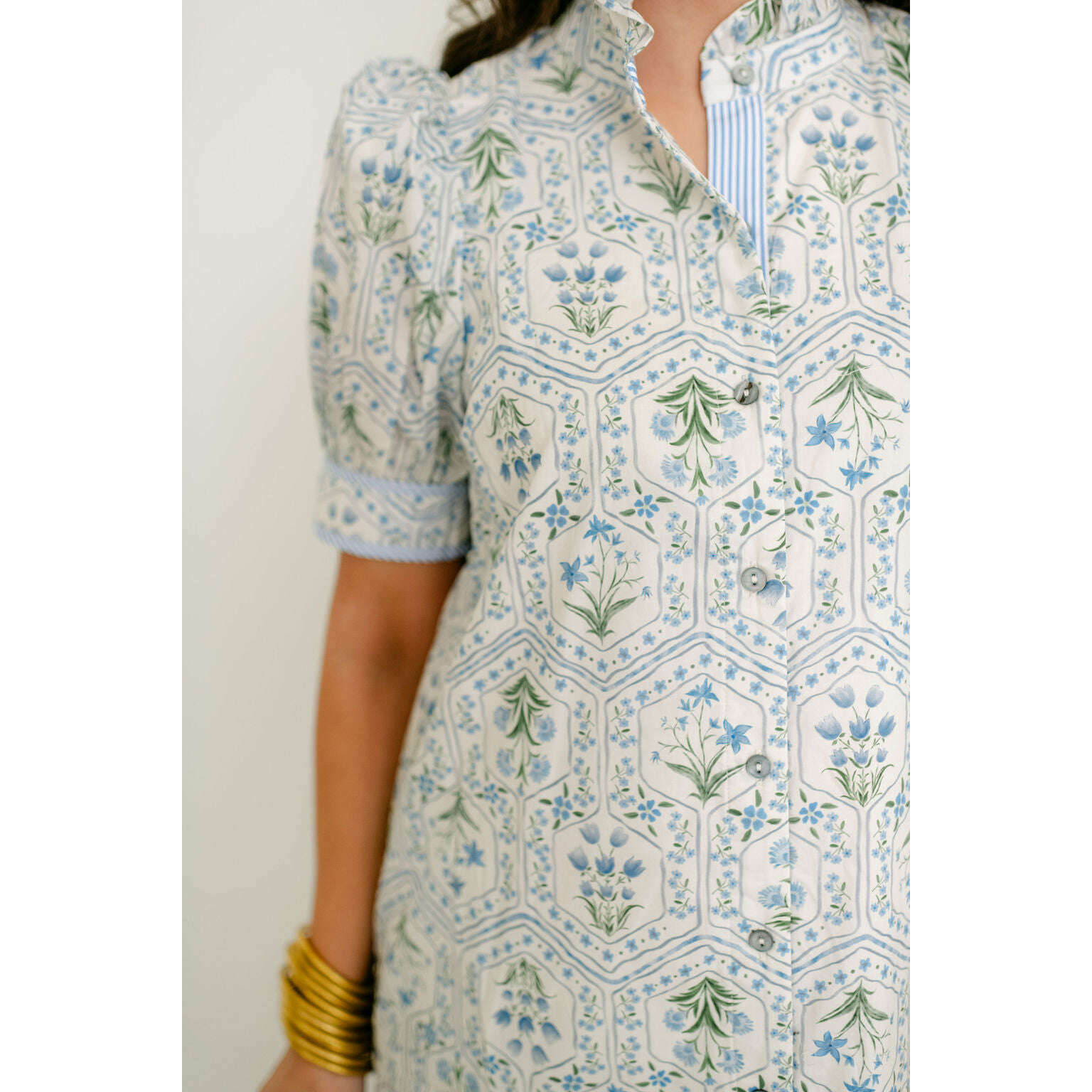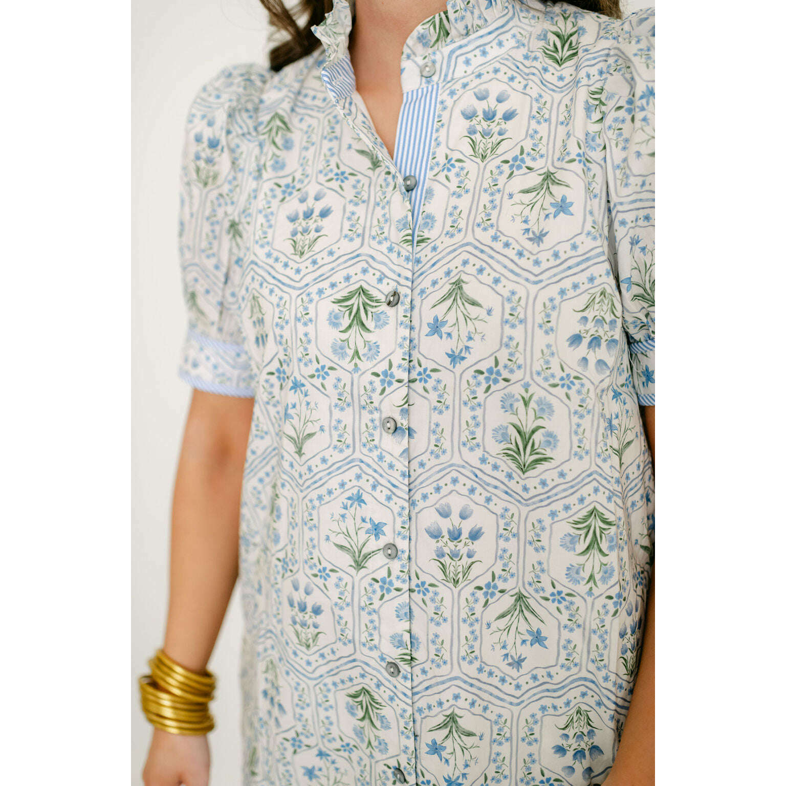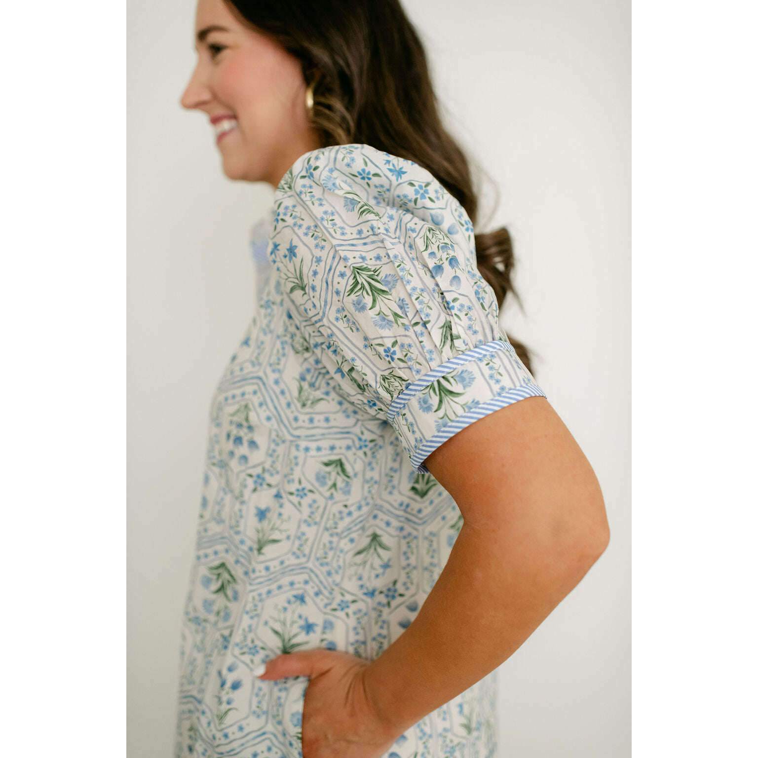 The Entro Light Blue Floral Block Print Midi Dress combines a charming floral design with delicate stripe detailing, making it the perfect spring essential. This beautifully fitted piece brings effortless style and elegance to any seasonal wardrobe.