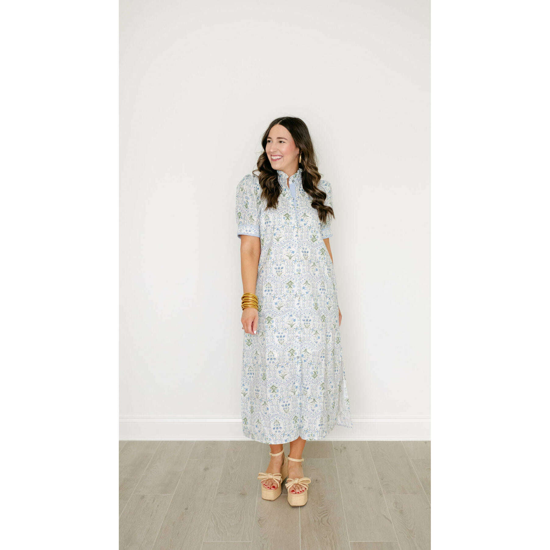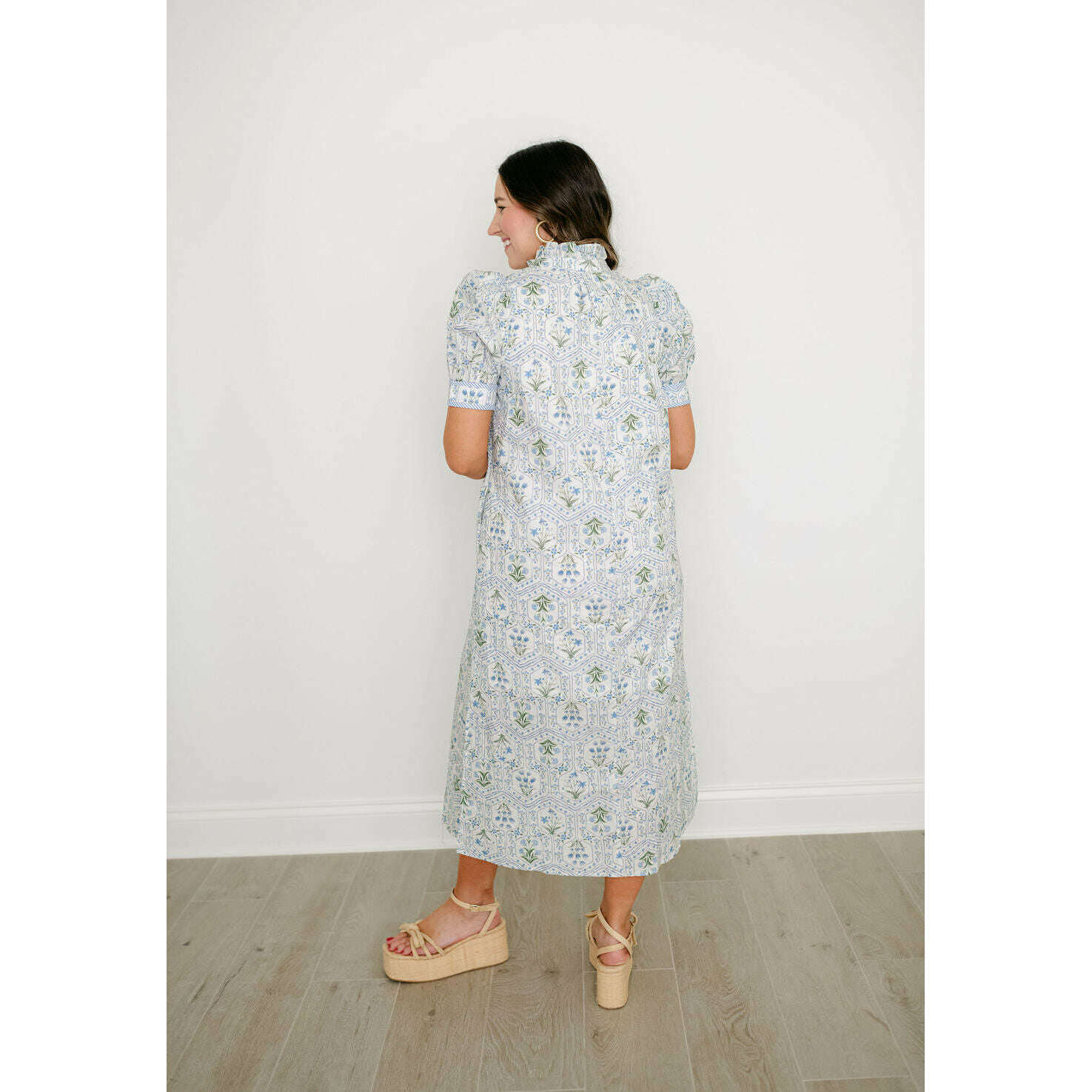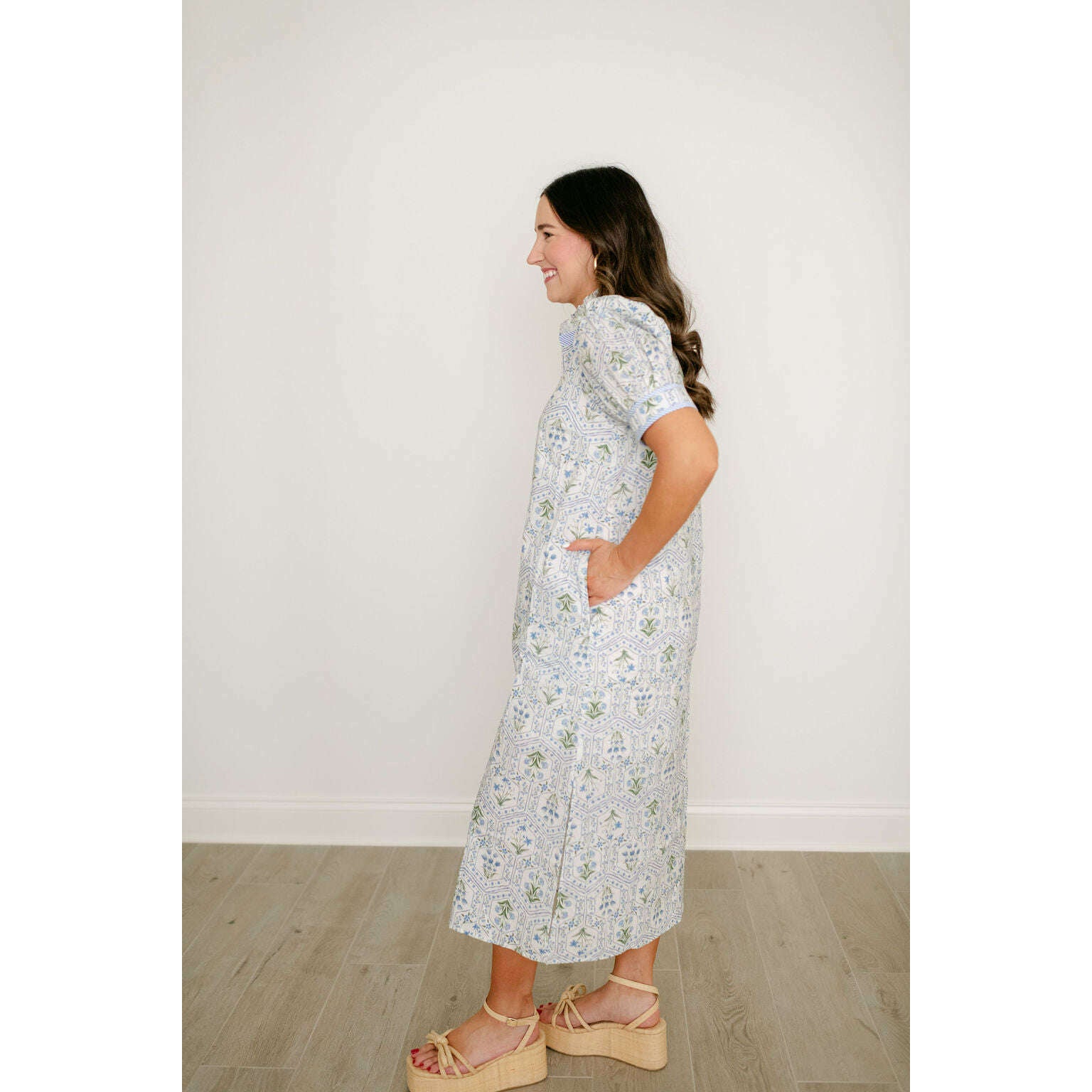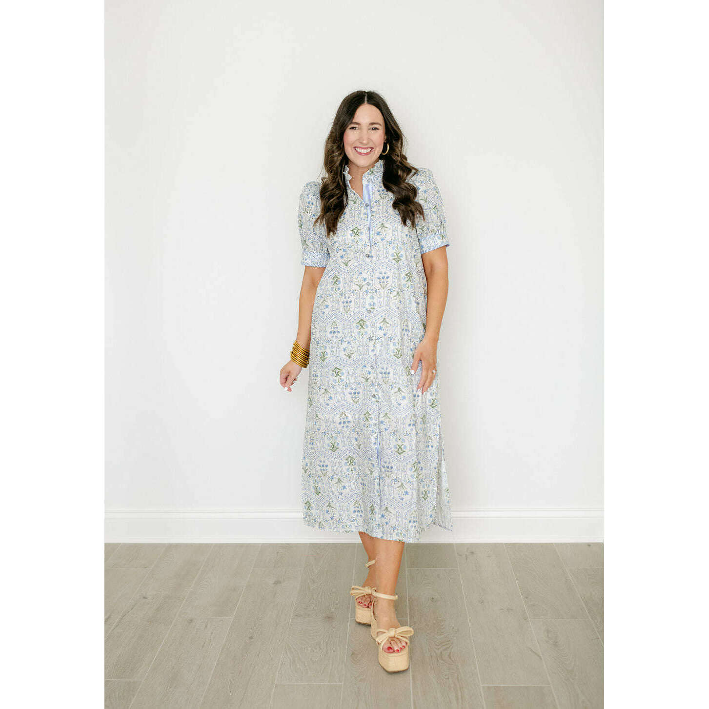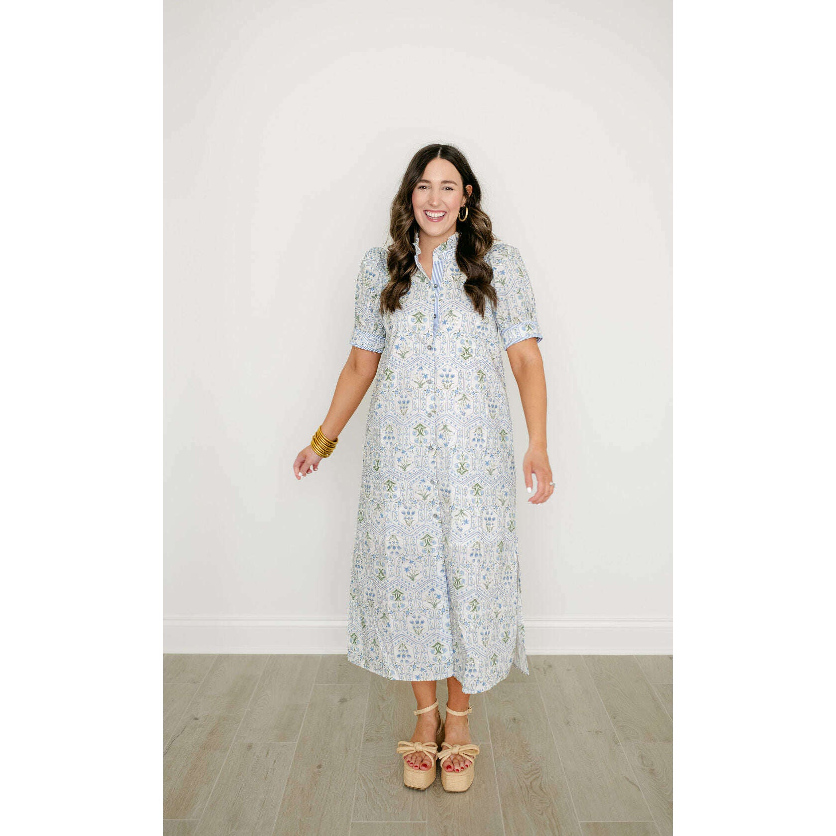 The Entro Light Blue Floral Block Print Midi Dress combines a charming floral design with delicate stripe detailing, making it the perfect spring essential. This beautifully fitted piece brings effortless style and elegance to any seasonal wardrobe.