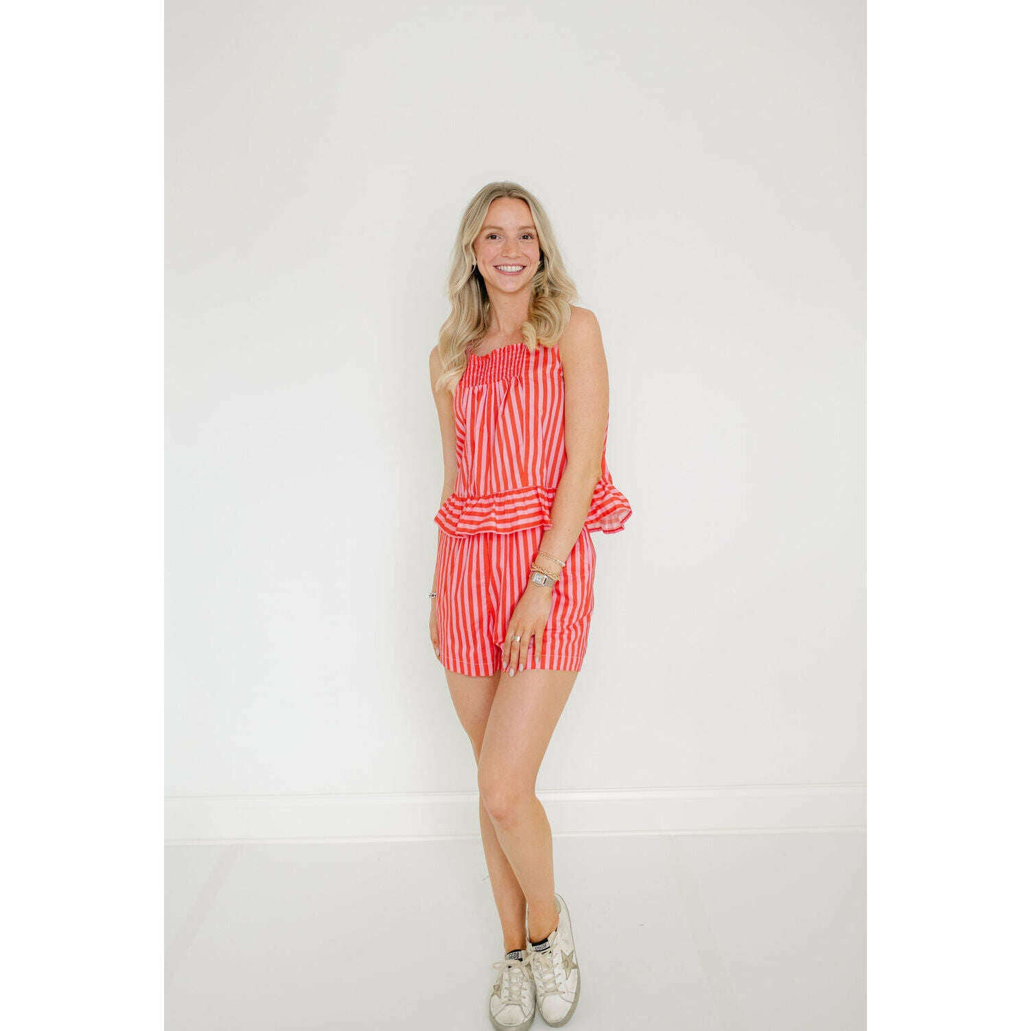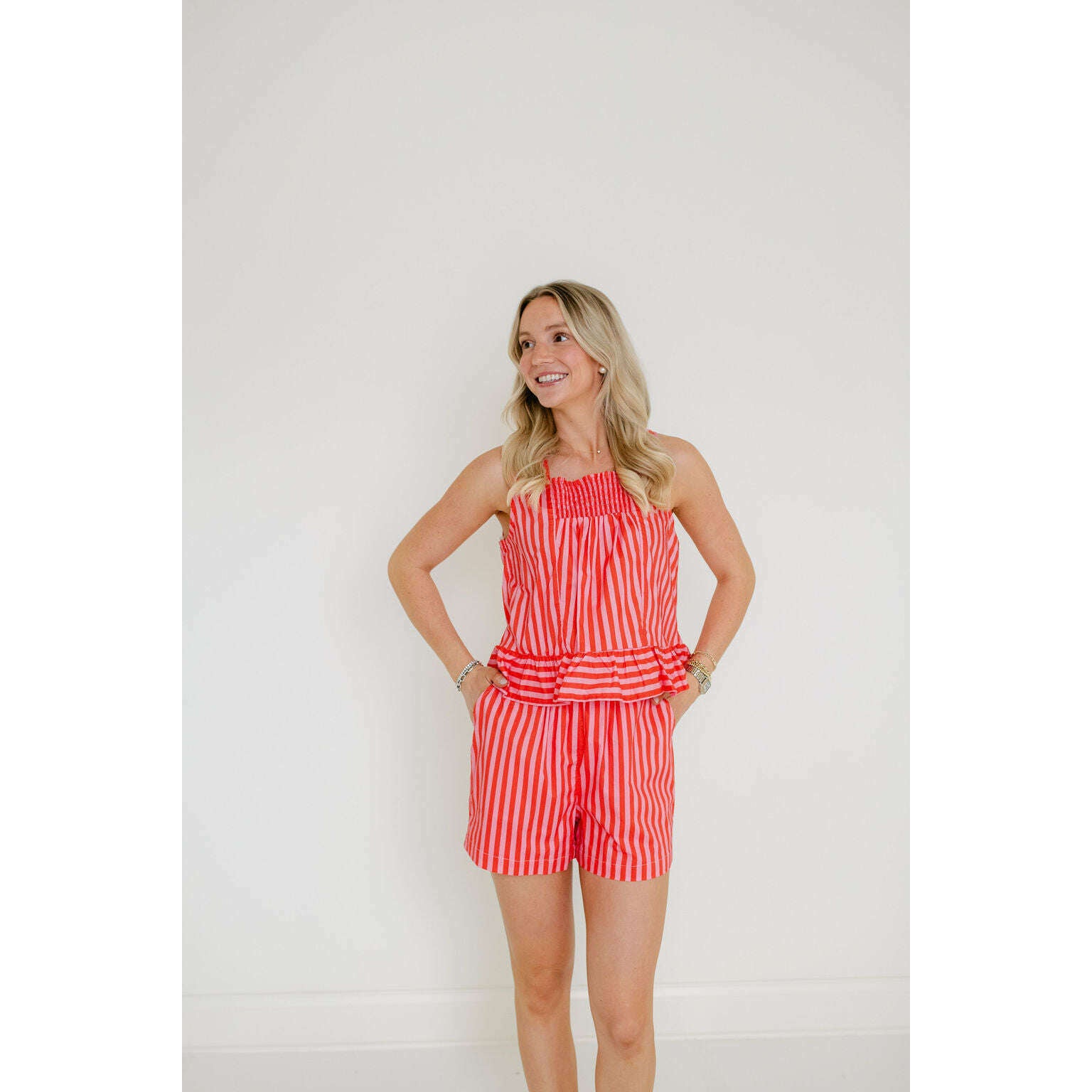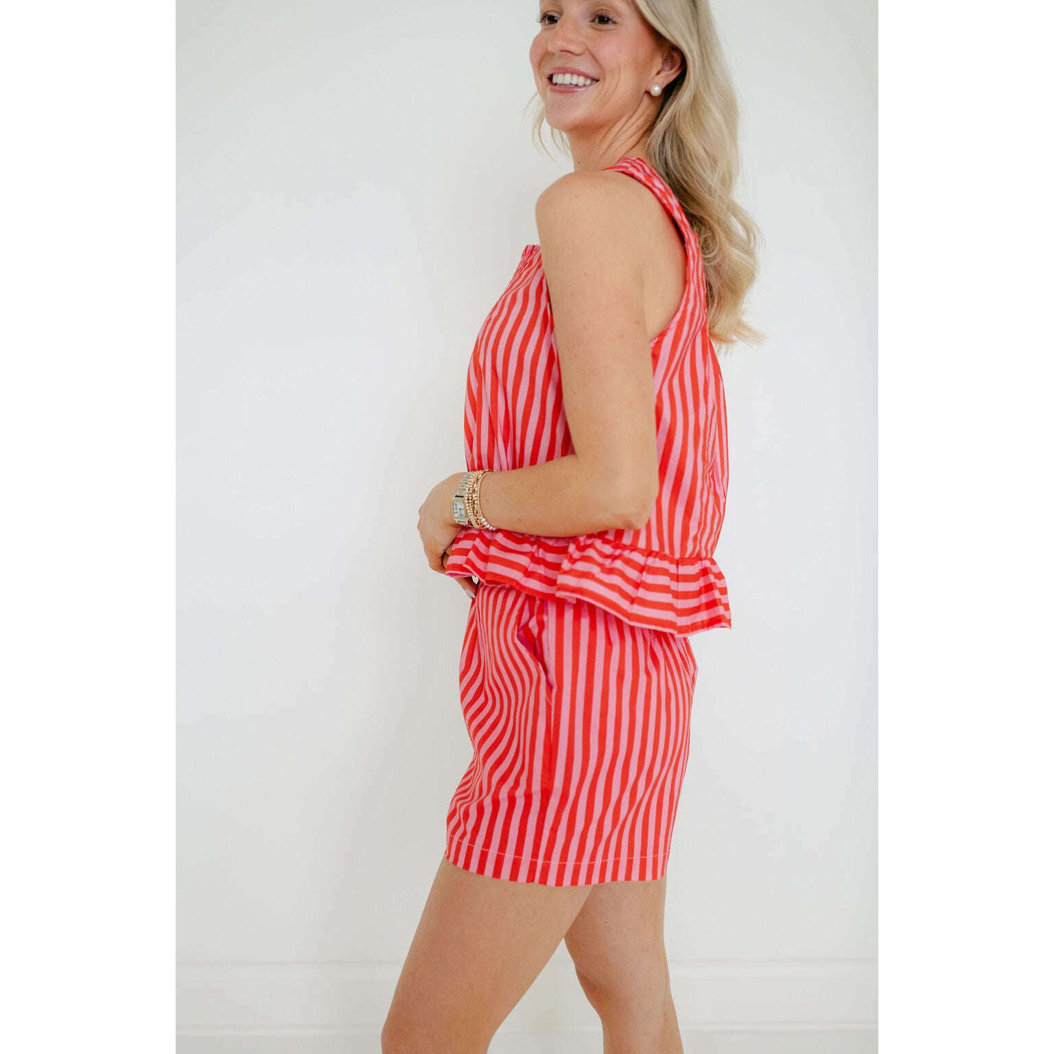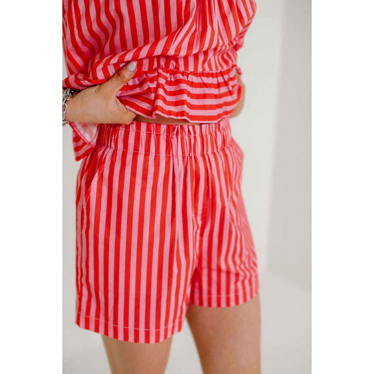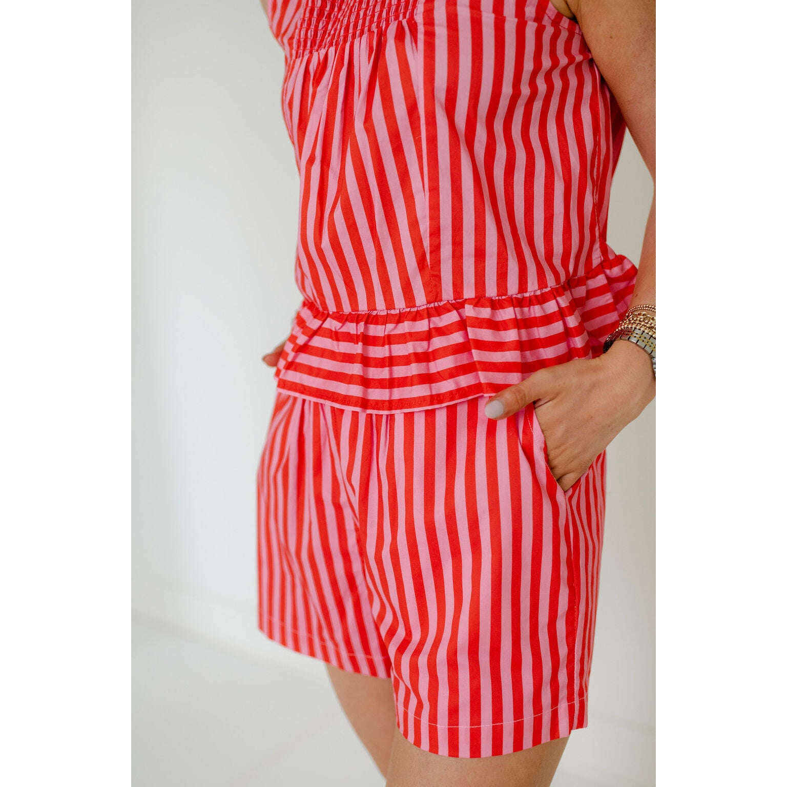 The Entro Pink and Red Stripe Short Set is the perfect addition to your warm-weather wardrobe with its charming striped design. This adorable set brings effortless style to your spring and summer days with its playful color combination and comfortable fit.