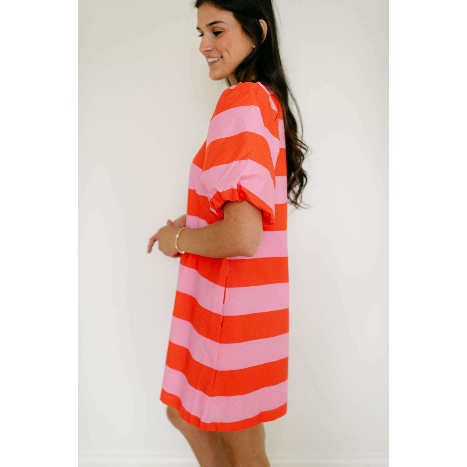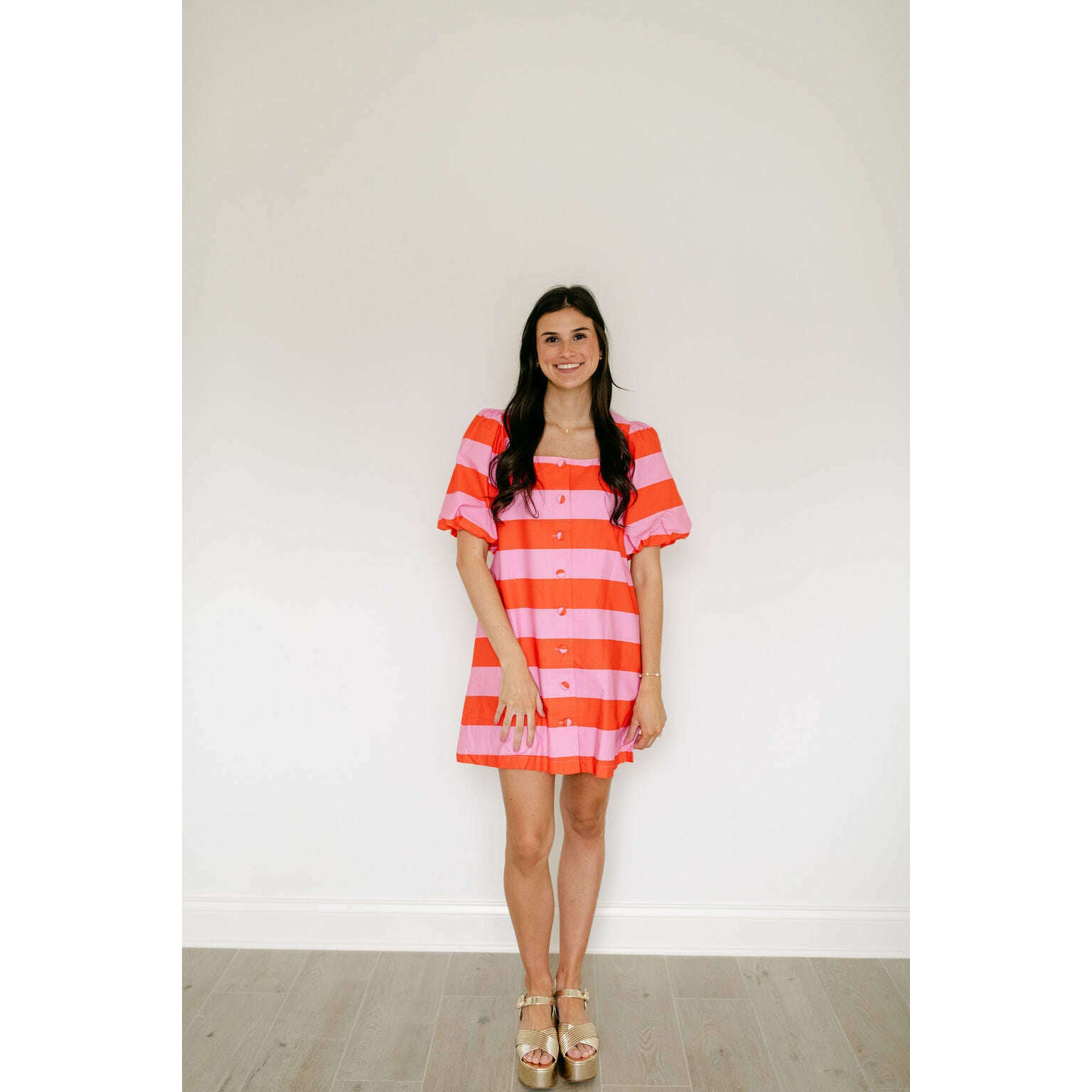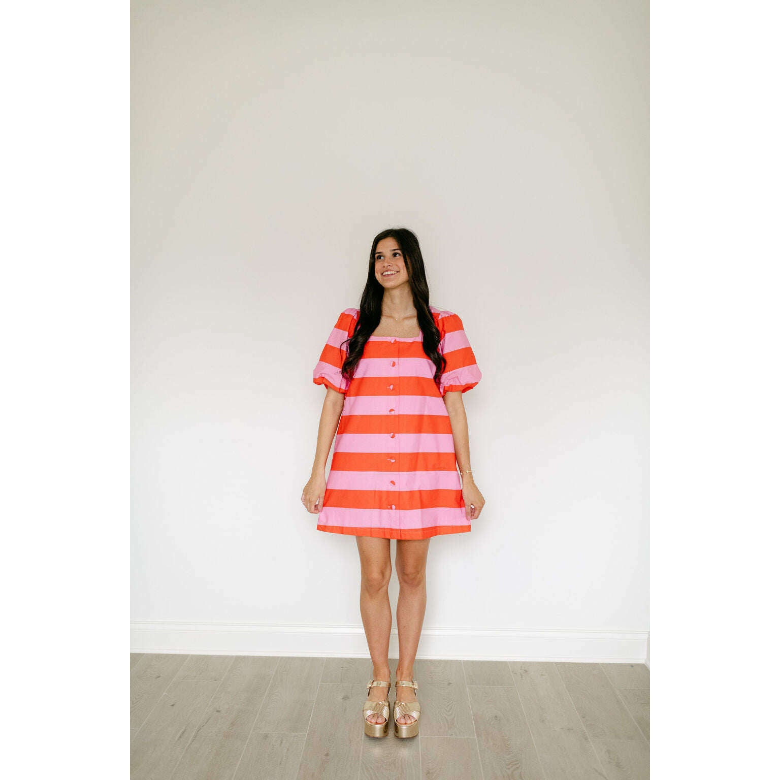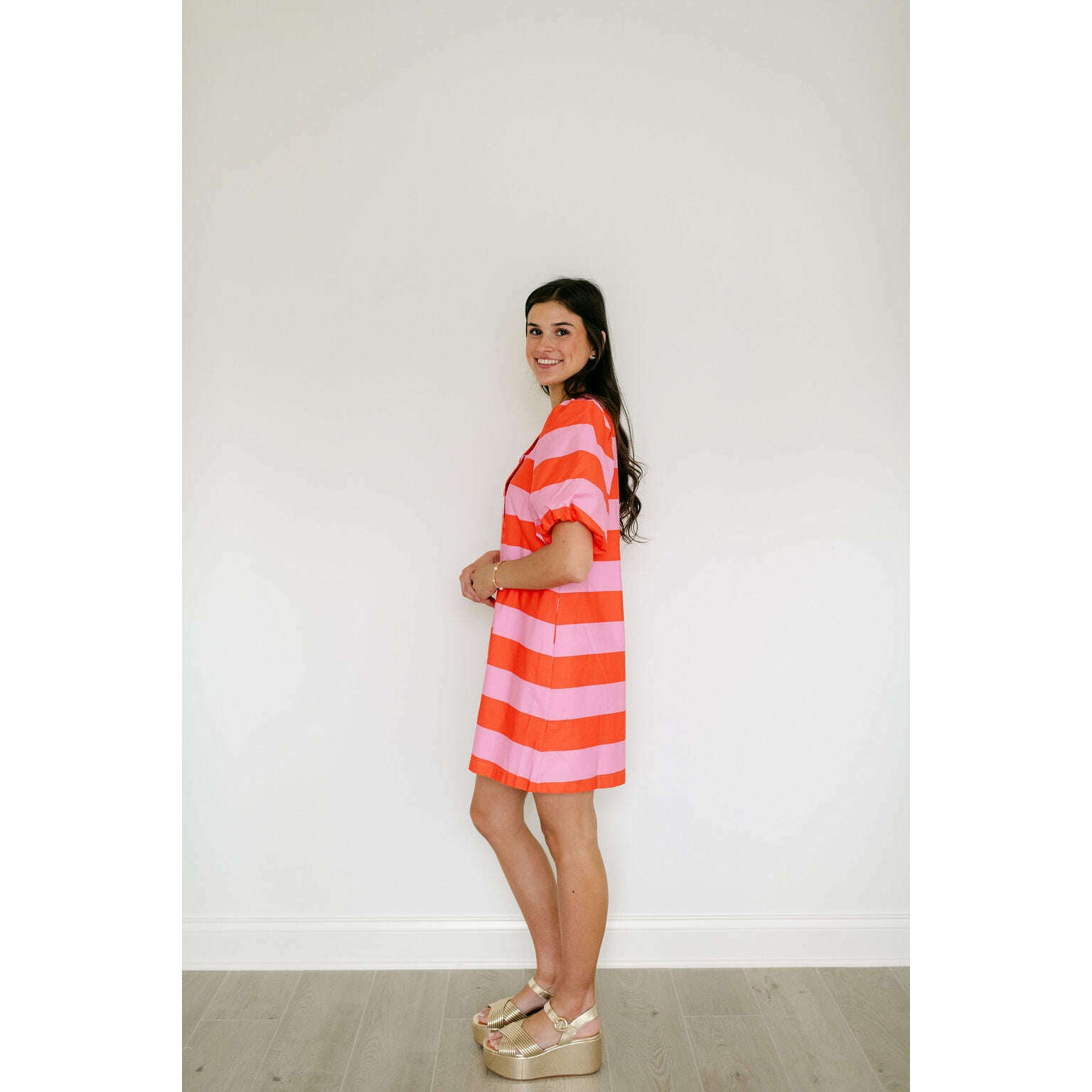 The Entro Pink Stripe Button Front Mini Dress combines charming stripe detailing with a flattering button-front silhouette that's perfect for spring and summer styling. This adorable mini dress is an easy go-to piece for creating effortless, seasonal looks.