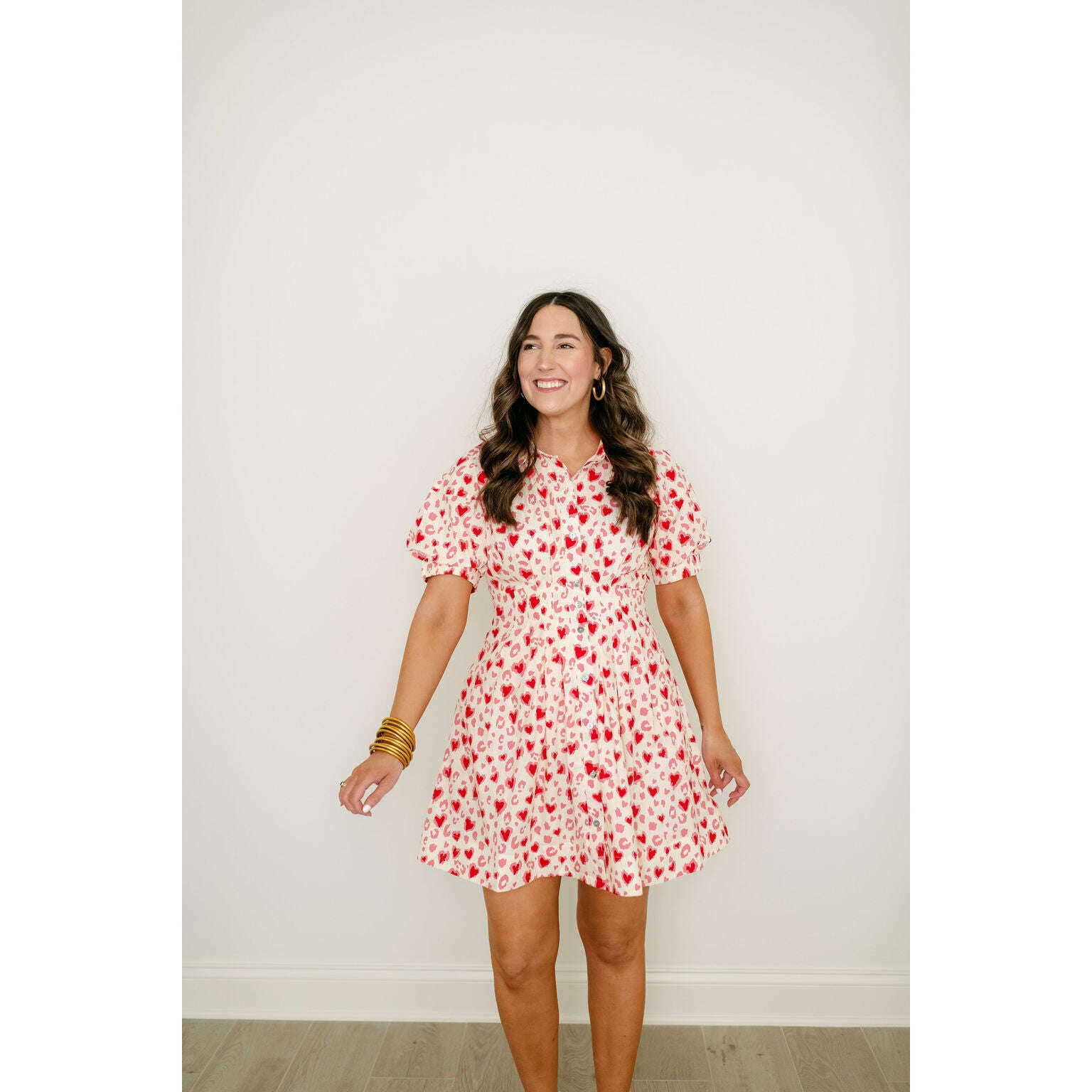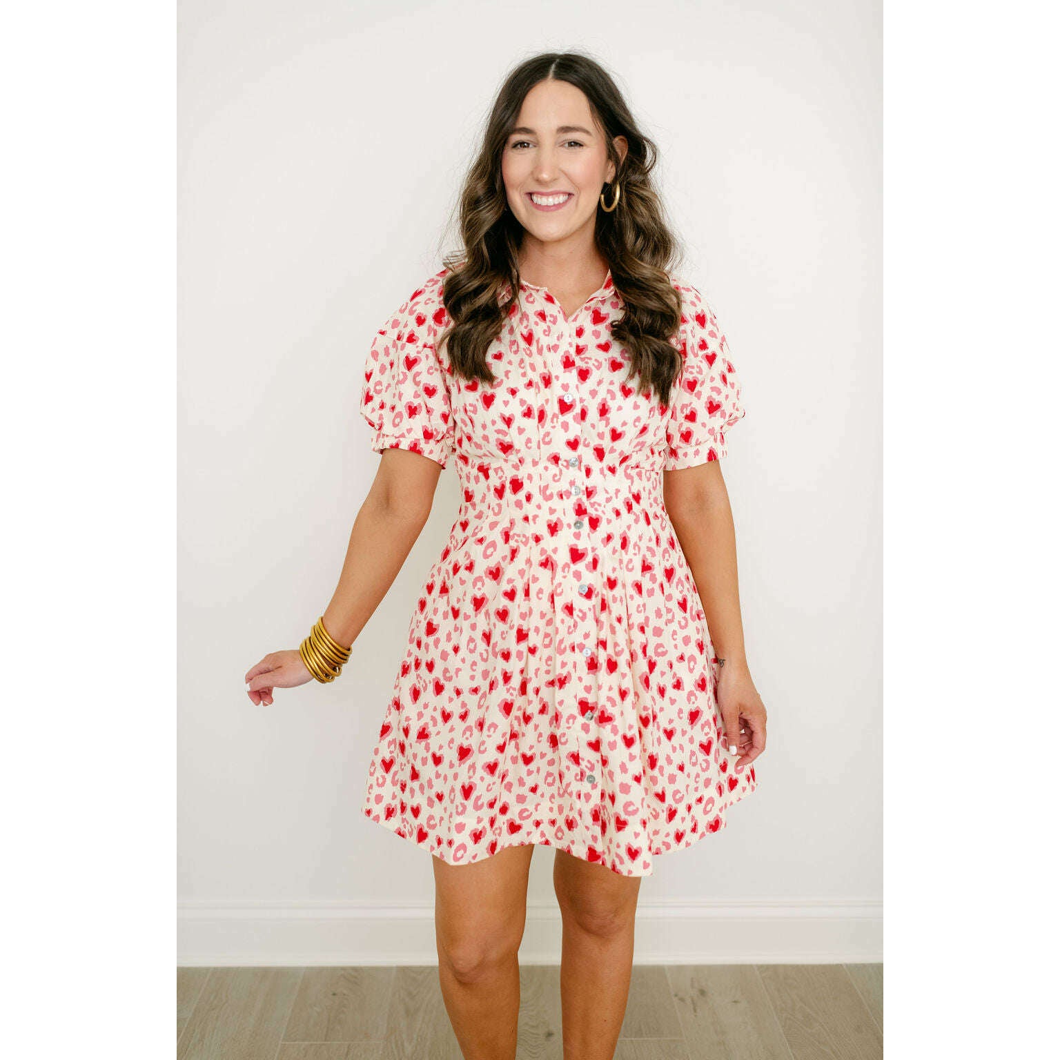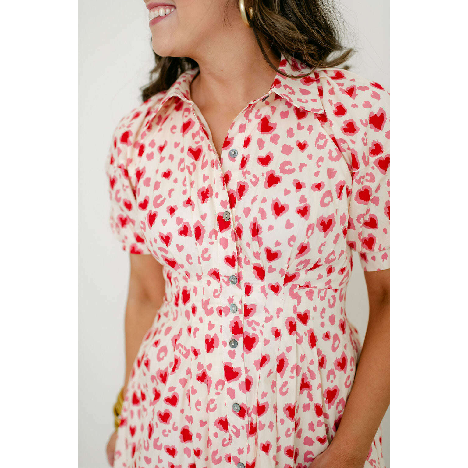 The Entro Red and Pink Heart Cinched Waist Dress is the perfect Valentine's Day pick with its playful heart pattern and flattering cinched waist design. This adorable dress combines fun style with a flattering silhouette, making it an instant favorite for the season.