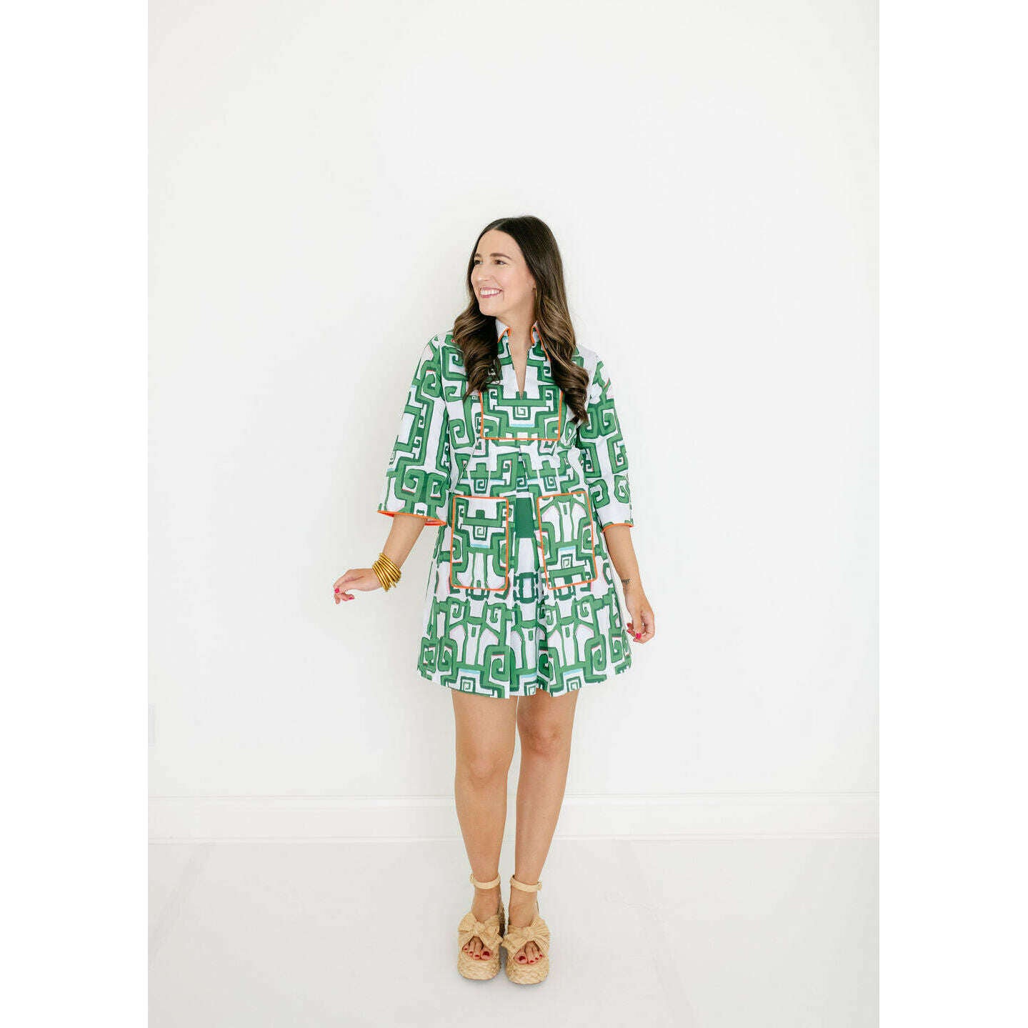 - Loose fit caftan with 3/4 length sleeves with front pockets.