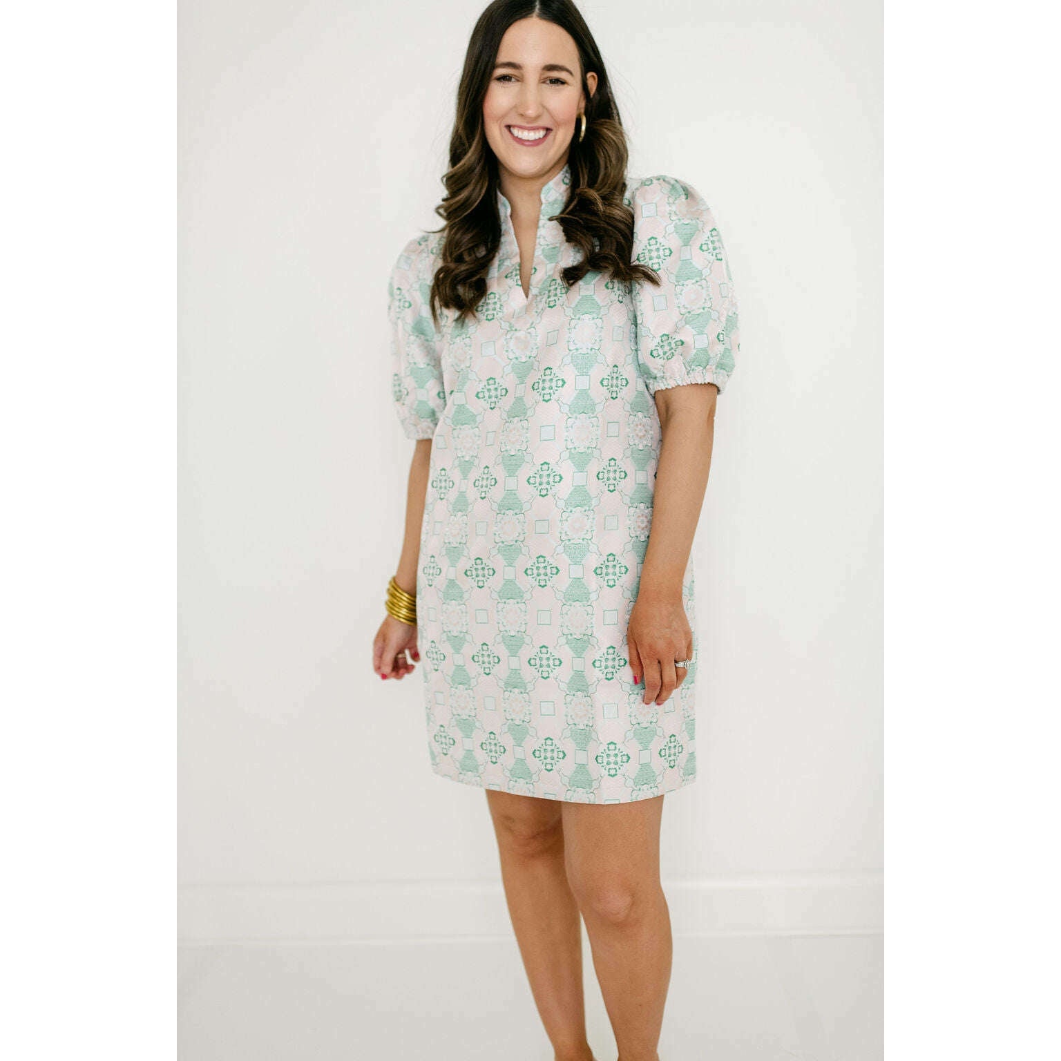 Elevate your event wardrobe with this stunning Jade Melody Tam dress, featuring an exquisite antique jacquard print that commands attention. The sophisticated V-neck silhouette paired with a distinctive collar creates an elegant look perfect for weddings, galas, and special occasions. This versatile piece effortlessly transitions from celebration to celebration with timeless style and refined detail.\