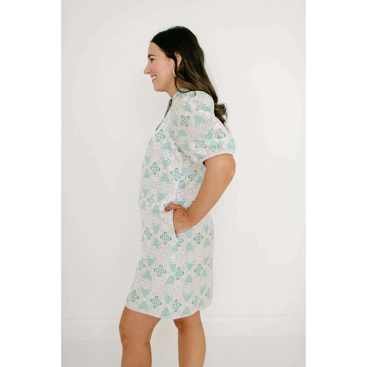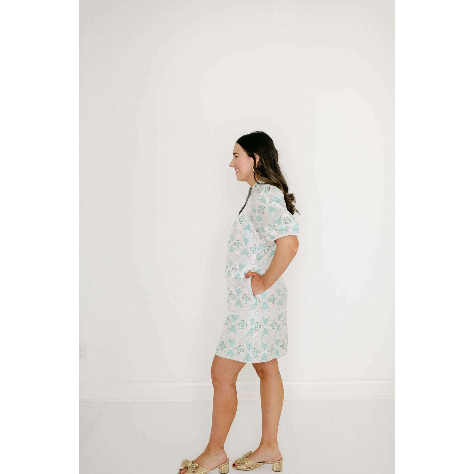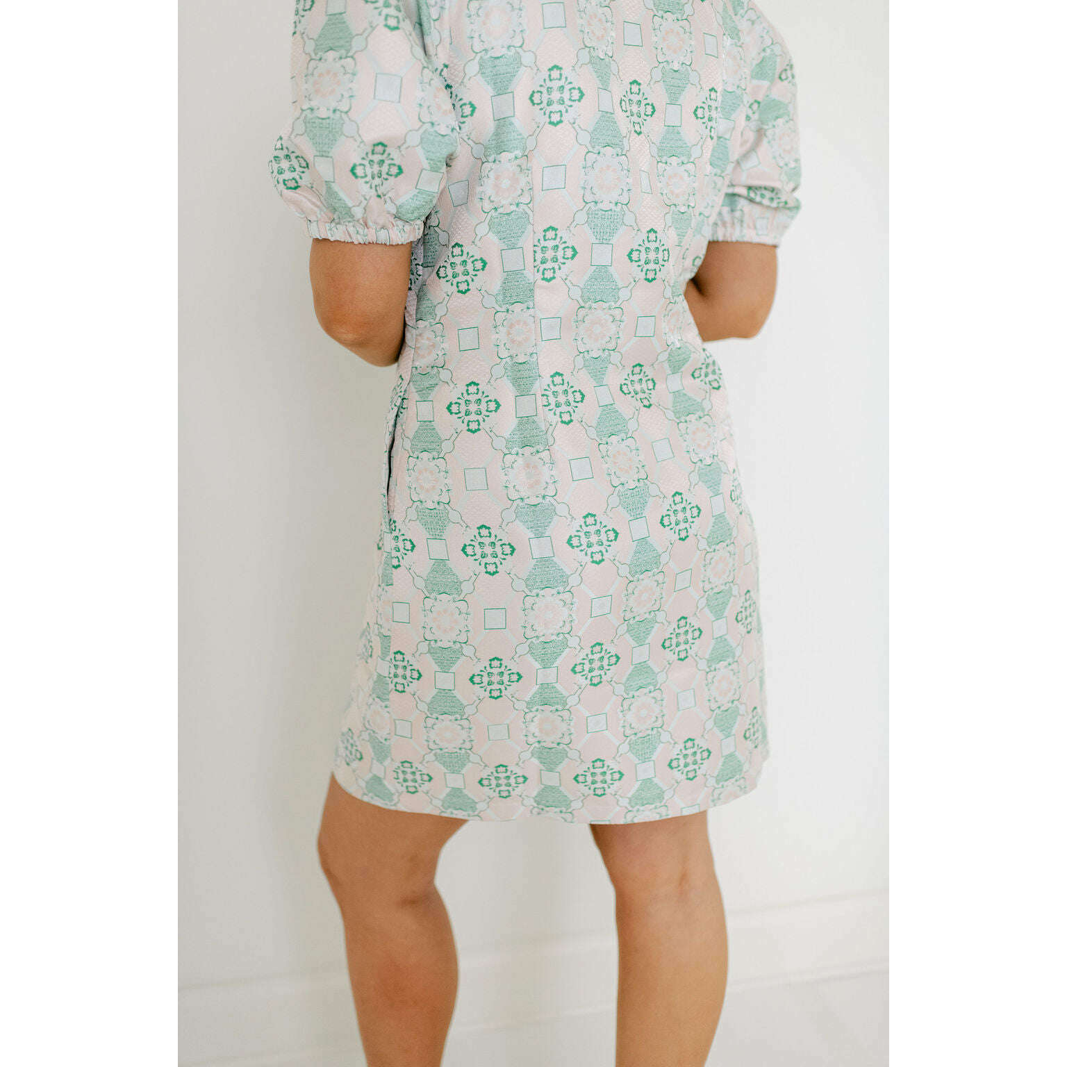 Jade Melody Tam Antique Jacquard Collar V-Neck Dress