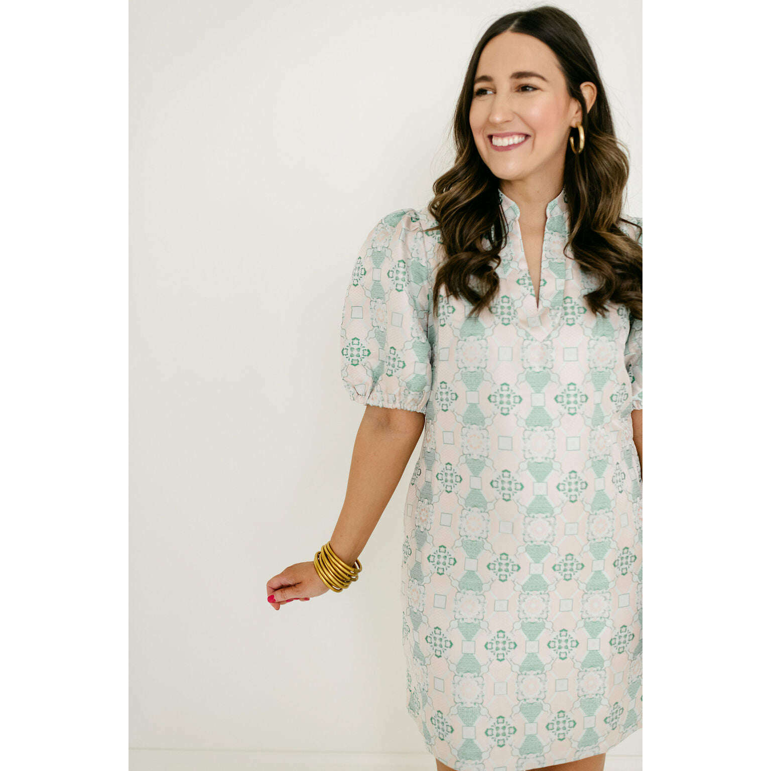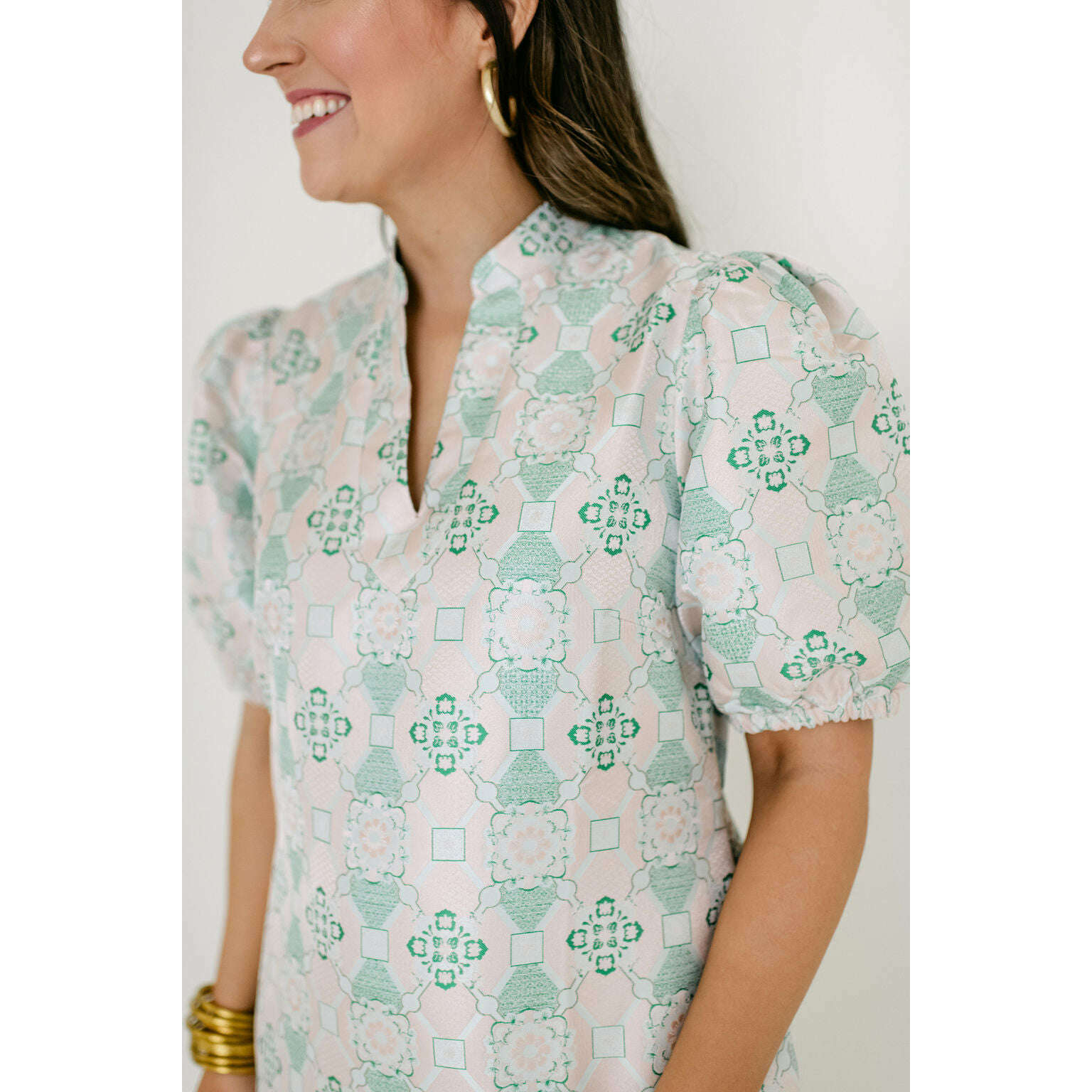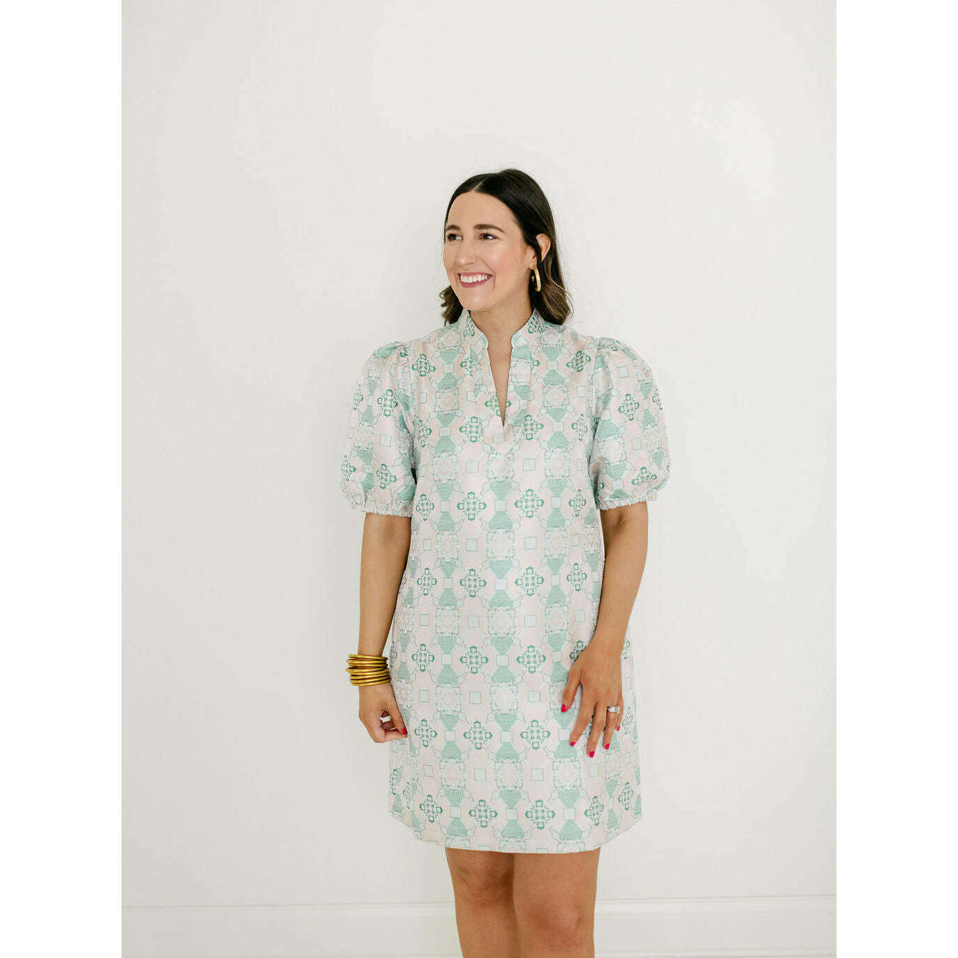 Jade Melody Tam Antique Jacquard Collar V-Neck Dress