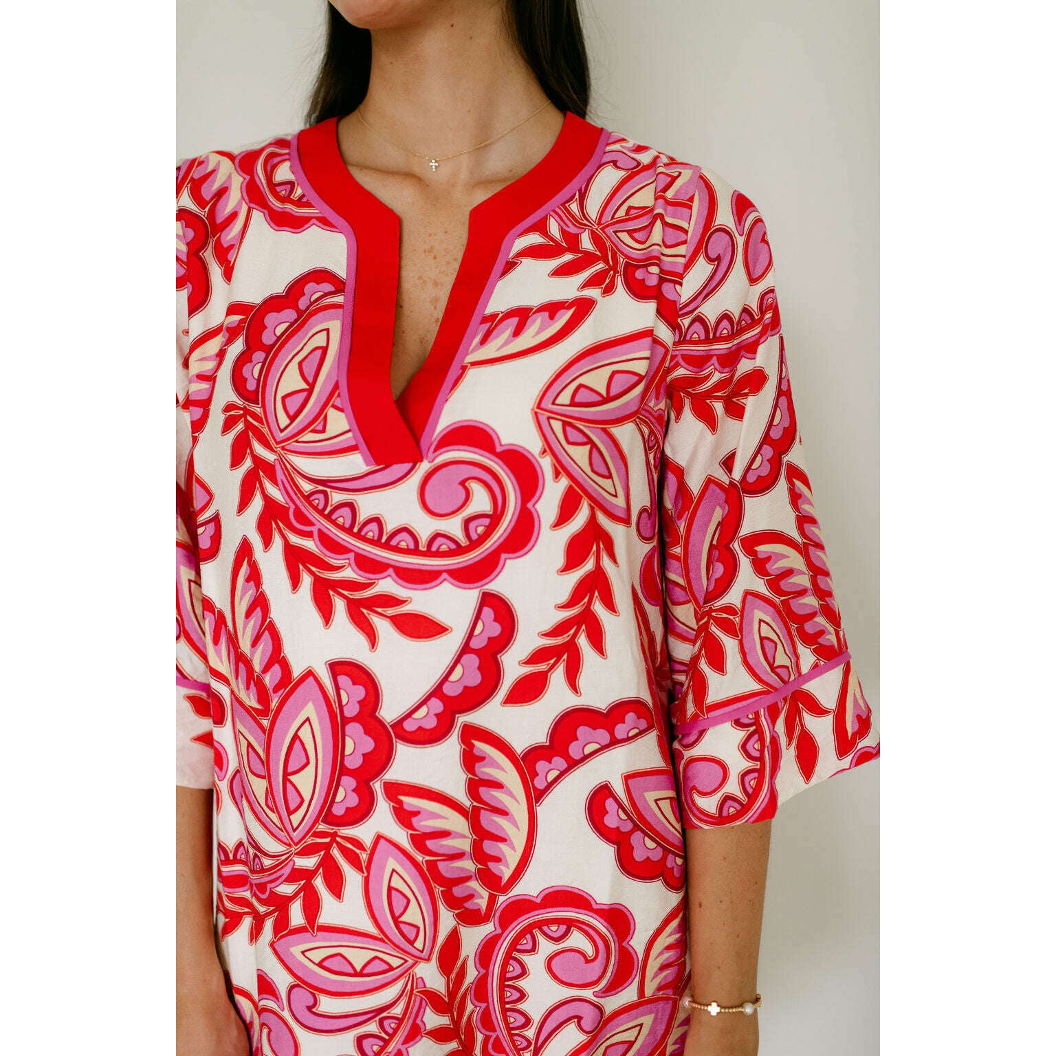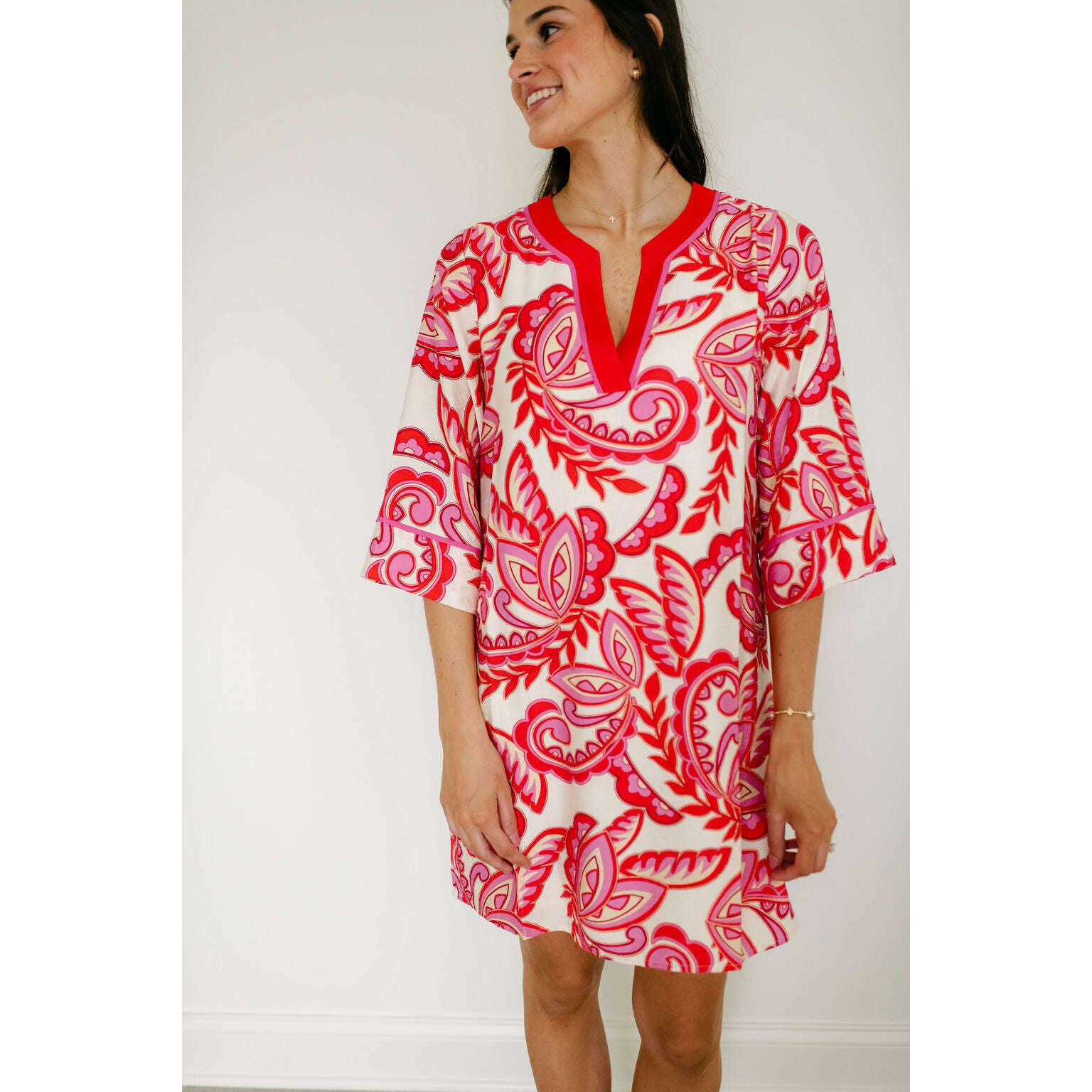 Jade Melody Tam Red Paisley Trimmed Tunic Dress
