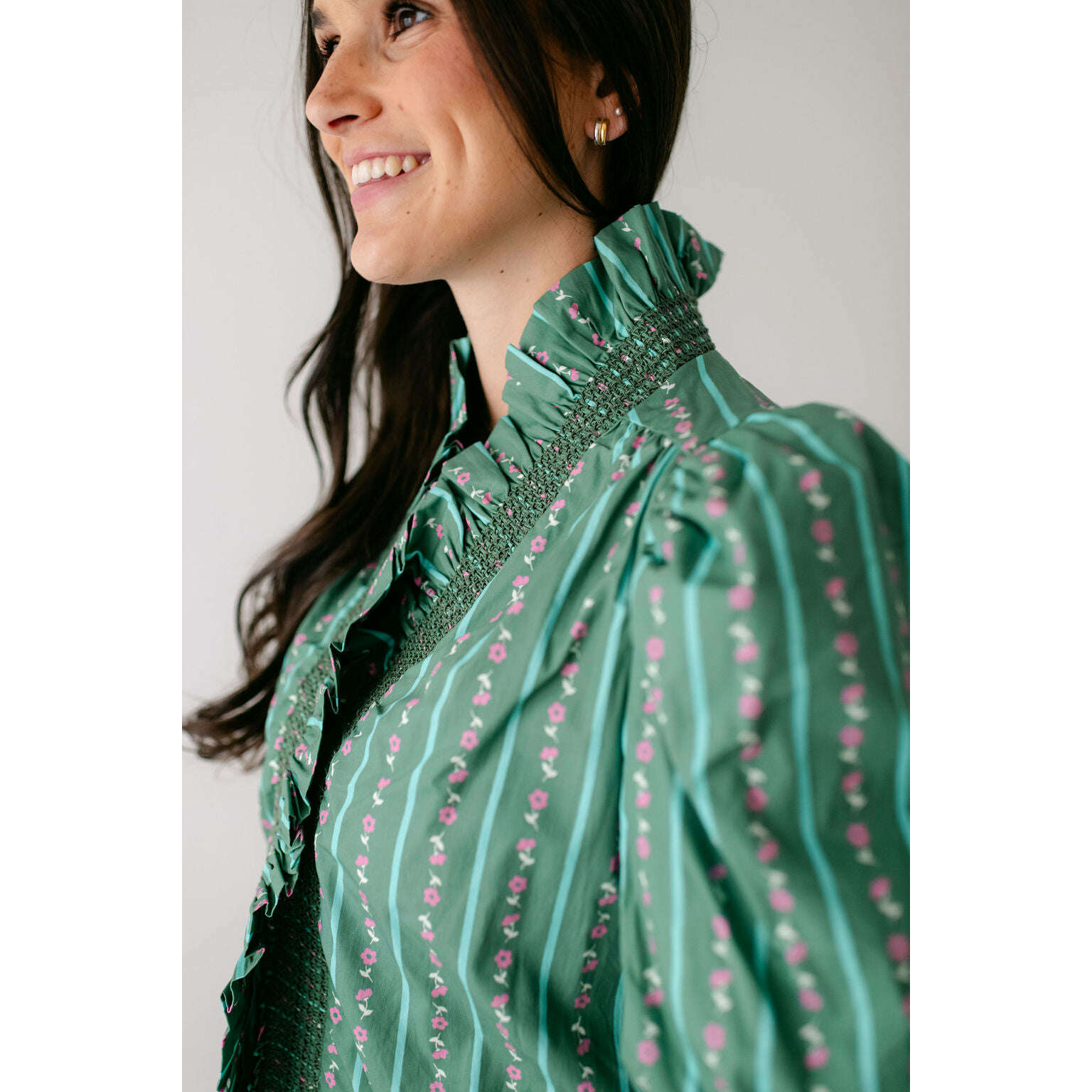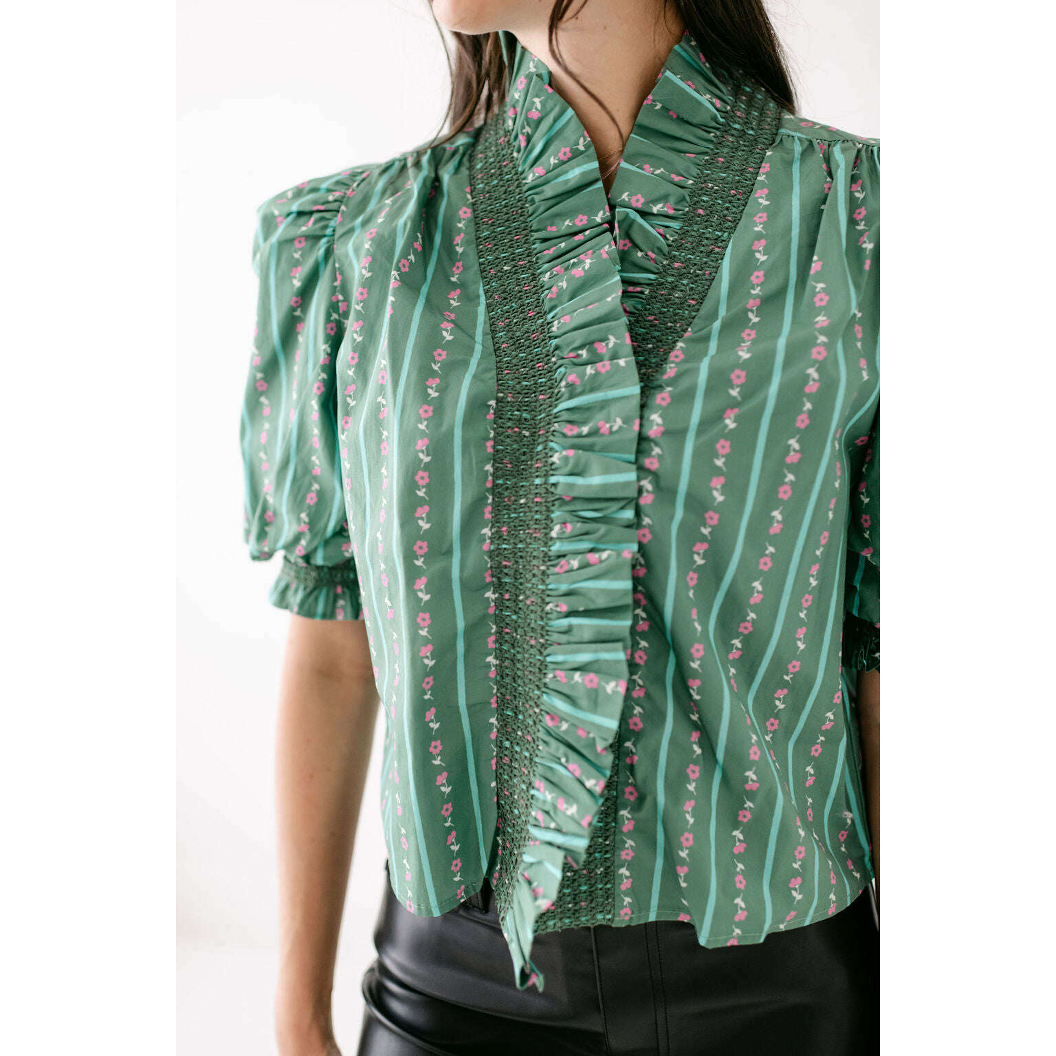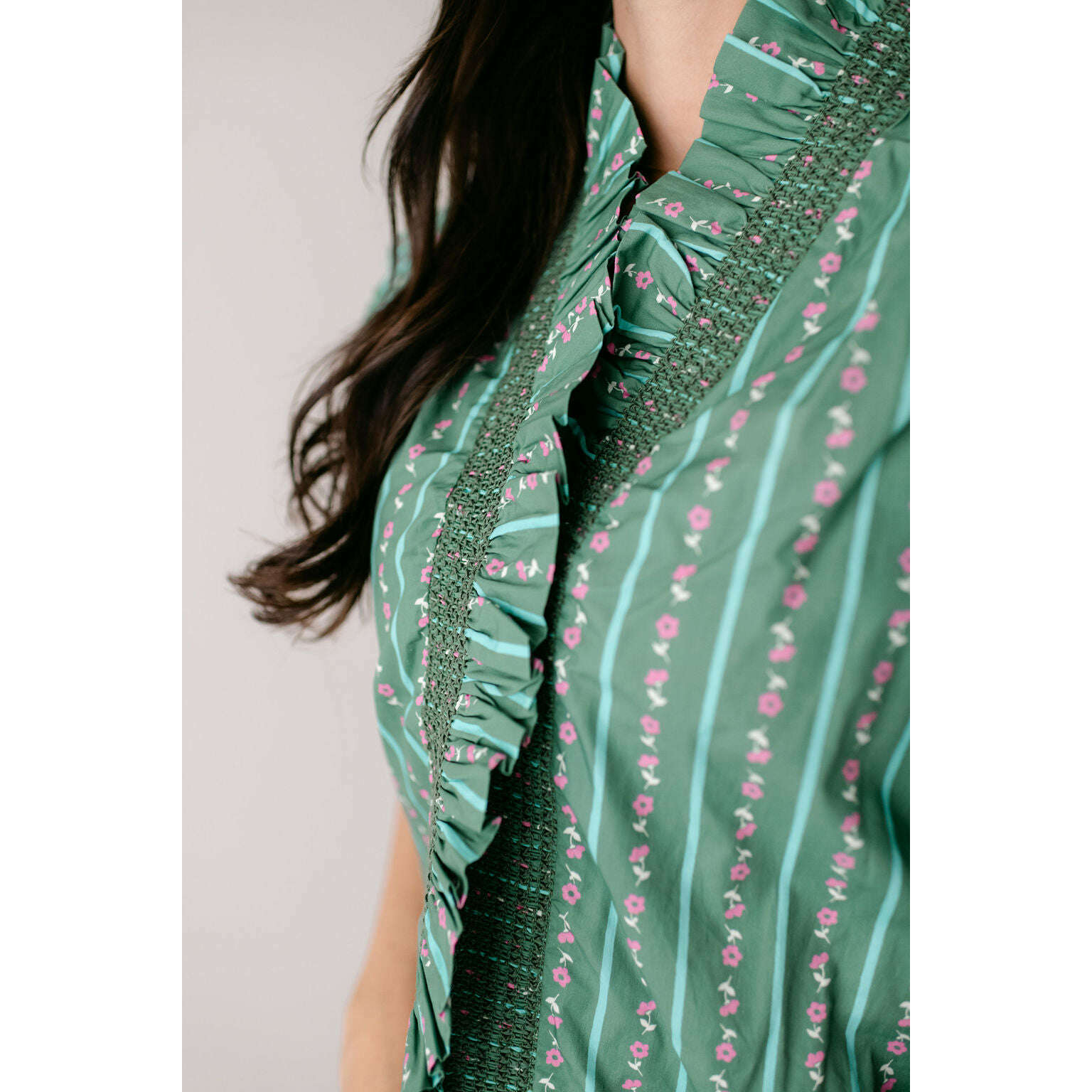 The Karlie Floral Ditzy Stripe Ruffle Top is the must-have piece your closet has been waiting for, featuring an irresistible blend of whimsical florals and crisp stripes. As one of our bestselling tops, it's earned its reputation through its flattering silhouette, delicate ruffle trim, and eye-catching print that turns heads wherever you go. Add this fan-favorite to your collection and discover why so many customers can't get enough of its effortless charm and versatile appeal.