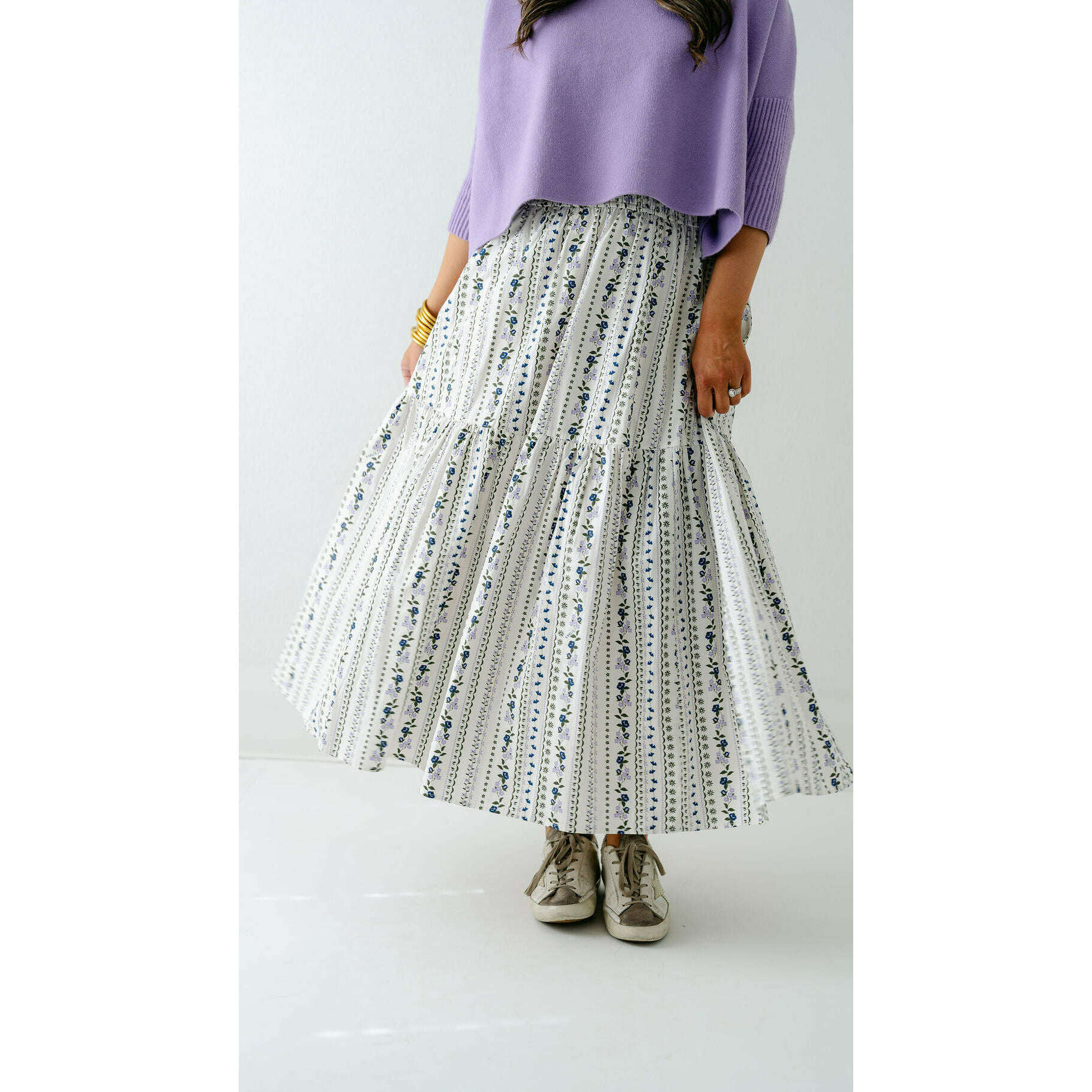 Karlie French Floral Tiered Maxi Skirt