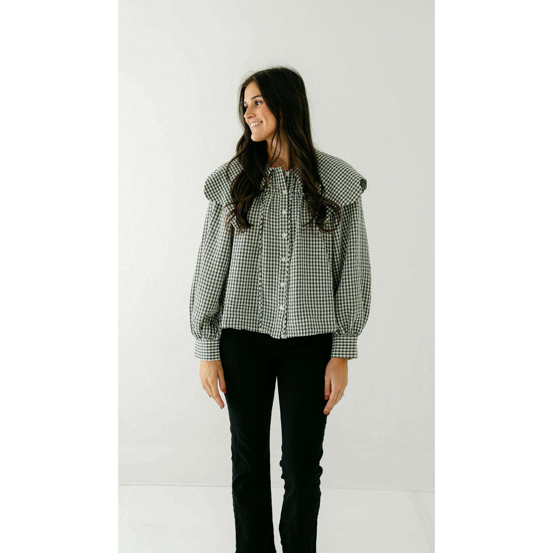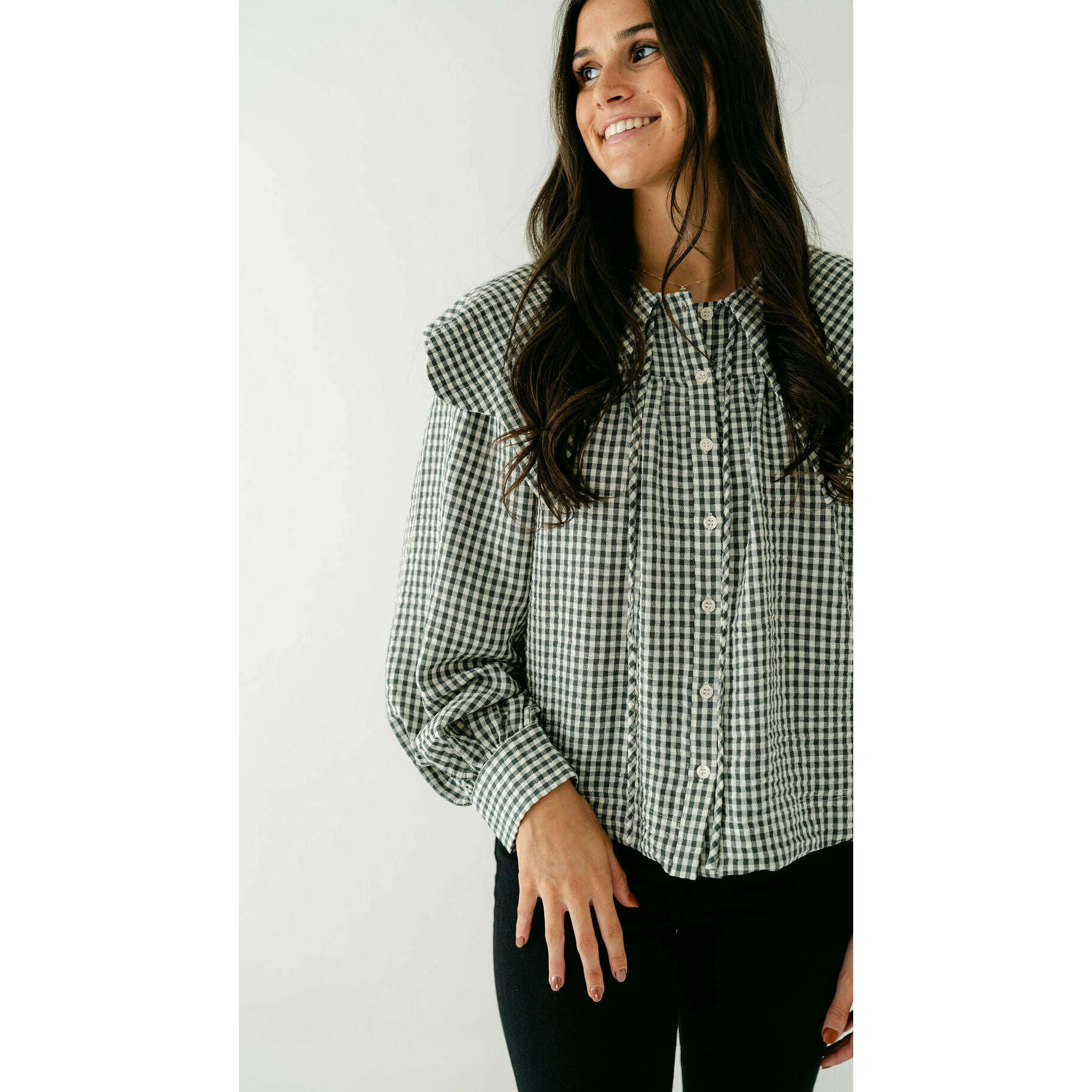 Meet your new fall essential—the Karlie top combines a delightful green gingham pattern with a charming Peter Pan collar that instantly elevates any outfit. This season's must-have piece captures the cozy warmth of autumn while maintaining a fresh, preppy aesthetic that works beautifully from day to night. Versatile enough to style with everything in your closet, this top is the fun, fashion-forward addition you've been searching for.