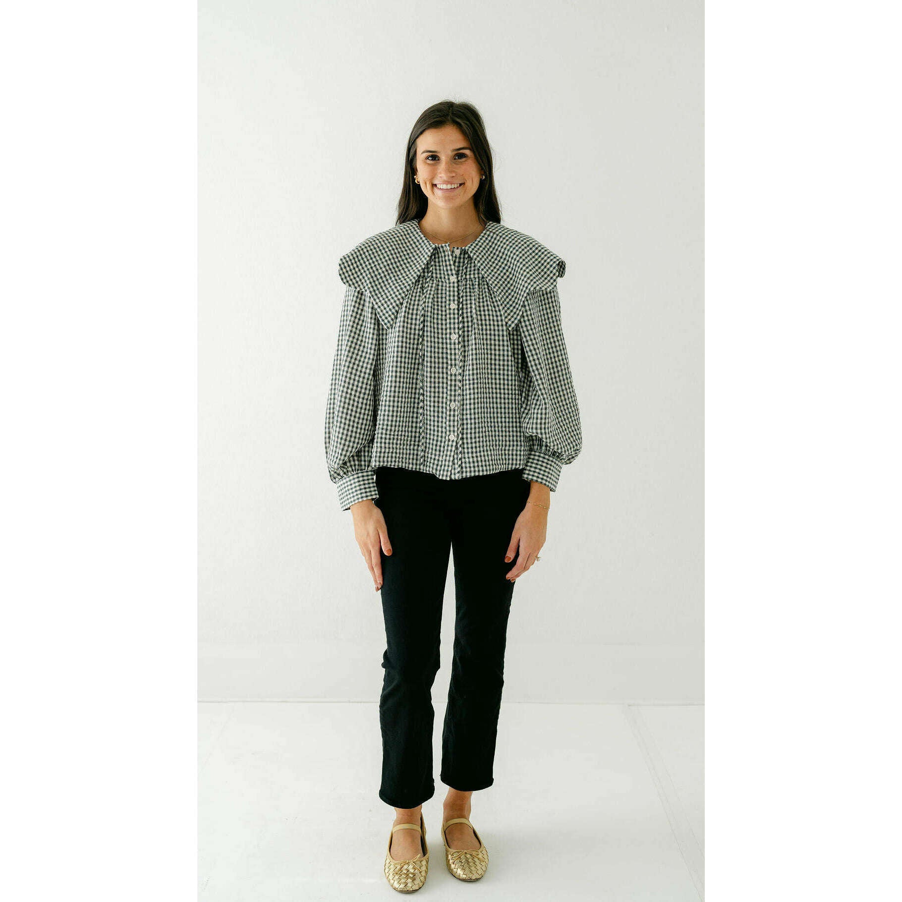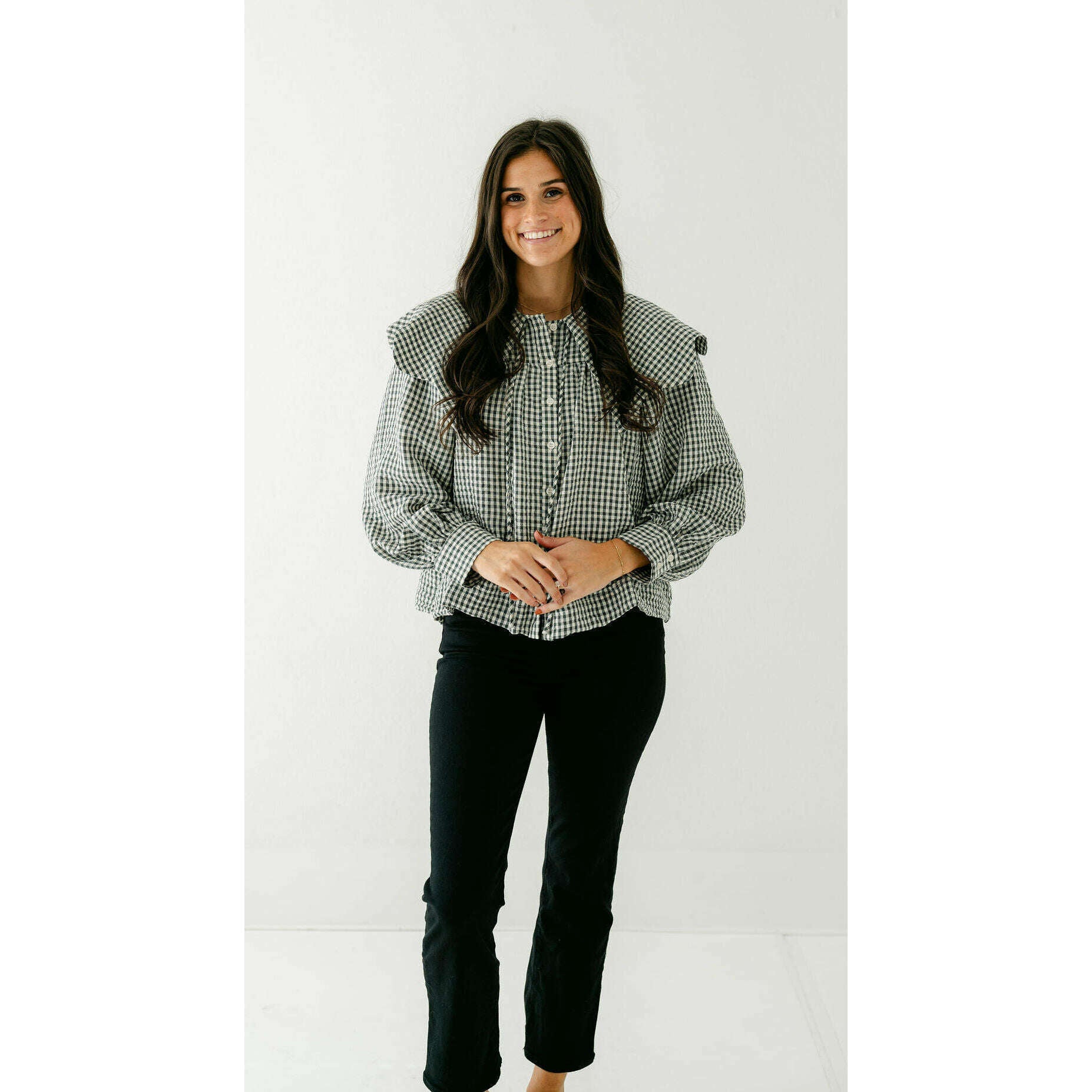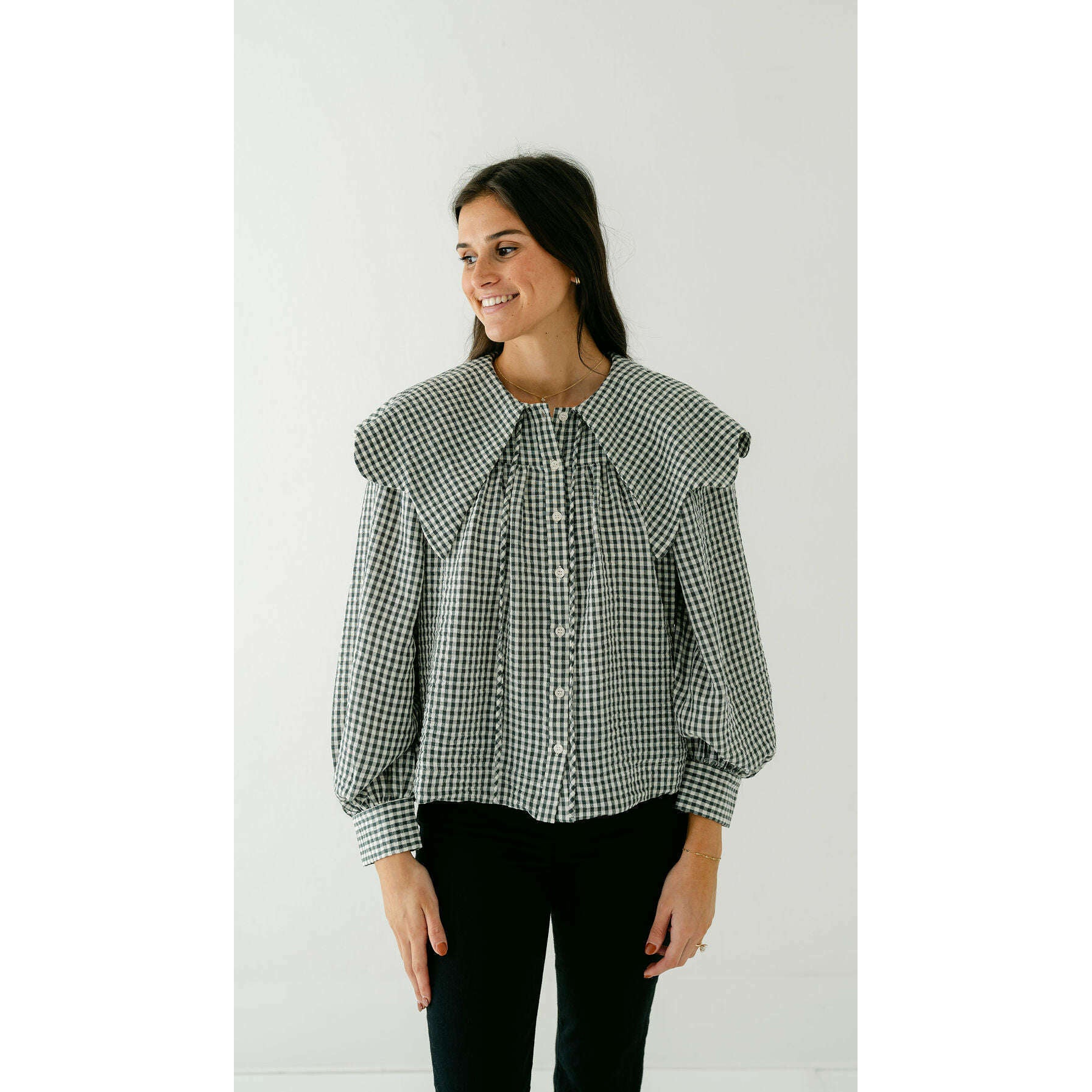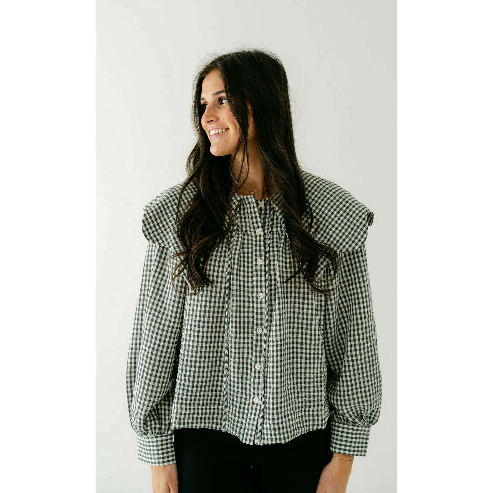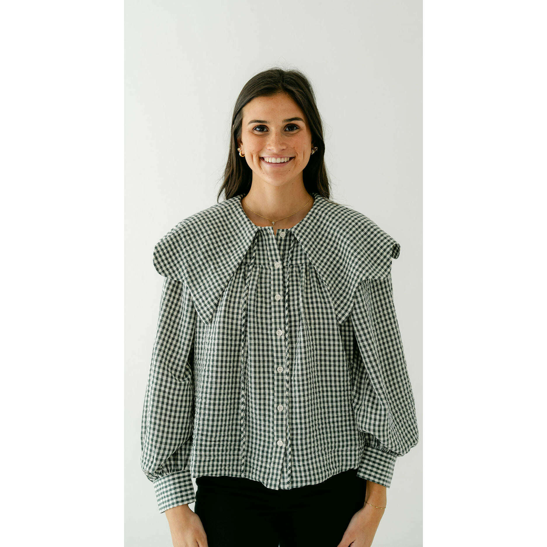 Karlie Green Gingham Poplin Peter Pan Collar Top