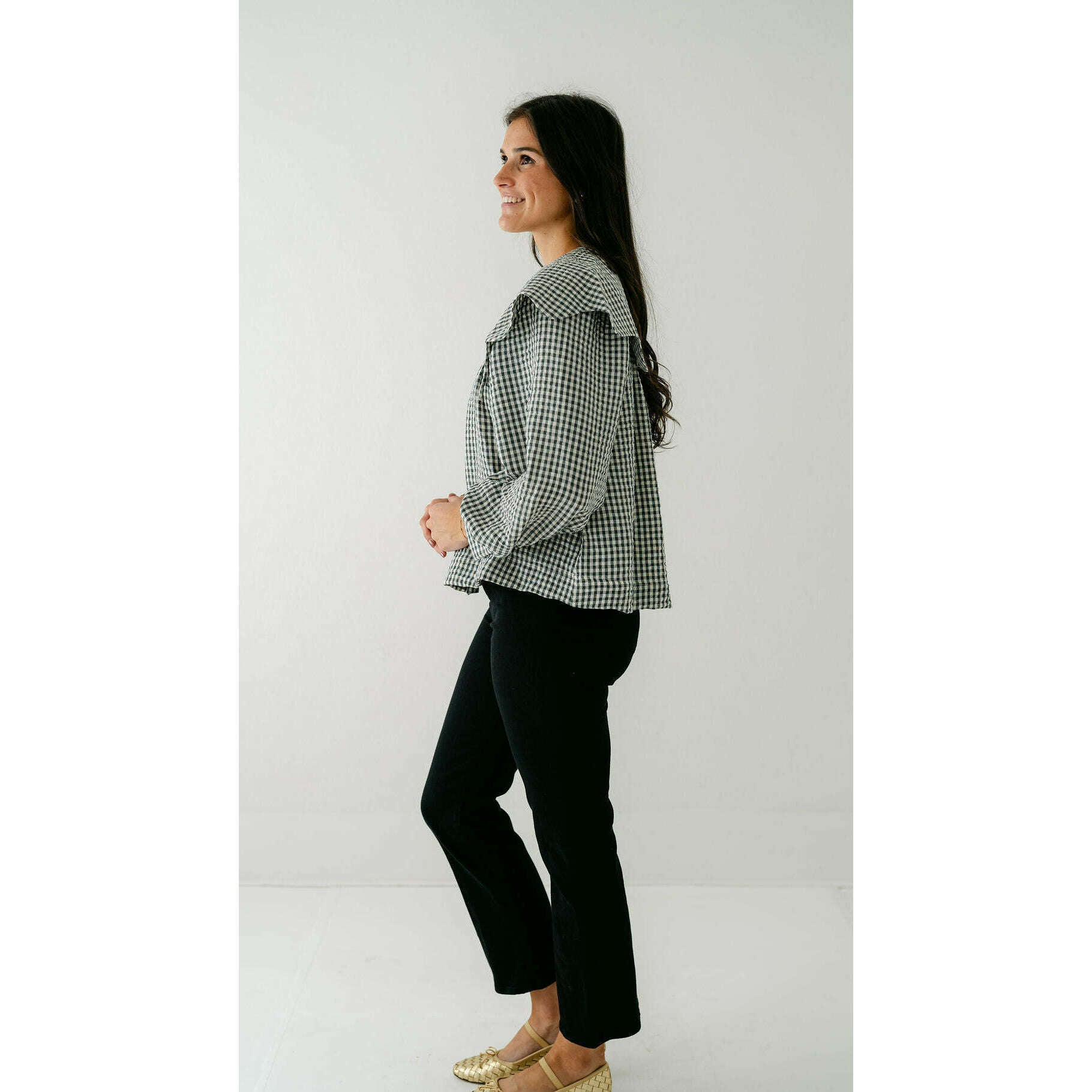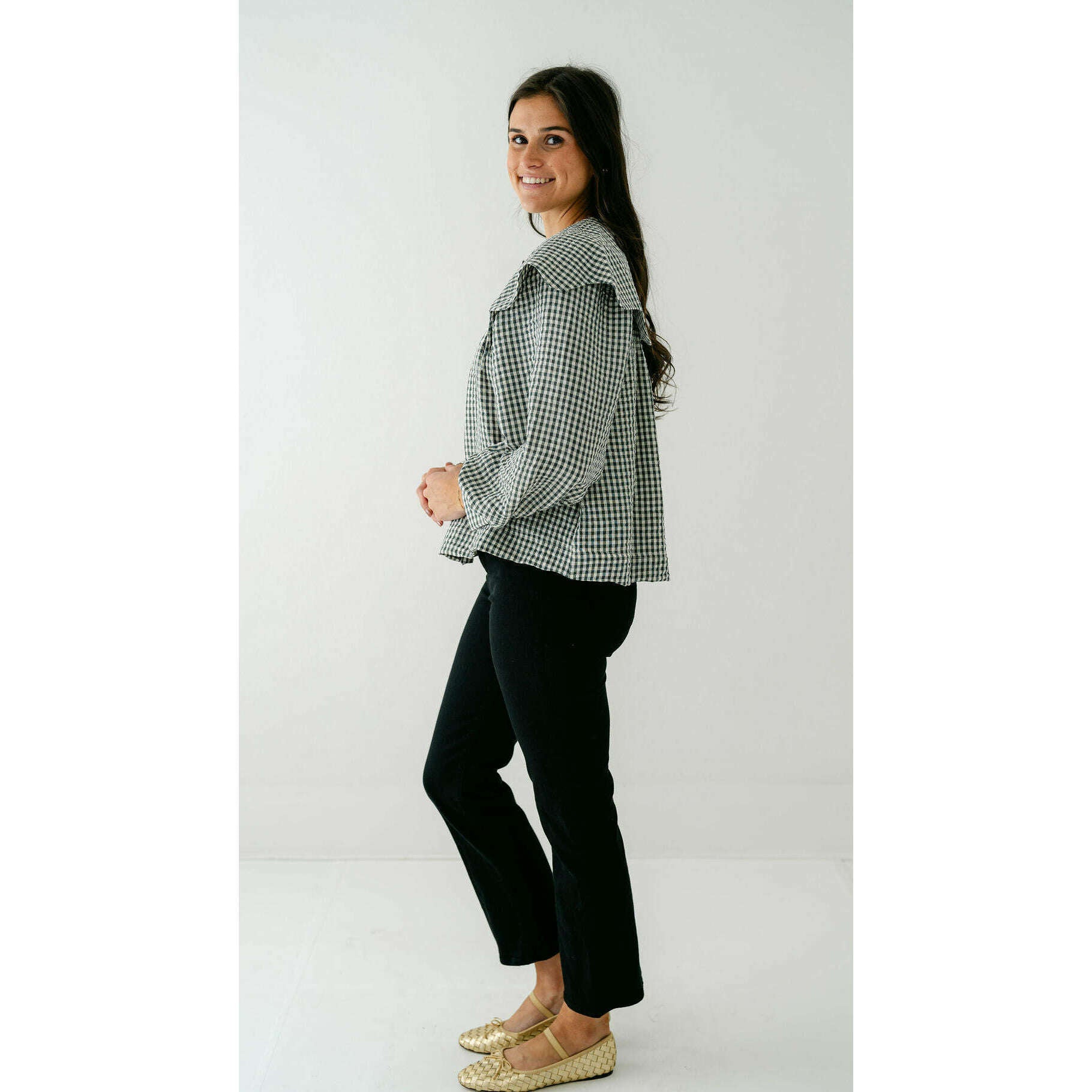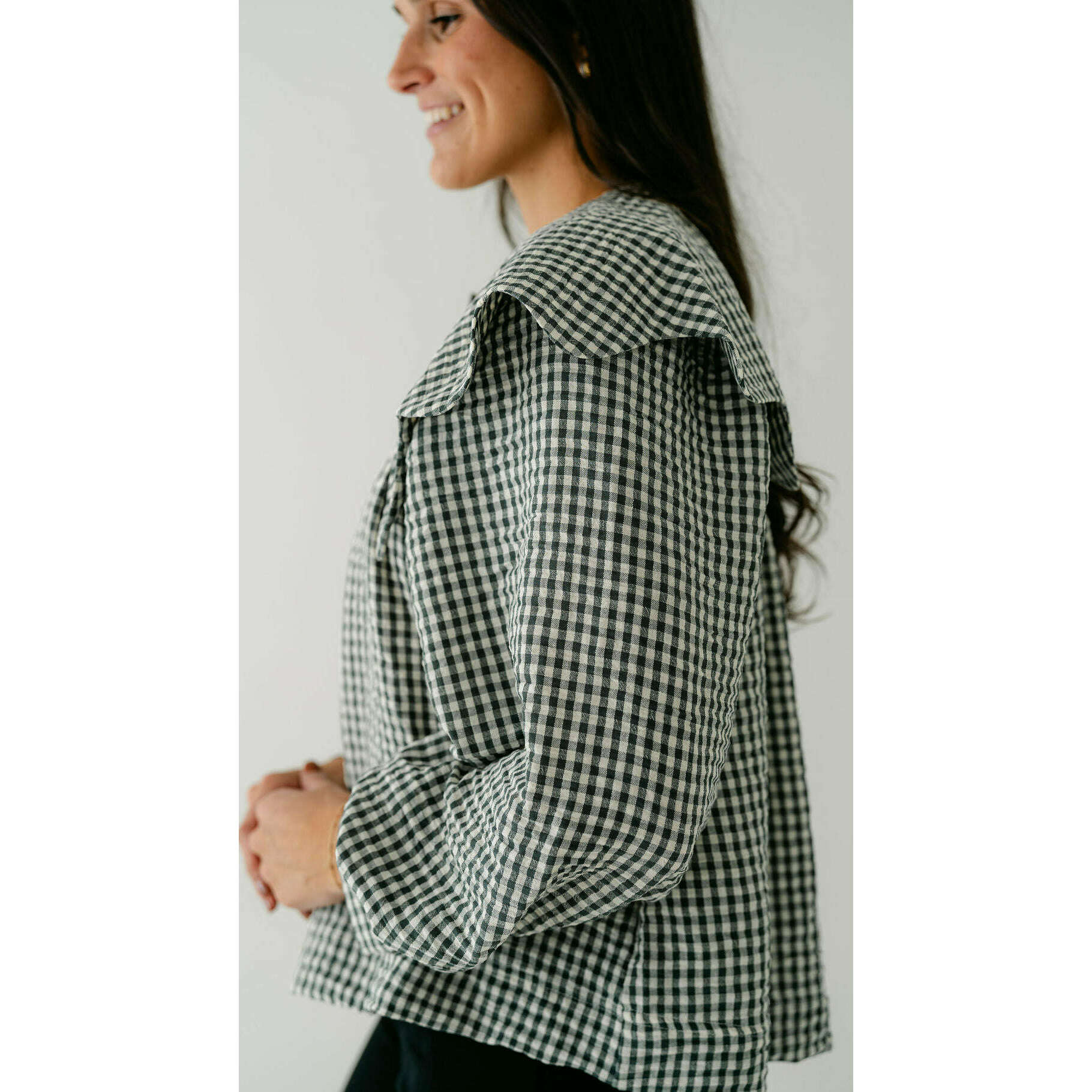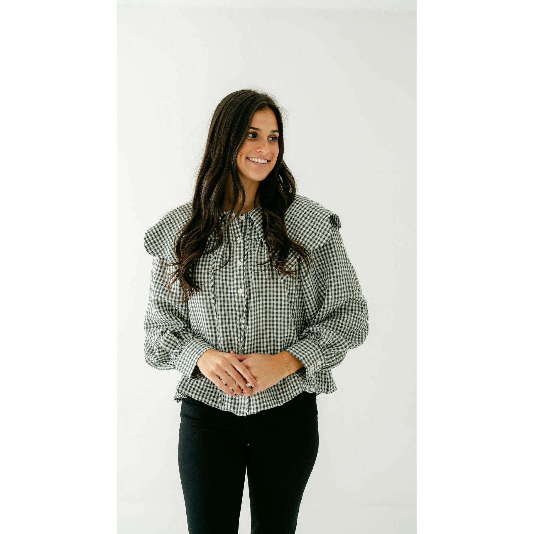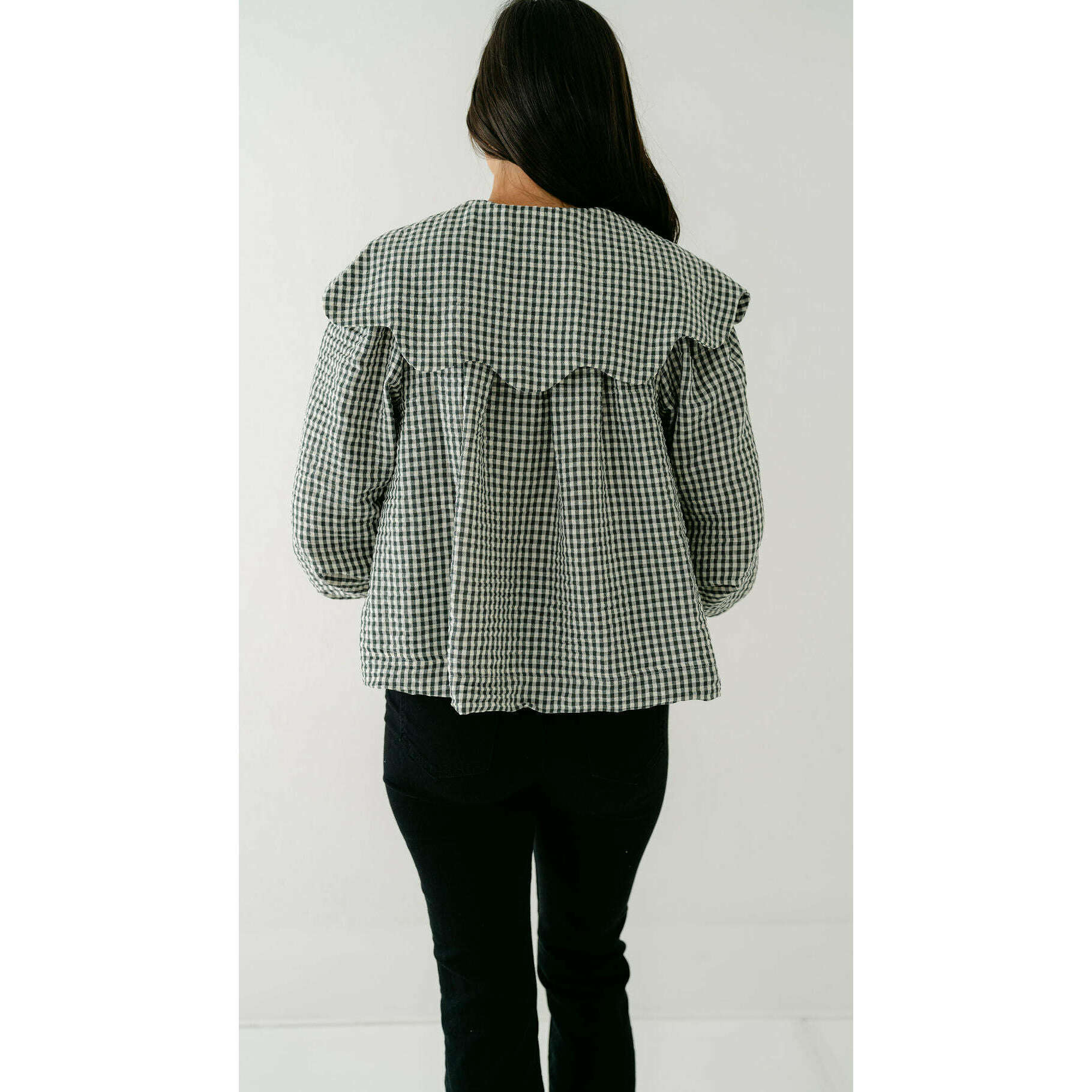 Karlie Green Gingham Poplin Peter Pan Collar Top