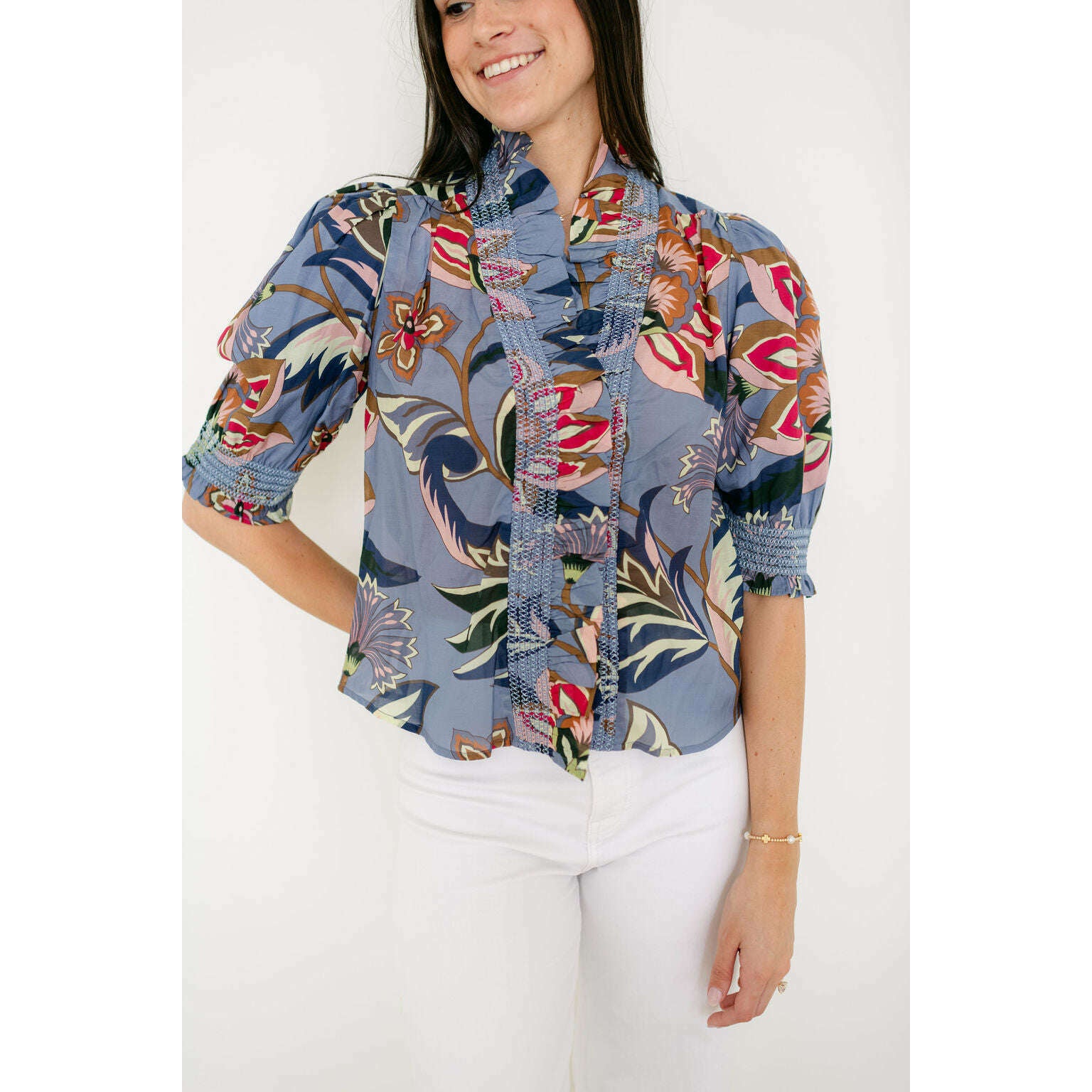 This adorable Love the Label Zuri Top in Waltz of Flowers is the versatile staple every wardrobe needs—effortlessly charming with its timeless design that works season after season. Style it with your favorite denim for an effortless casual look, or elevate it with crisp white denim for a fresh, polished vibe. A true transition piece that bridges seasons and occasions, this top is destined to become your go-to favorite.