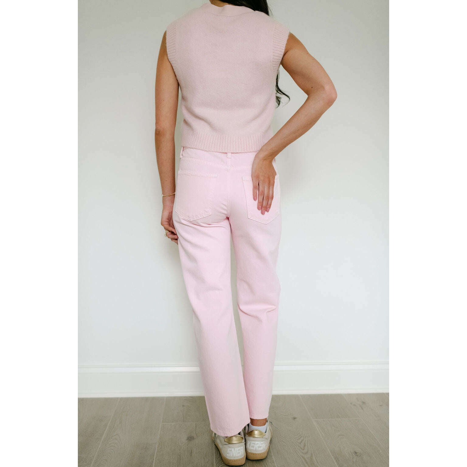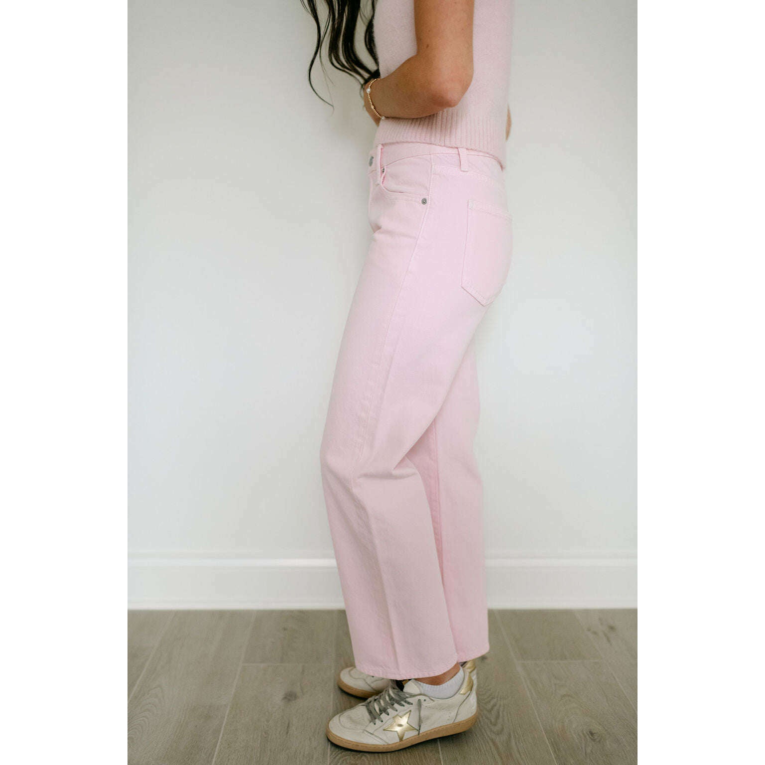 Meet your new favorite jeans. Designed with a flattering mid-rise and a unique bowed leg silhouette, these jeans offer a modern twist on a classic style. The straight leg is subtly bowed at the knees, creating a gently arched shape that's both comfortable and chic. In our soft Blush pink denim, these jeans add a touch of feminine color to your wardrobe. The cropped ankle length and clean hem make them perfect for showcasing your favorite shoes.