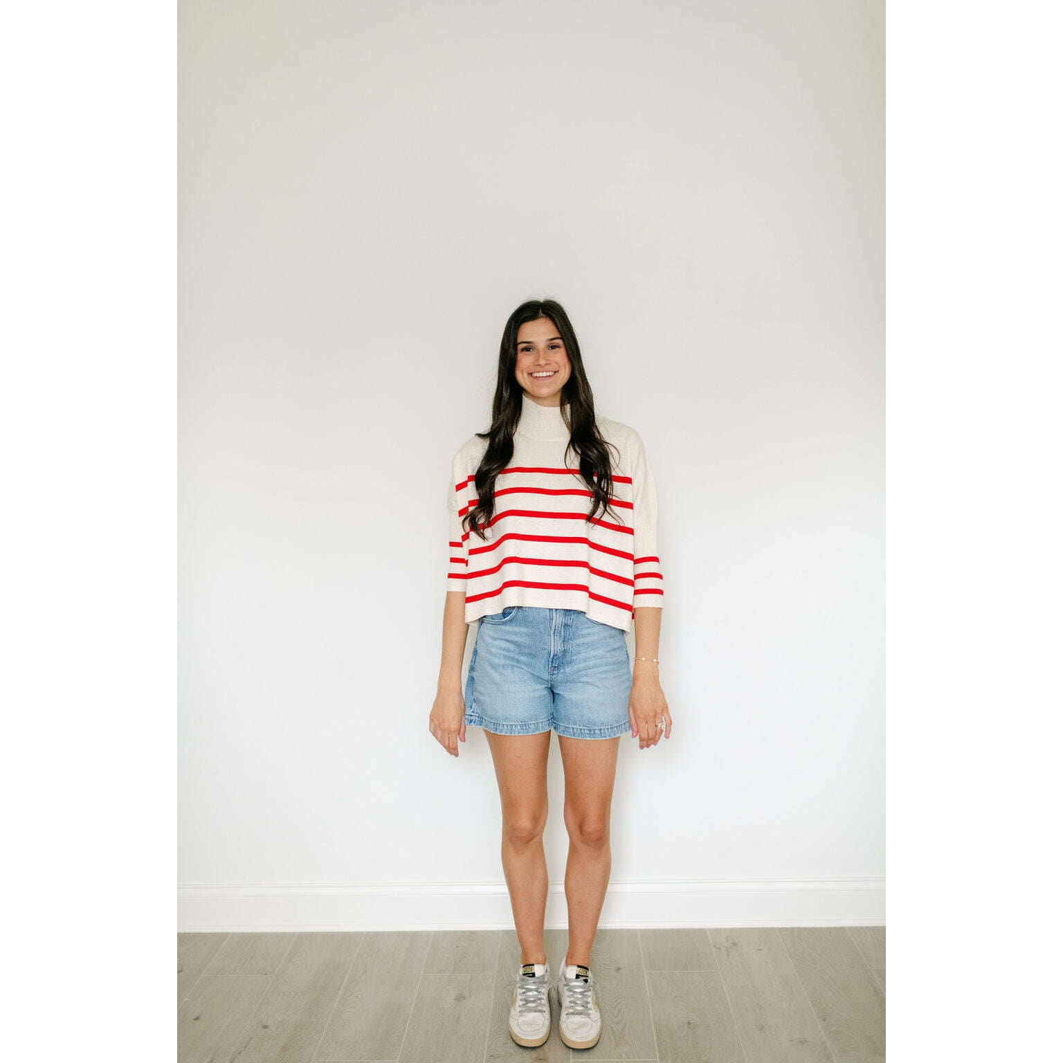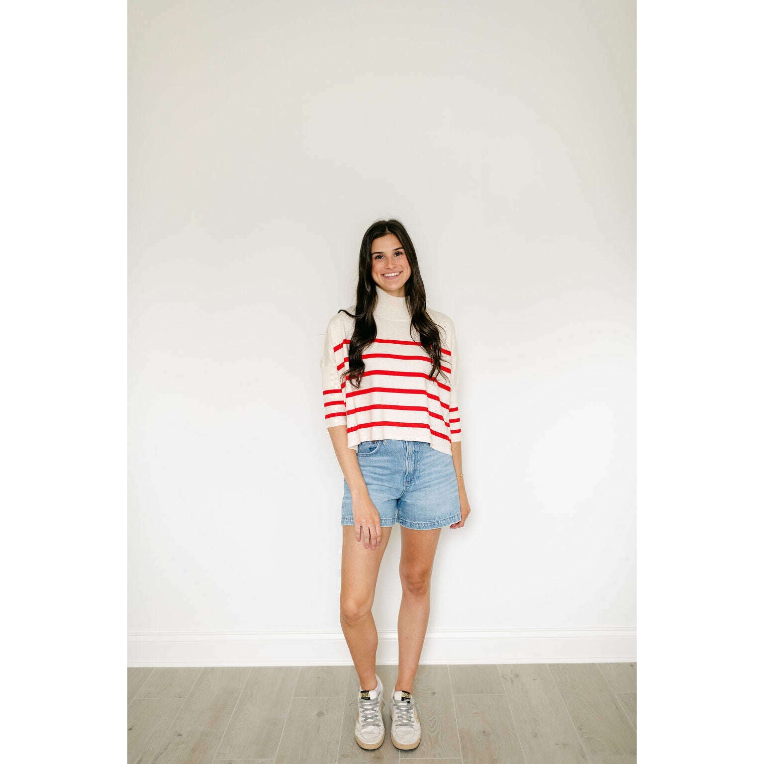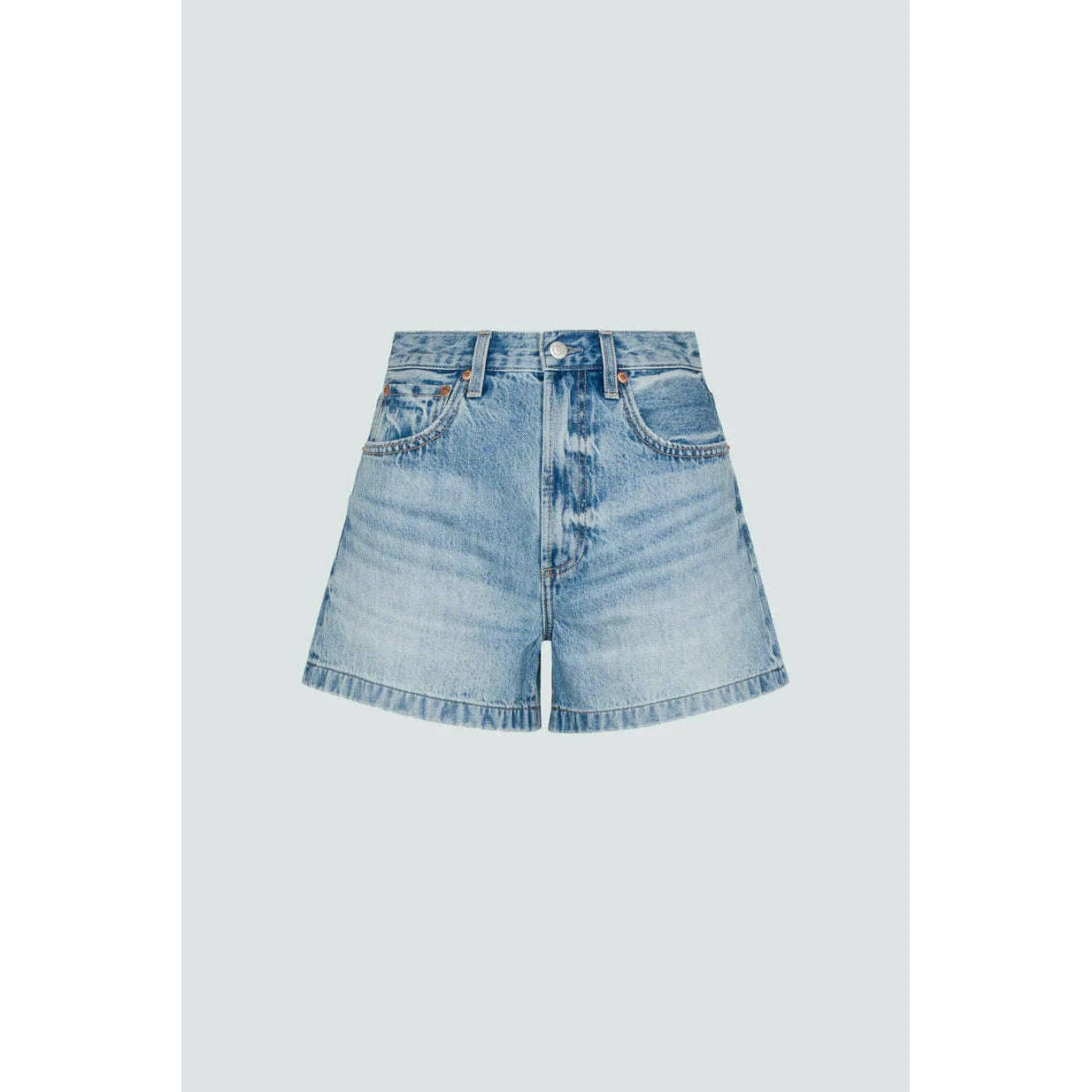 Your summer essential with serious style credentials. Saige sits at an ultra-flattering high rise and features the perfect A-line silhouette. The medium length hits at just the right spot, finished with a 4" inseam for easy, everyday wear. Crafted from rigid non-stretch denim in French Riviera, a medium blue wash with natural fading, whiskering, and a gently frayed hem.