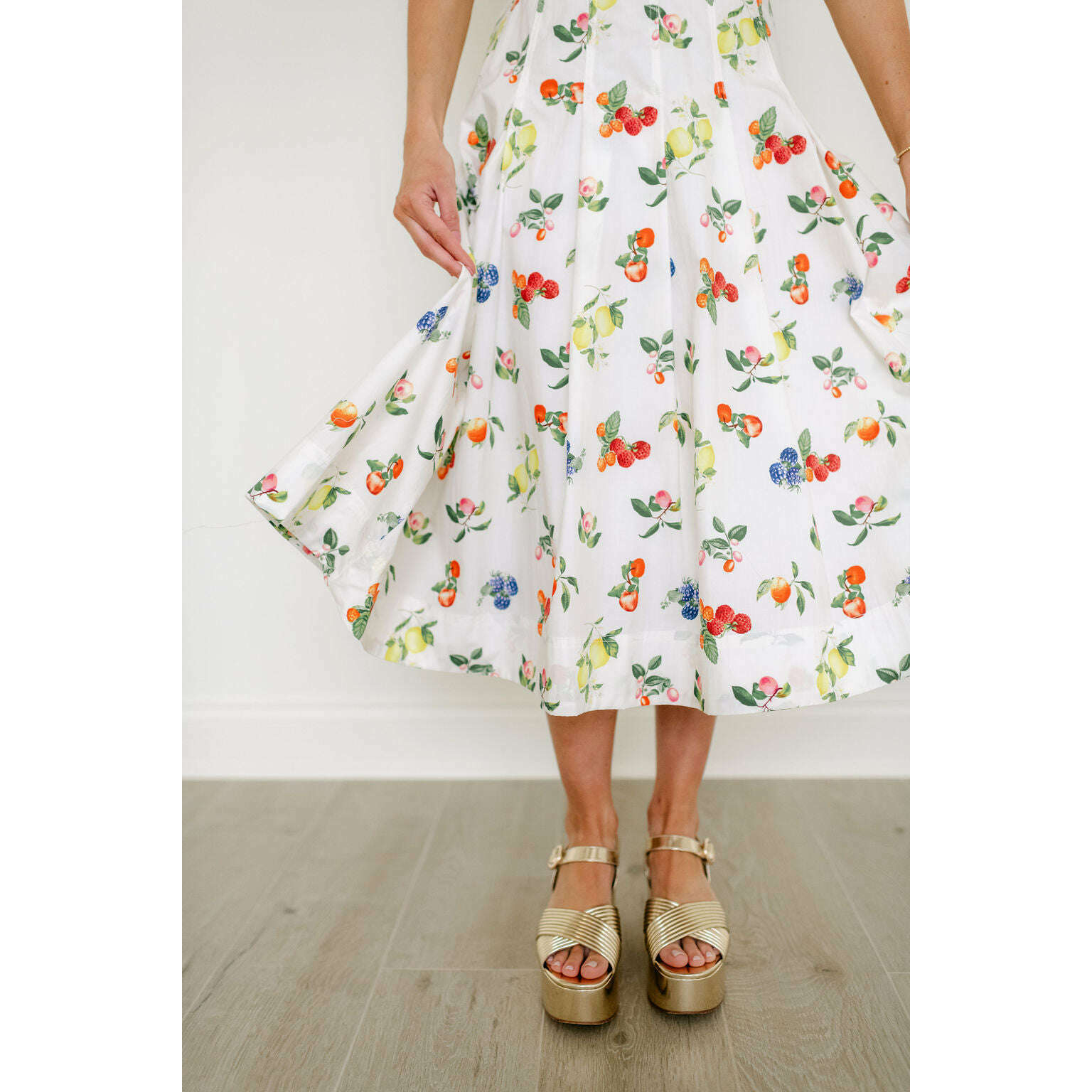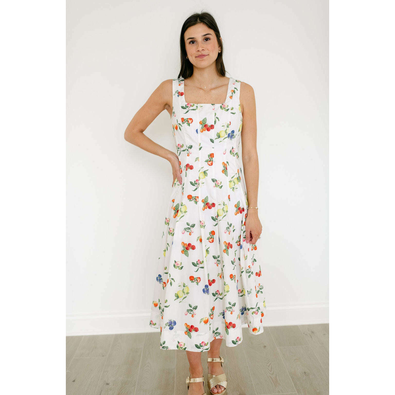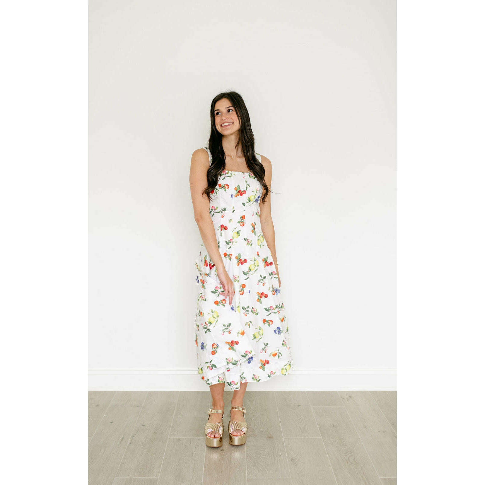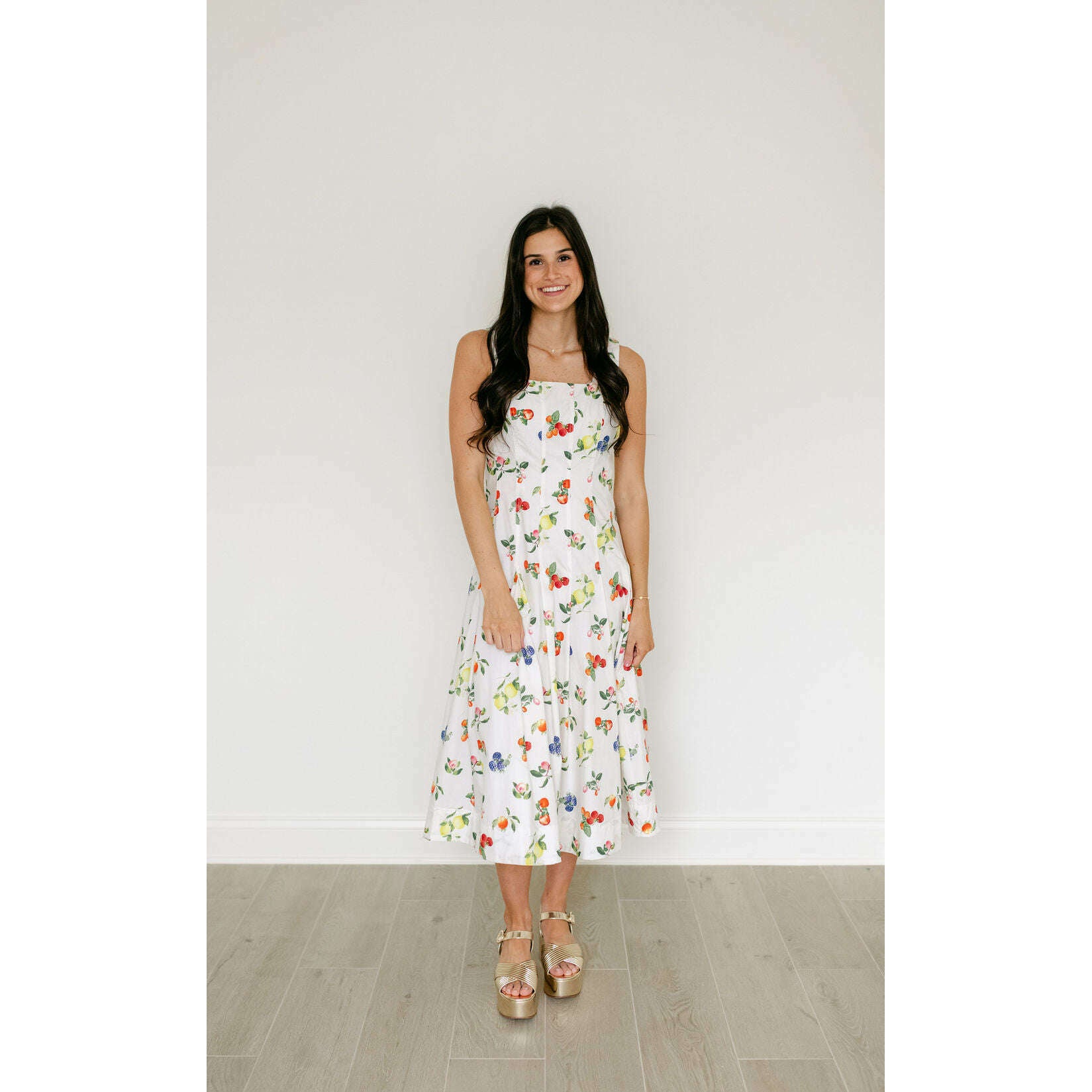 The Brooke Fruit Midi Dress in White