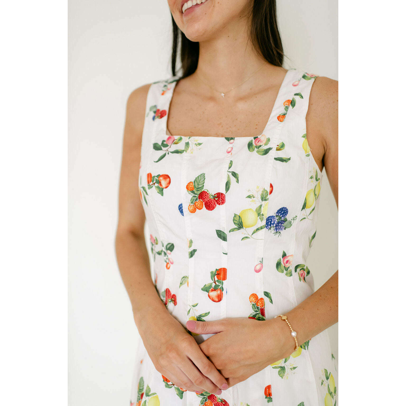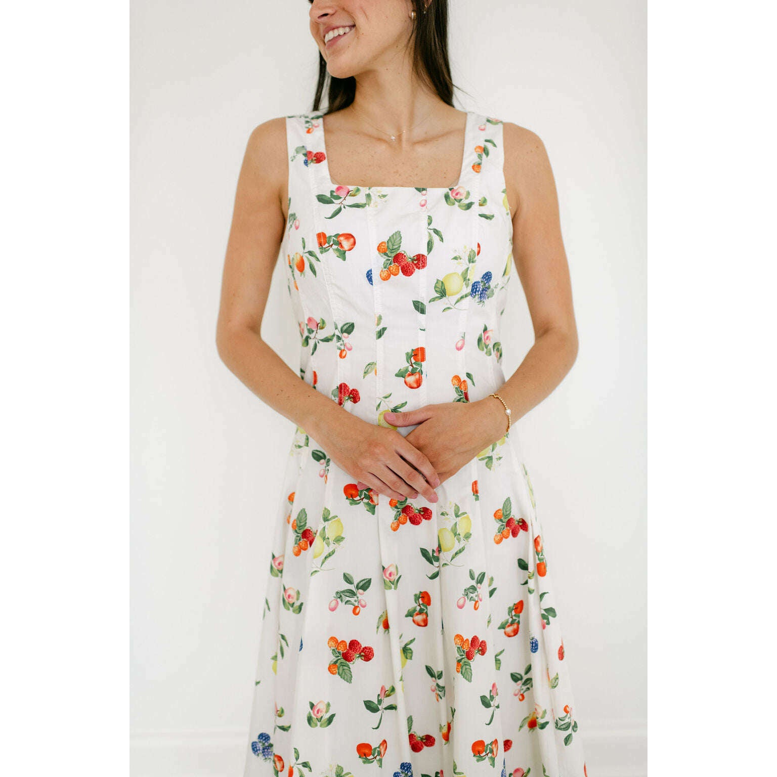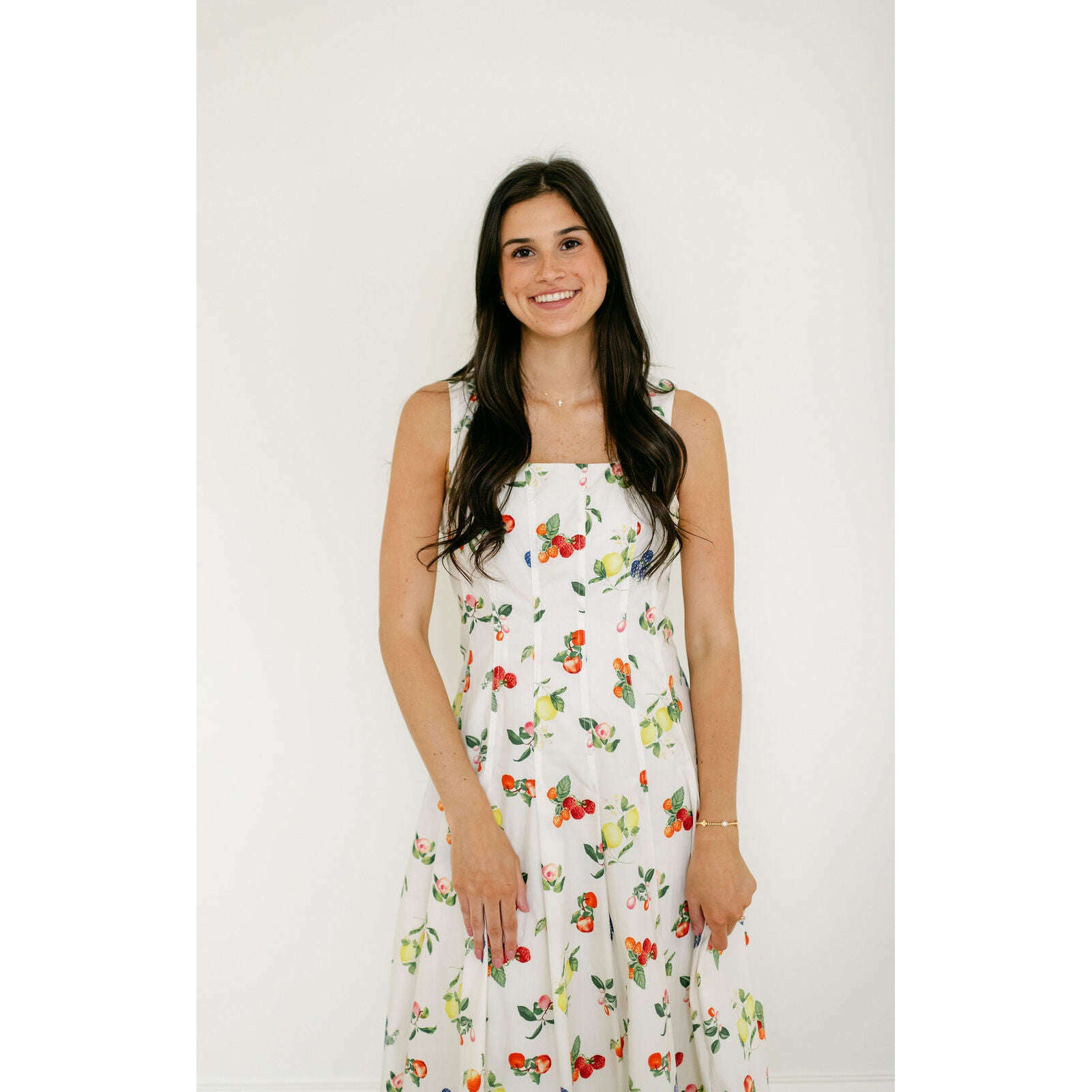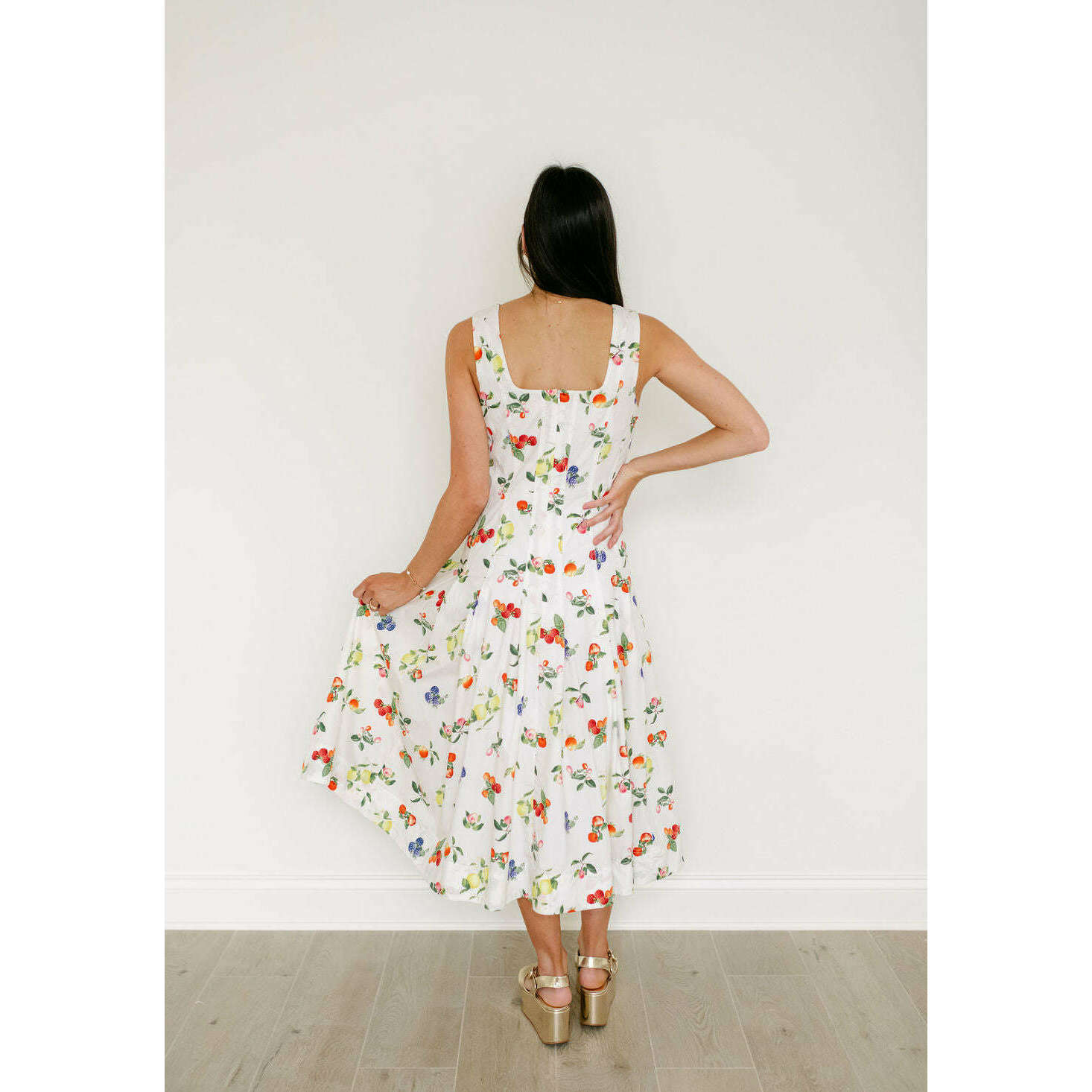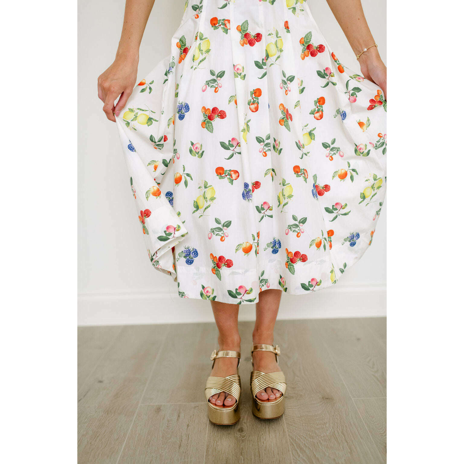 The Brooke Fruit Midi Dress in White