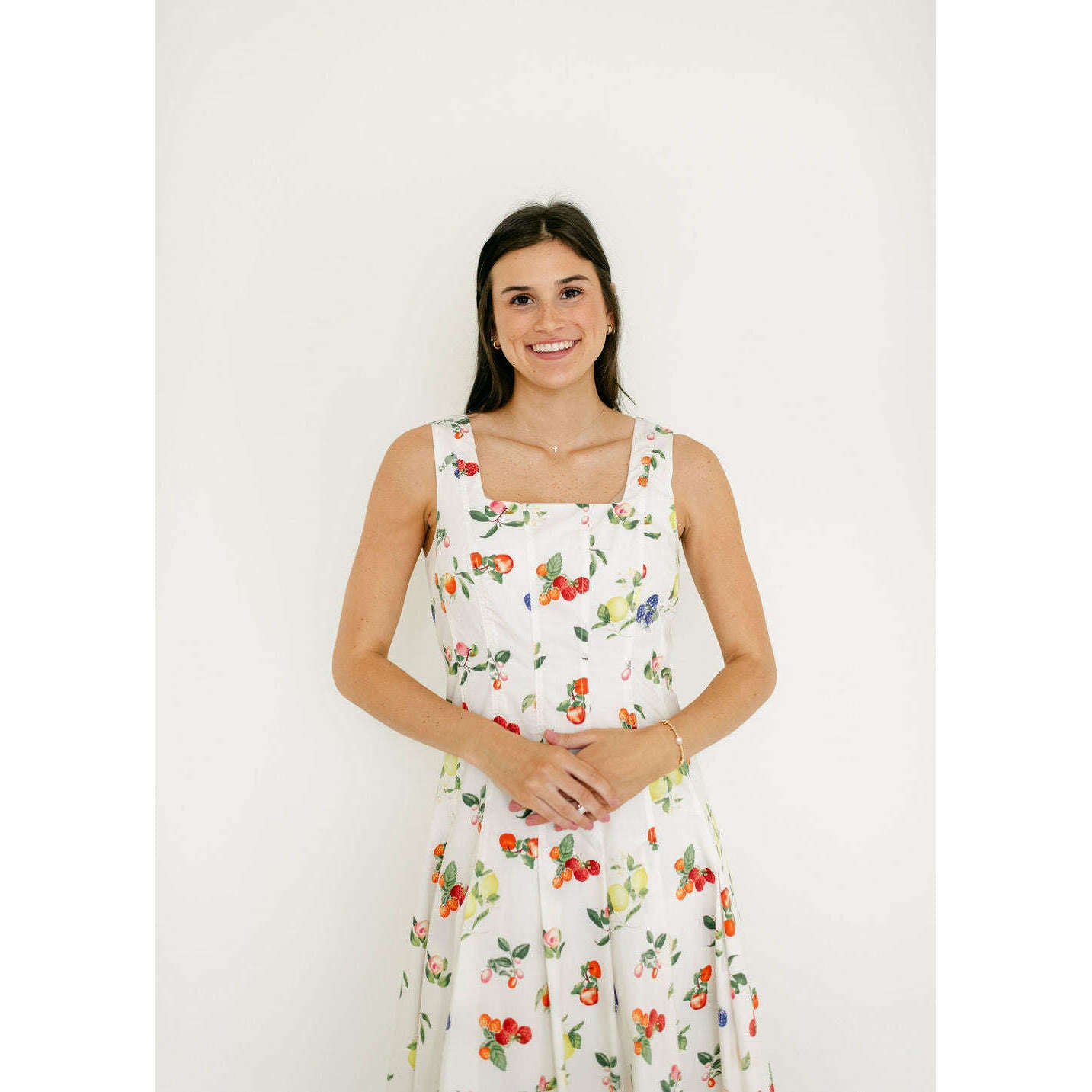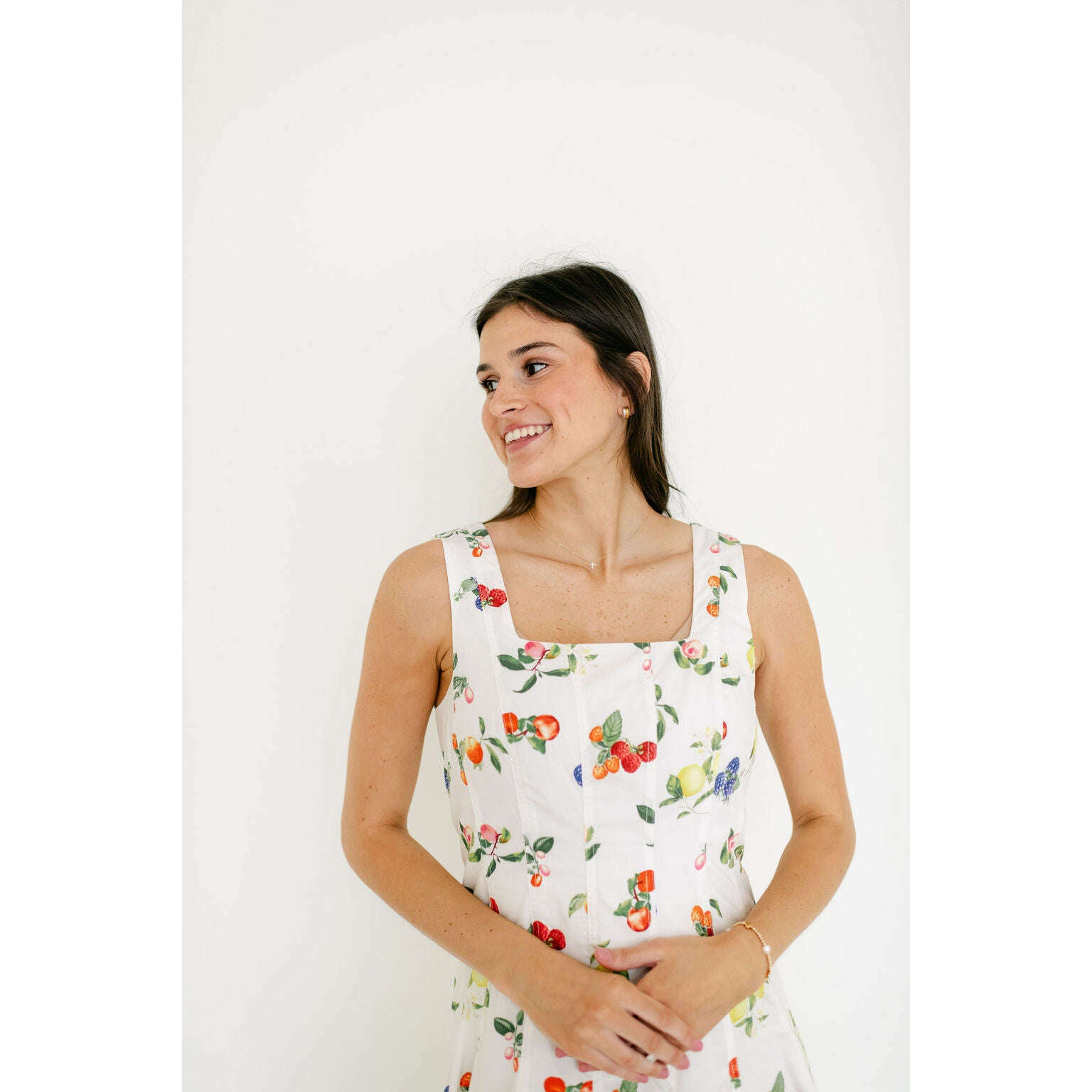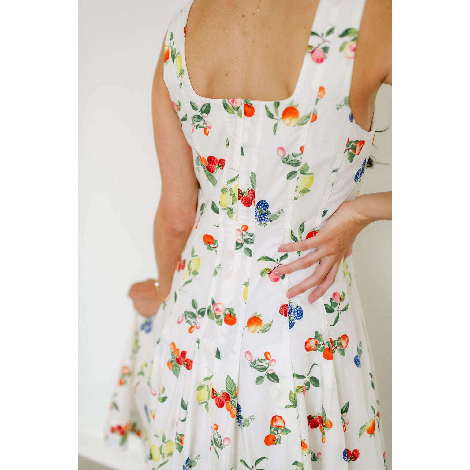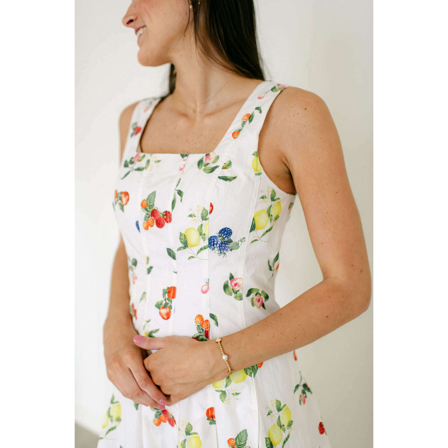 The Brooke Fruit Midi Dress in White