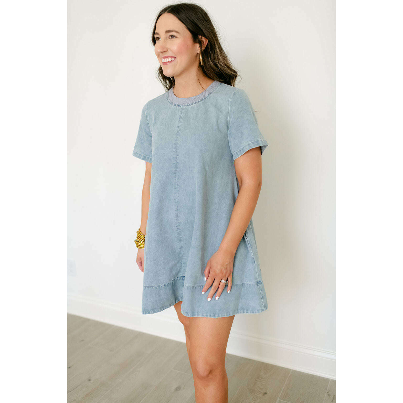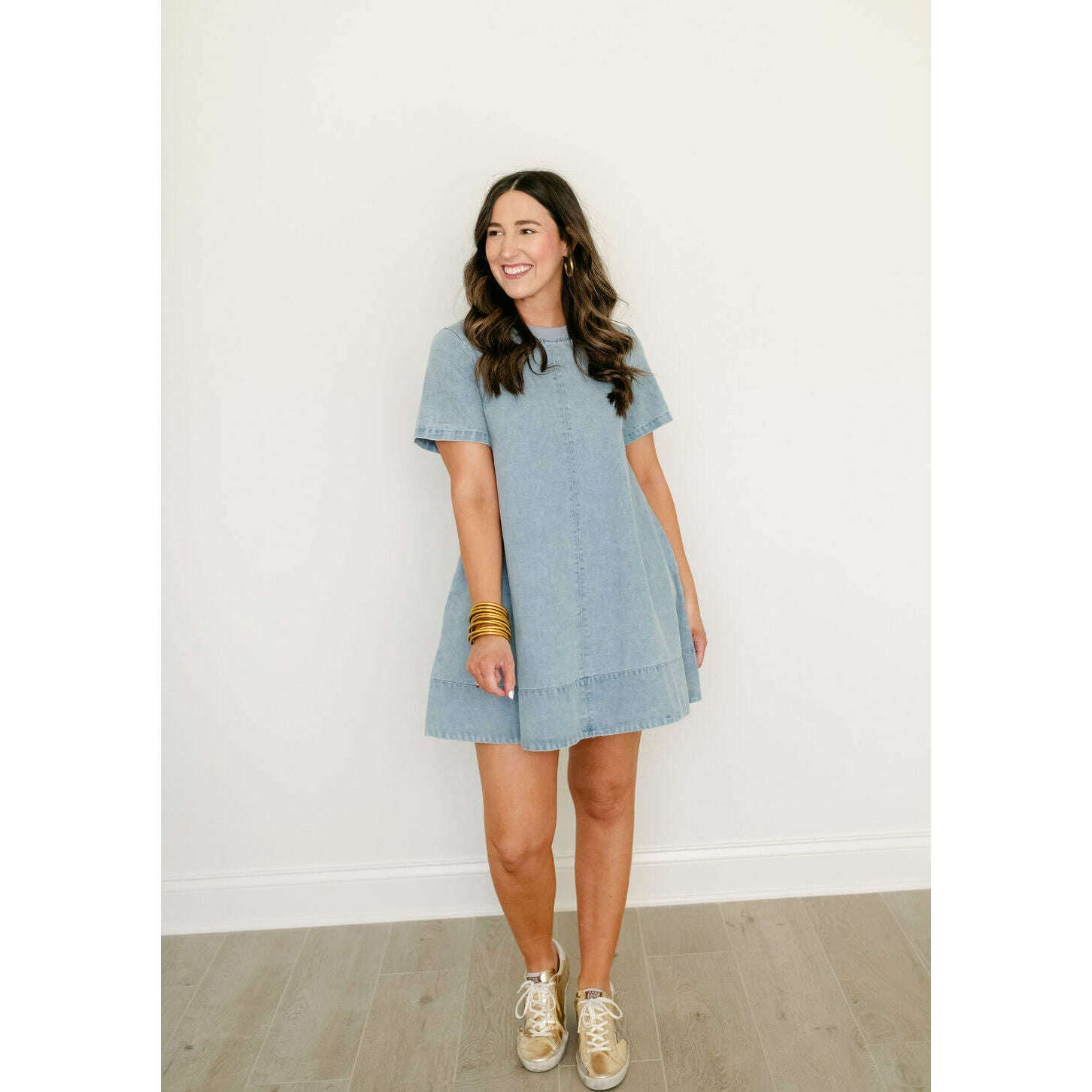 The Savannah Denim Swing Mini Dress is the perfect go-to piece for casual spring adventures, from country concerts to outdoor gatherings. With its playful swing silhouette and timeless denim appeal, this dress brings effortless fun and style to any laid-back occasion.