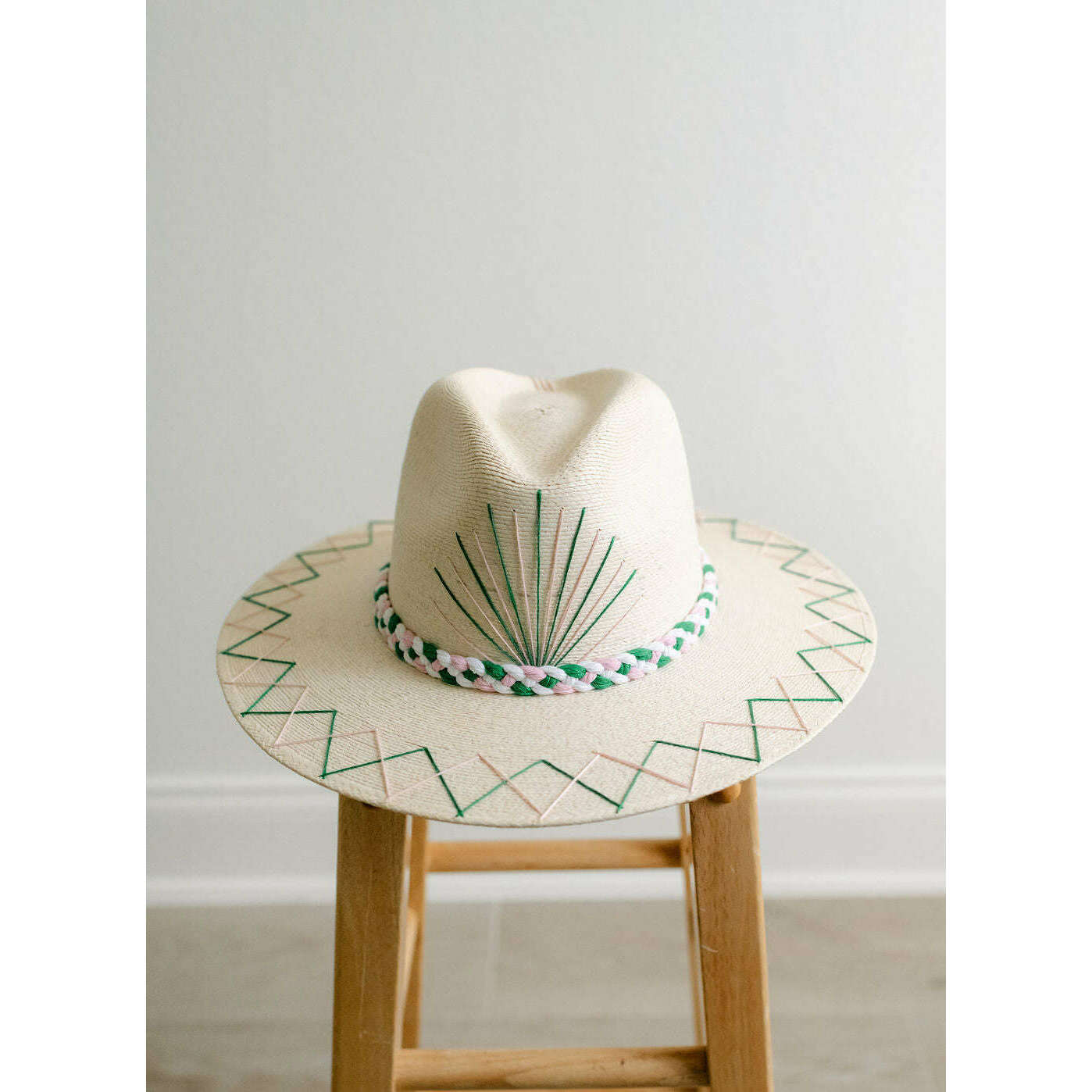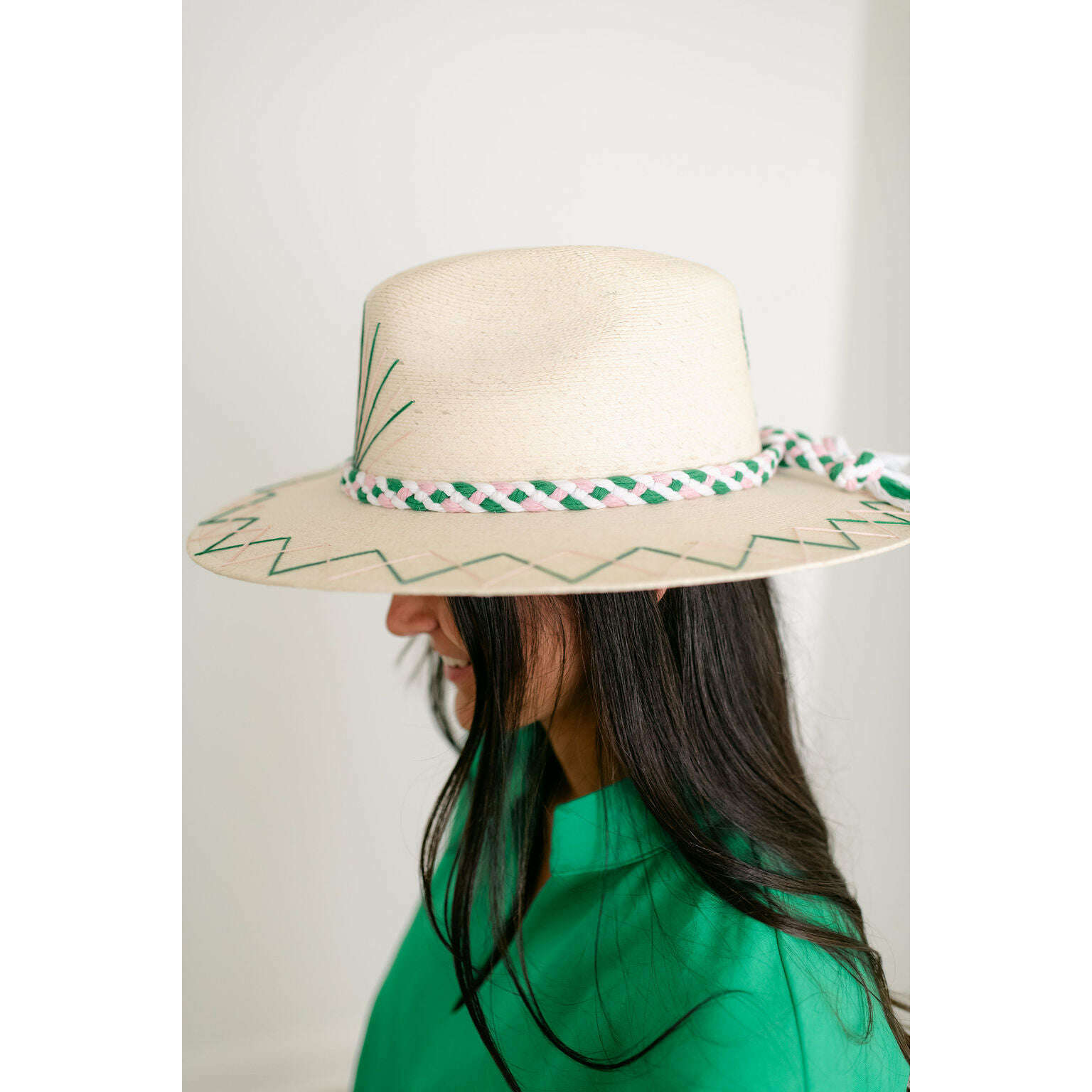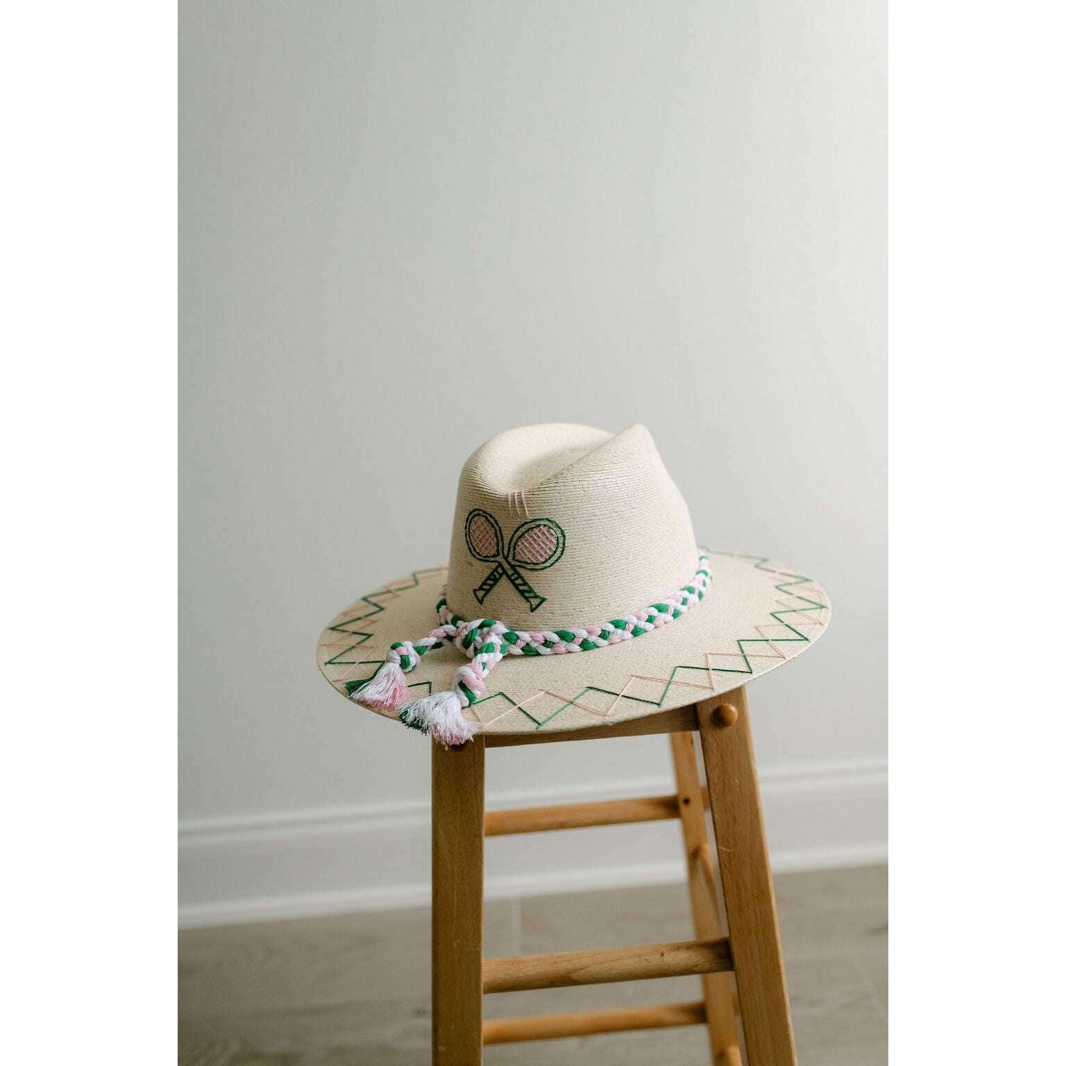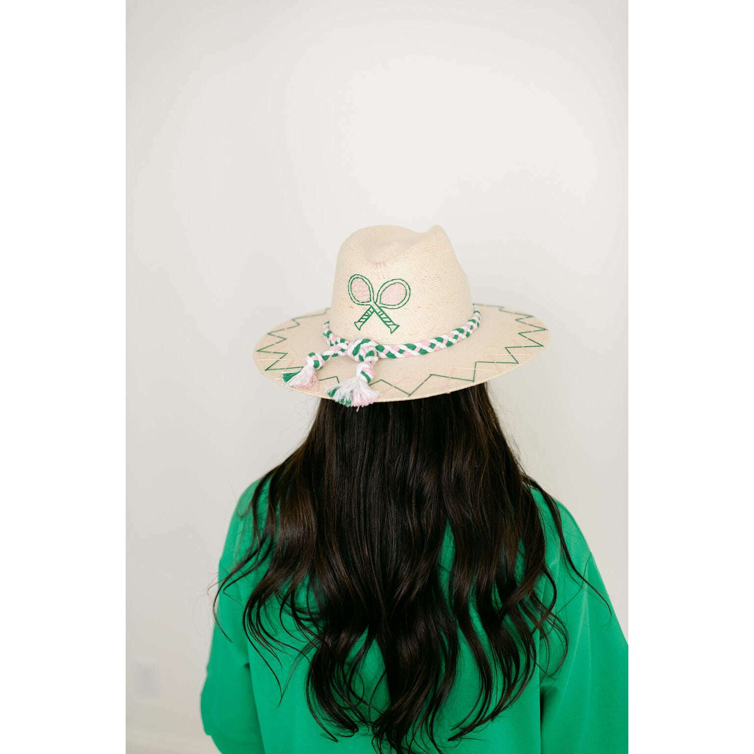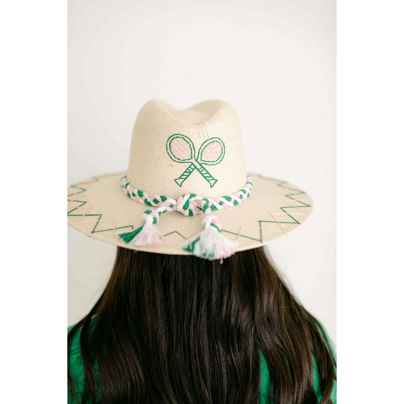 Tipsy Threads White Palm Tennis Racket Pink and Green Hat