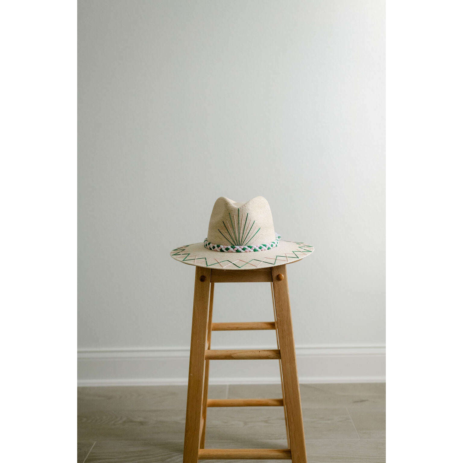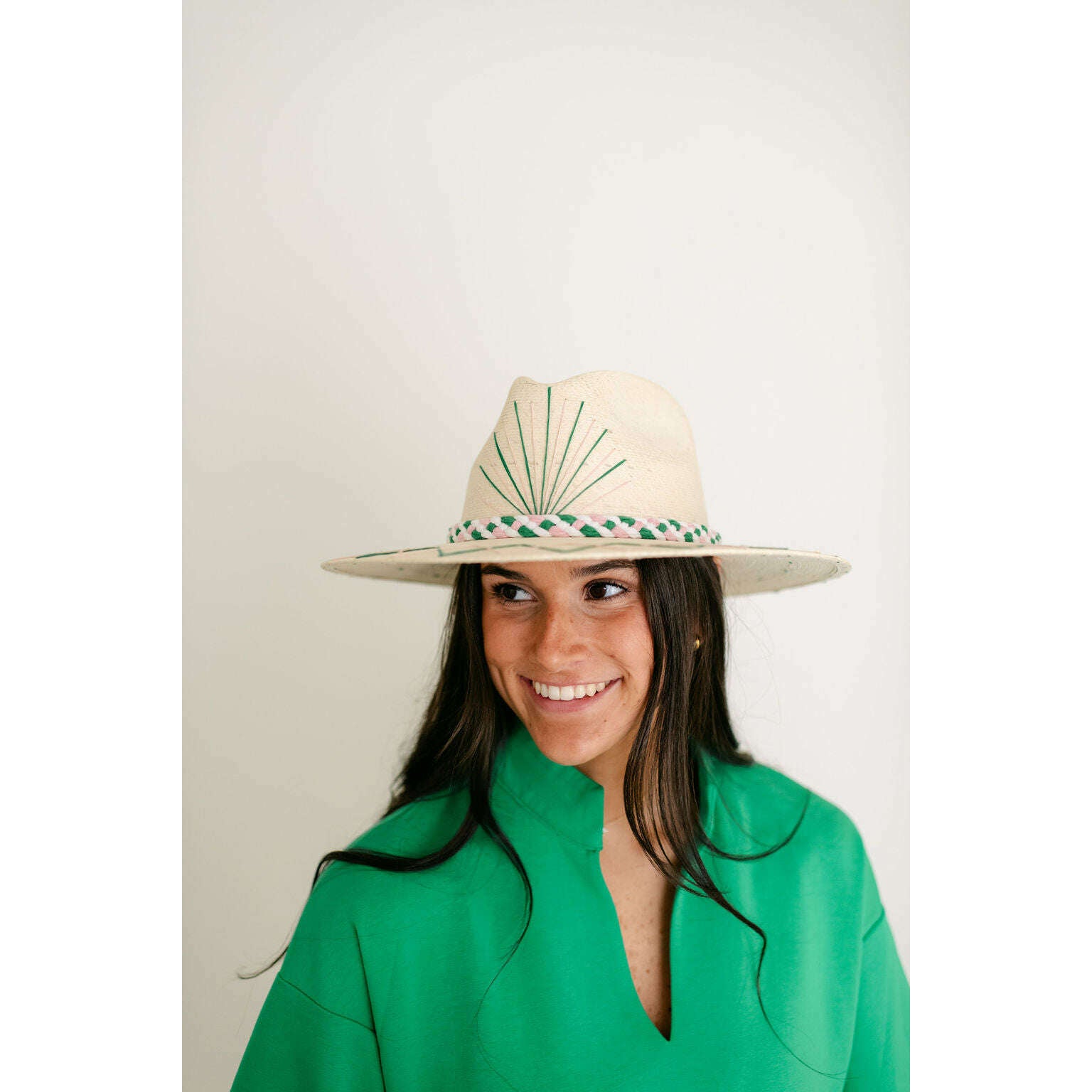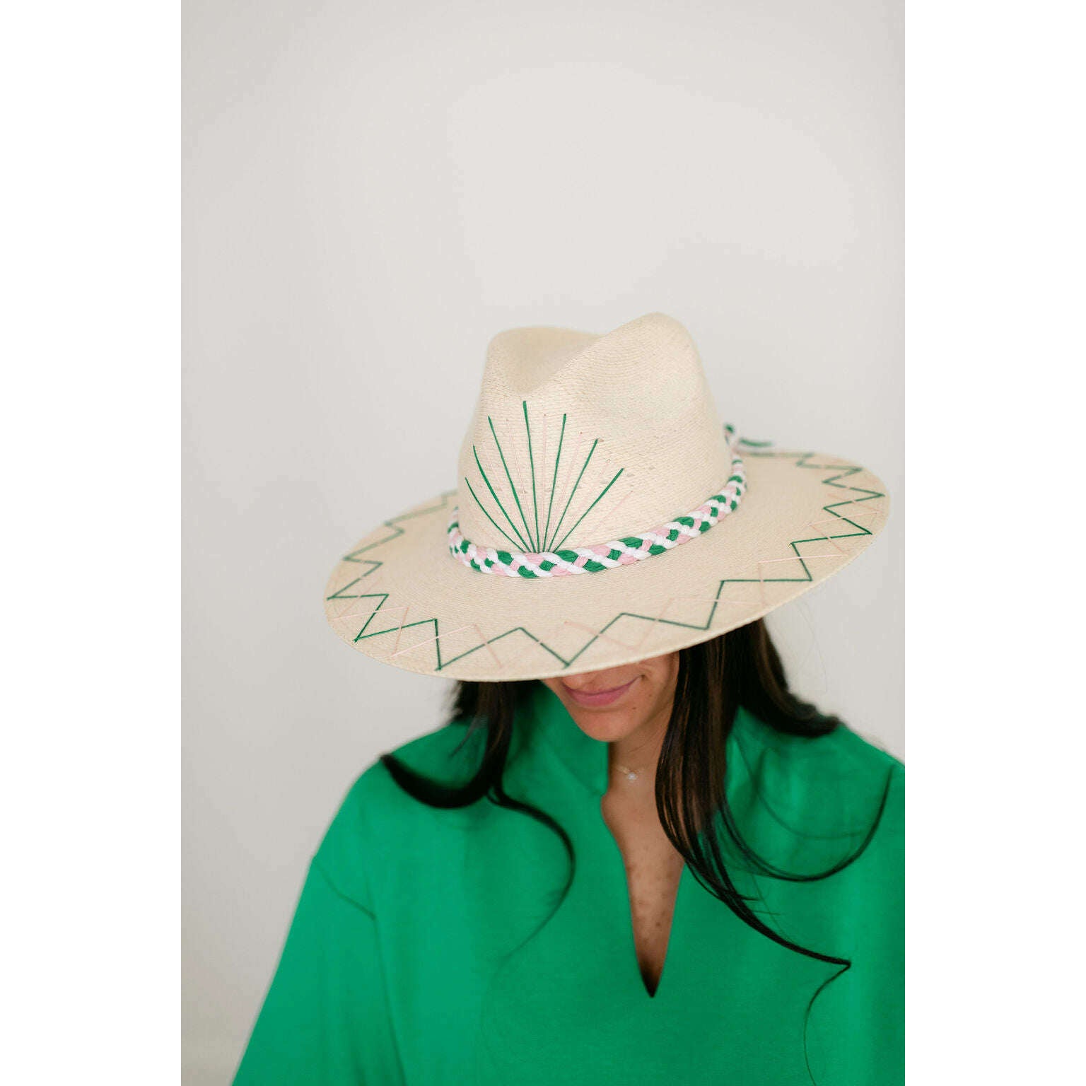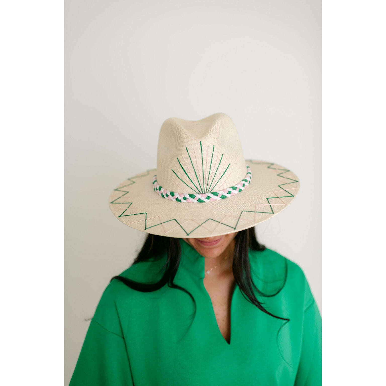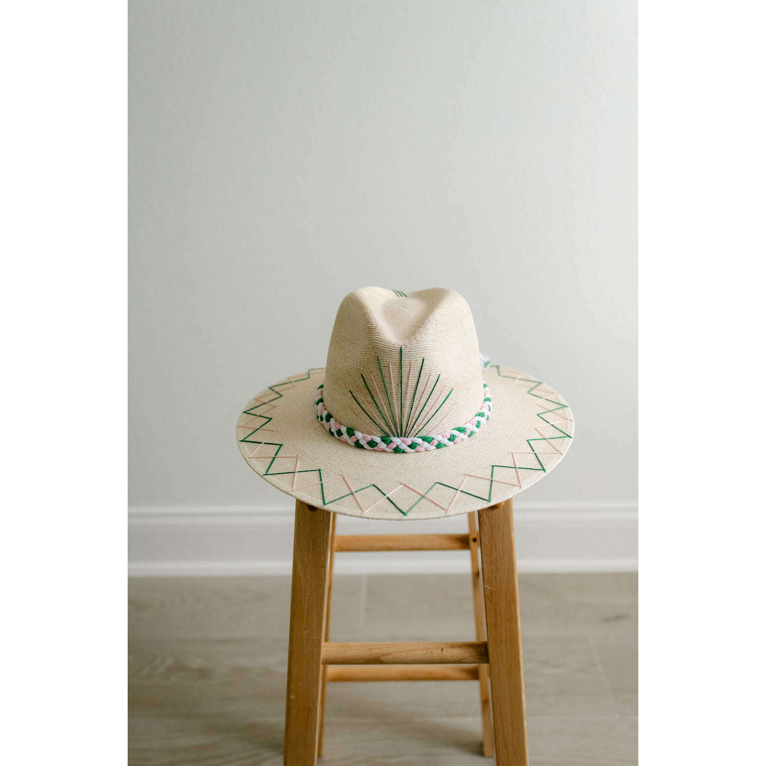 Tipsy Threads White Palm Tennis Racket Pink and Green Hat