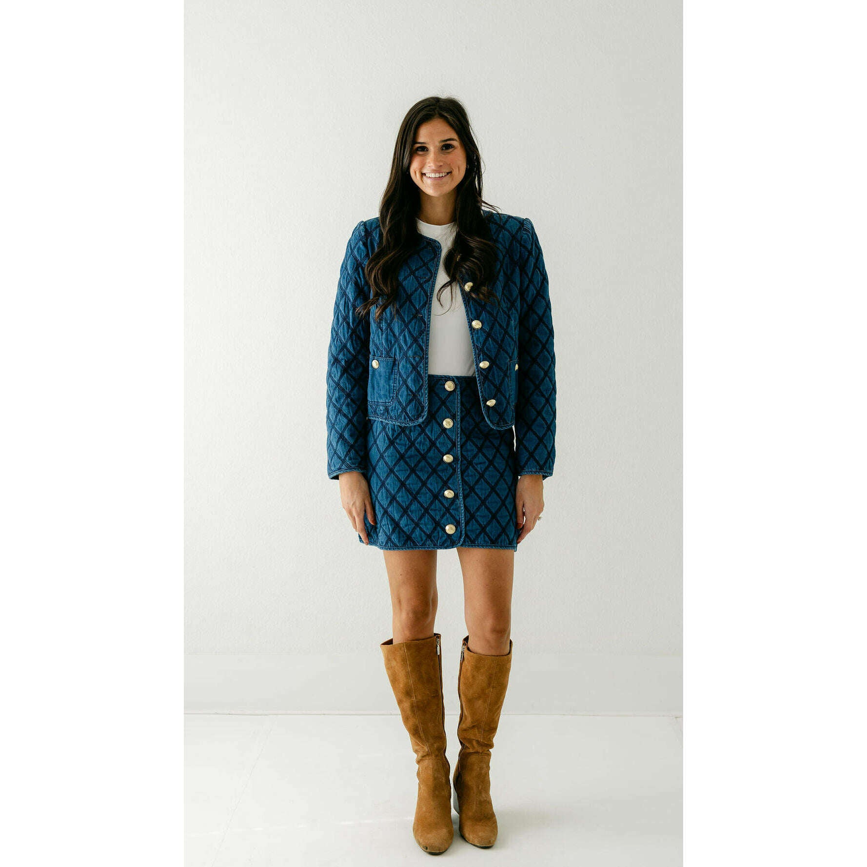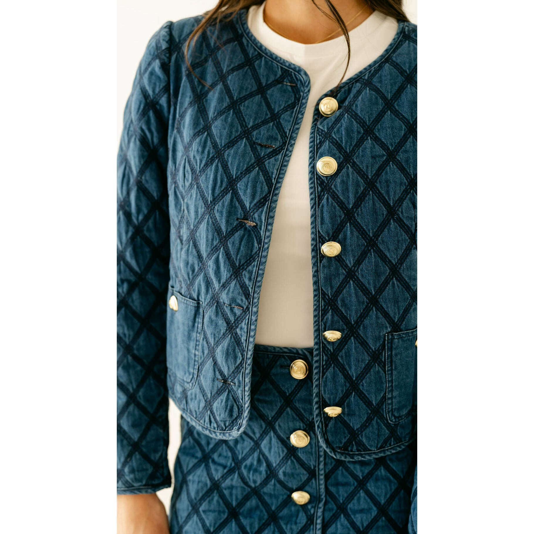 This adorable Karlie denim jacket features charming gold buttons that add a touch of sophistication to any outfit, making it the perfect statement piece for your wardrobe. Style it with our Karlie skirt to create a complete, coordinated look that's sure to turn heads.