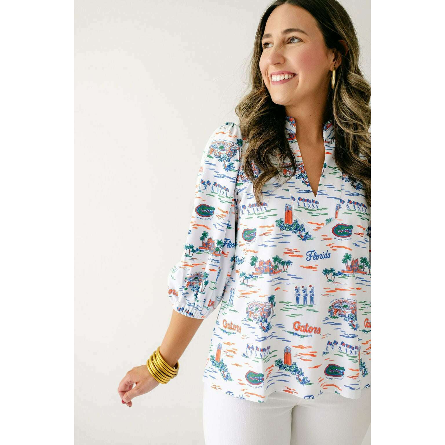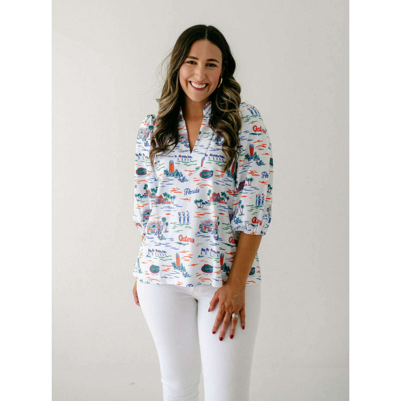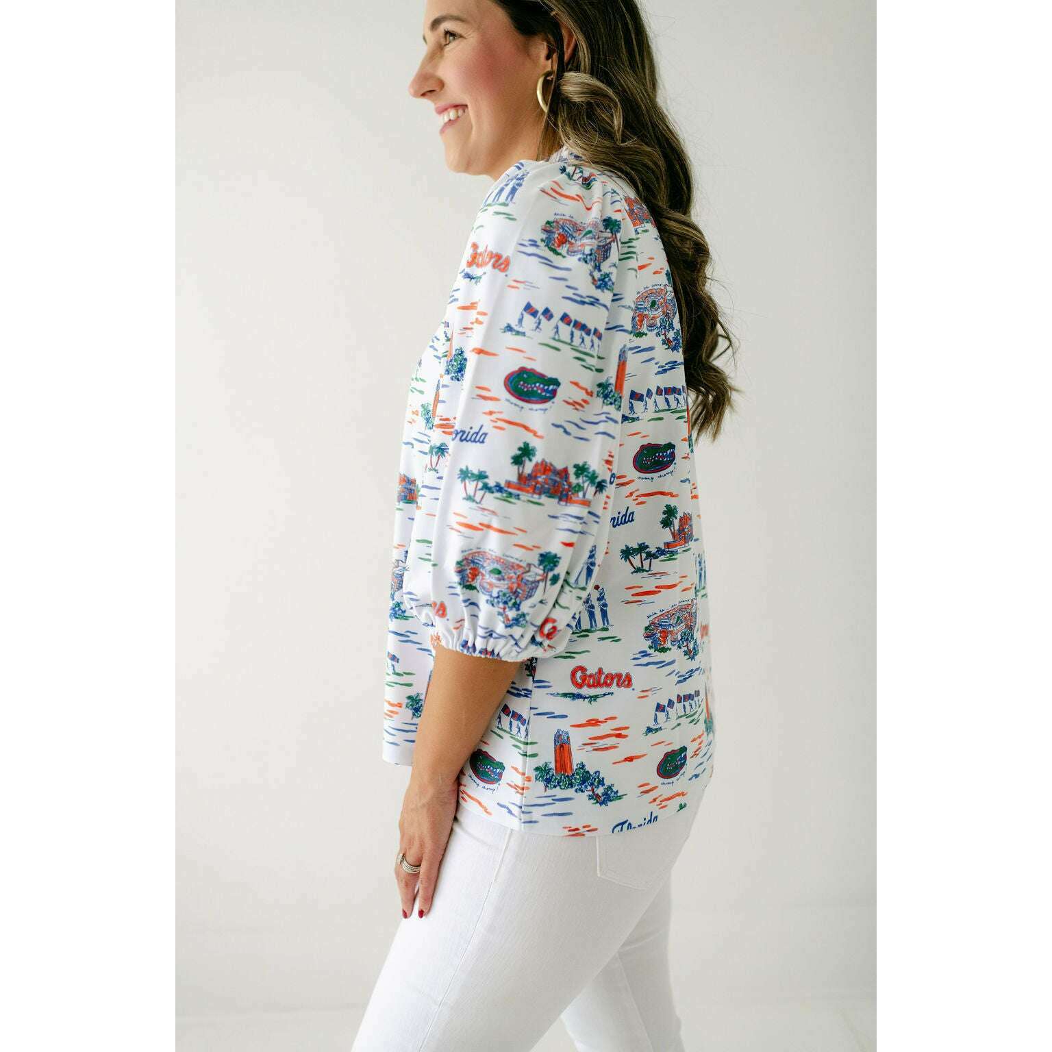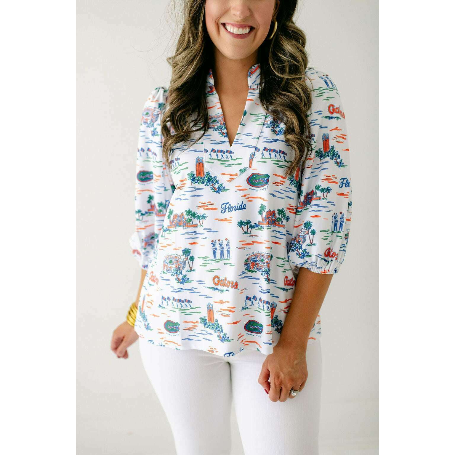 The Smith & Quinn Eliza Top in Florida Toile is perfect for game day style. Its charming print and flattering fit make it an effortless way to show off your team spirit while staying comfortable and chic throughout the event. Elevate your fan look with this irresistibly cute top.