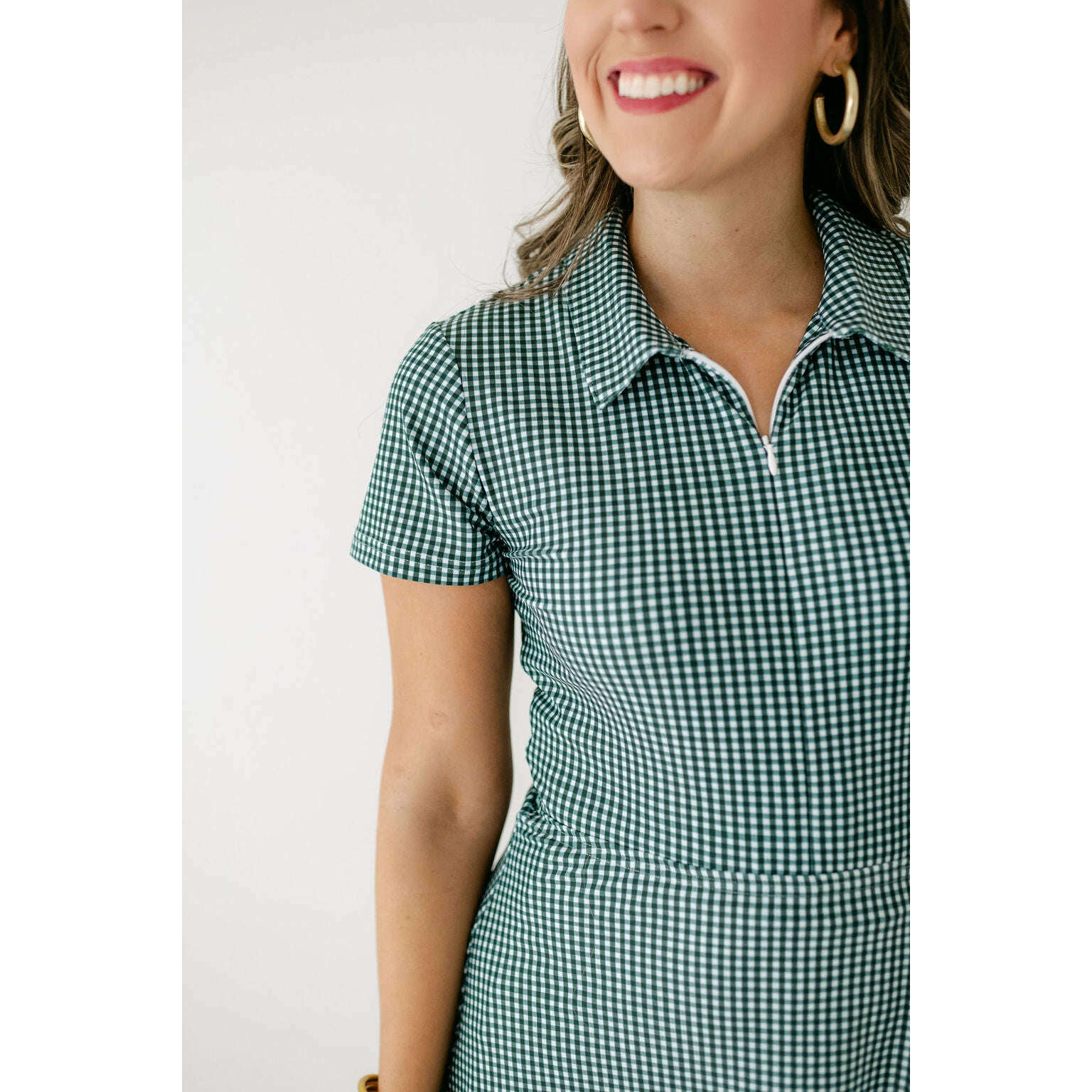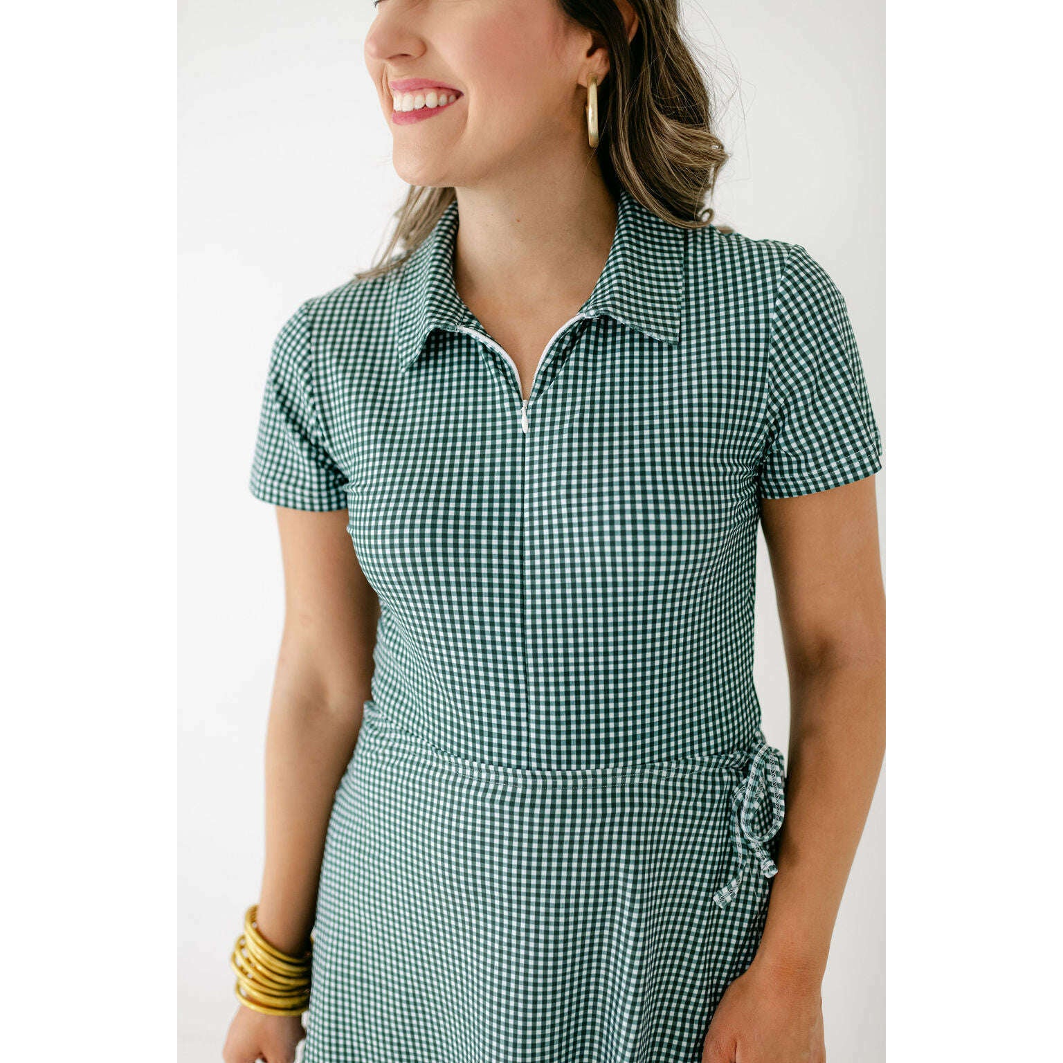 The Smith & Quinn Ivy Dress in Rosemary Gingham is the perfect blend of fun style and activewear performance. Its charming gingham print and vibrant rosemary color make it irresistibly cute for the season, while its design ensures comfort and flexibility during activities. Ideal for golf, pickleball, or any light exercise, this dress keeps you looking fresh and feeling confident on and off the course or court. Elevate your sporty wardrobe with a dress that’s as playful as it is practical.